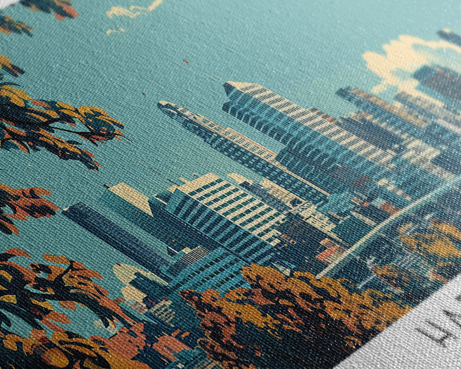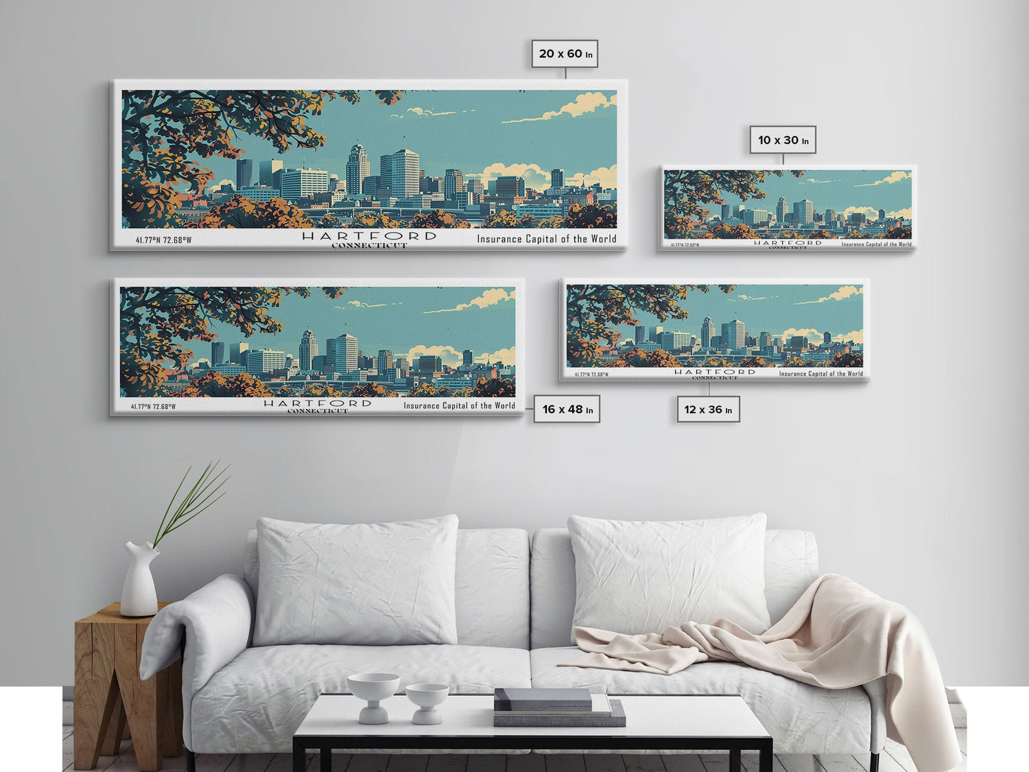 Hartford Connecticut Panoramic Painting, Mid Century Modern Framed Canvas Print, Retro Pop Art Travel Poster, Home Wall Decor