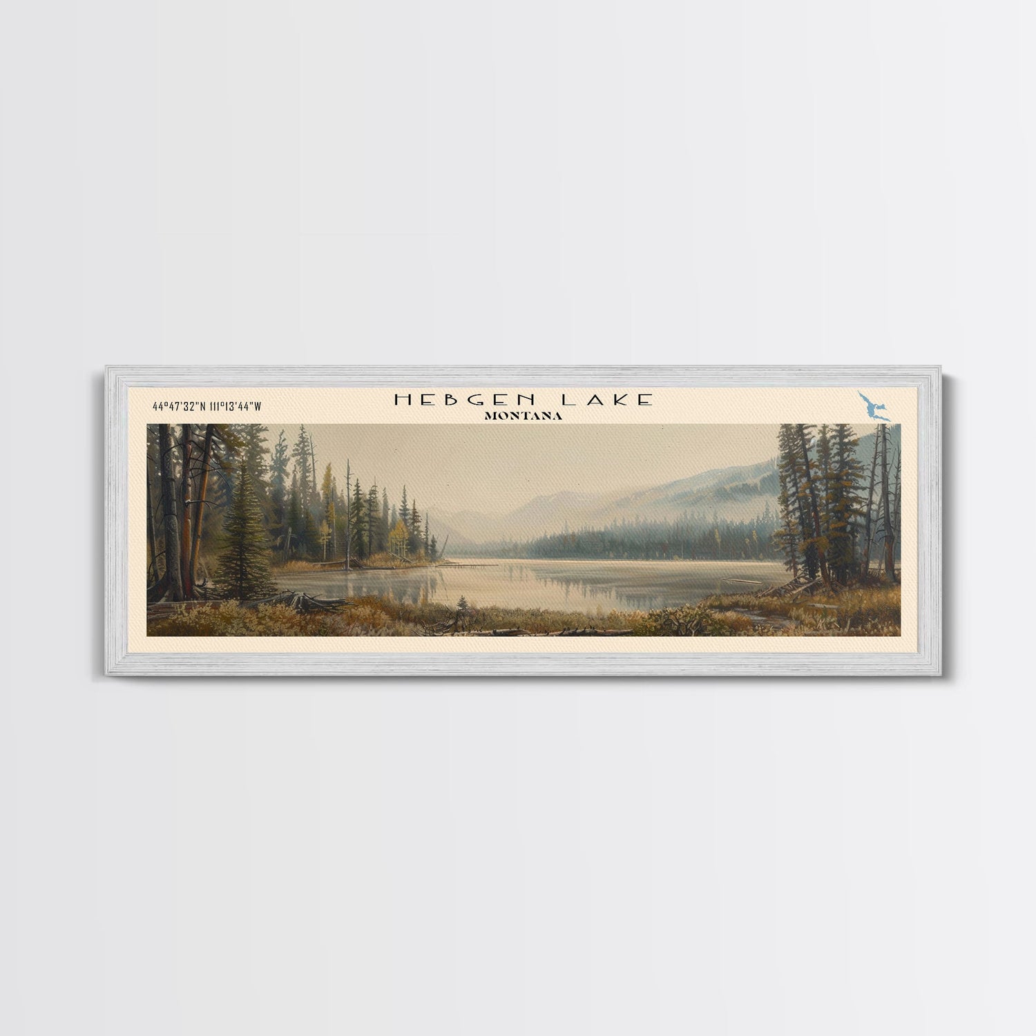 Hebgen Lake Montana Framed Canvas Print, Lake House Art, Panoramic Wall Art, Travel Poster, Beautiful Lake Painting, Home Decor