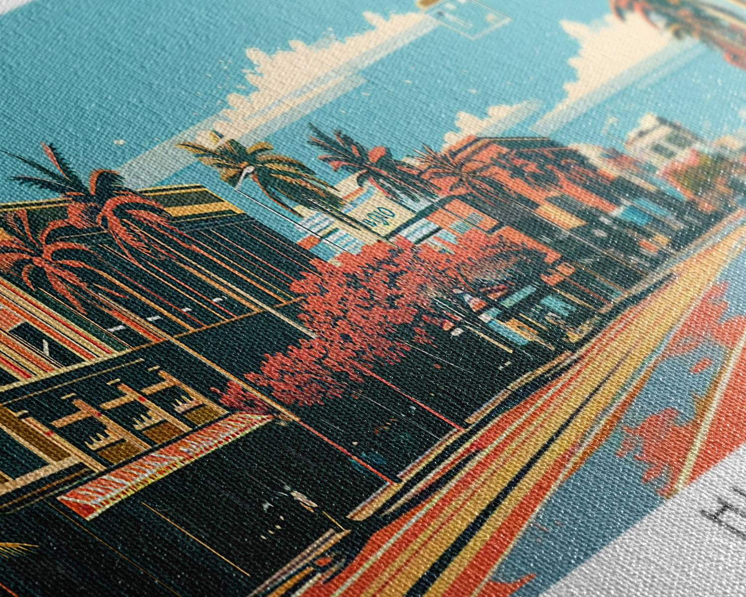 Hialeah Florida Panoramic Wall Art, Framed Canvas Print, Mid Century Modern Style, Retro Pop Art Travel Poster, Living Room Art, Cityscape Decor, Office Wall Art