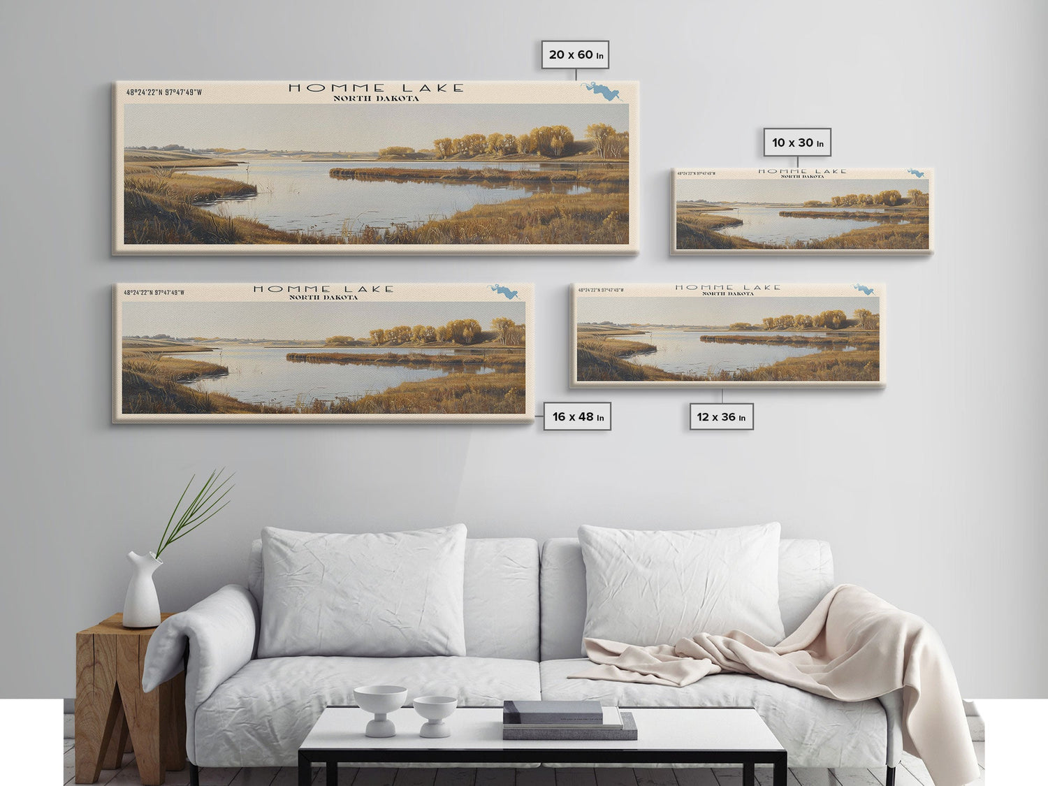 Homme Lake North Dakota Framed Canvas Print, Lake House Decor, Panoramic Wall Art, Travel Poster, Beautiful Lake Painting, Nature Art