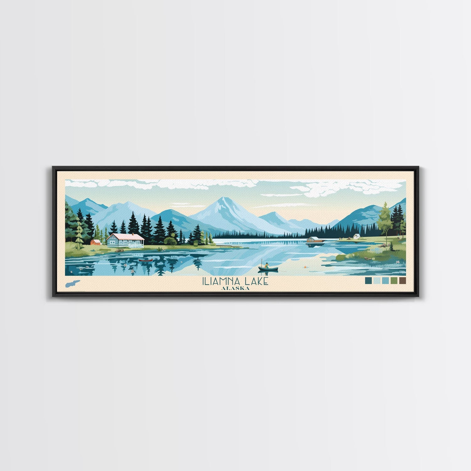 Iliamna Lake Alaska Framed Canvas Print, Panoramic Art, Midcentury Modern, Pop Art, Living Room Decor, Travel Poster, Artistic Decor