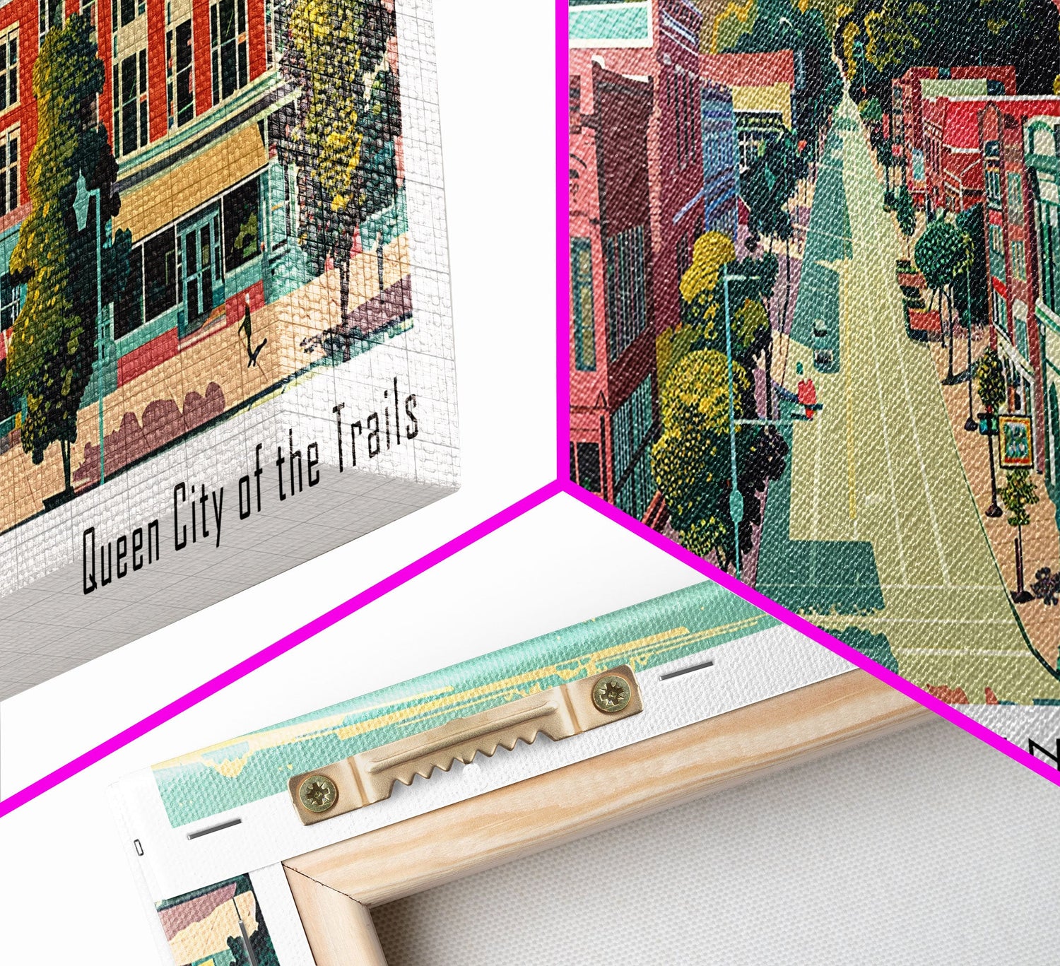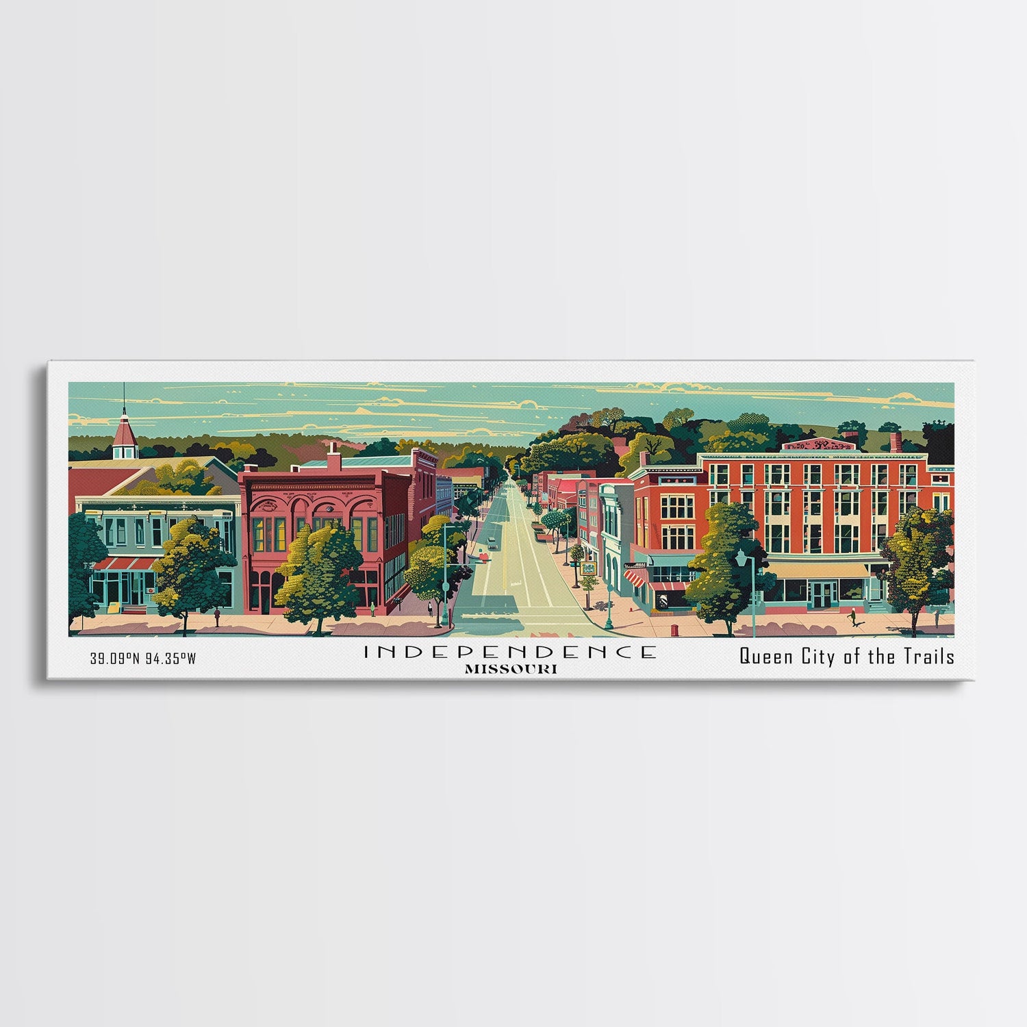 Independence Missouri Panoramic Painting, Mid Century Modern Framed Canvas Print, Retro Pop Art Travel Poster, Home Decor