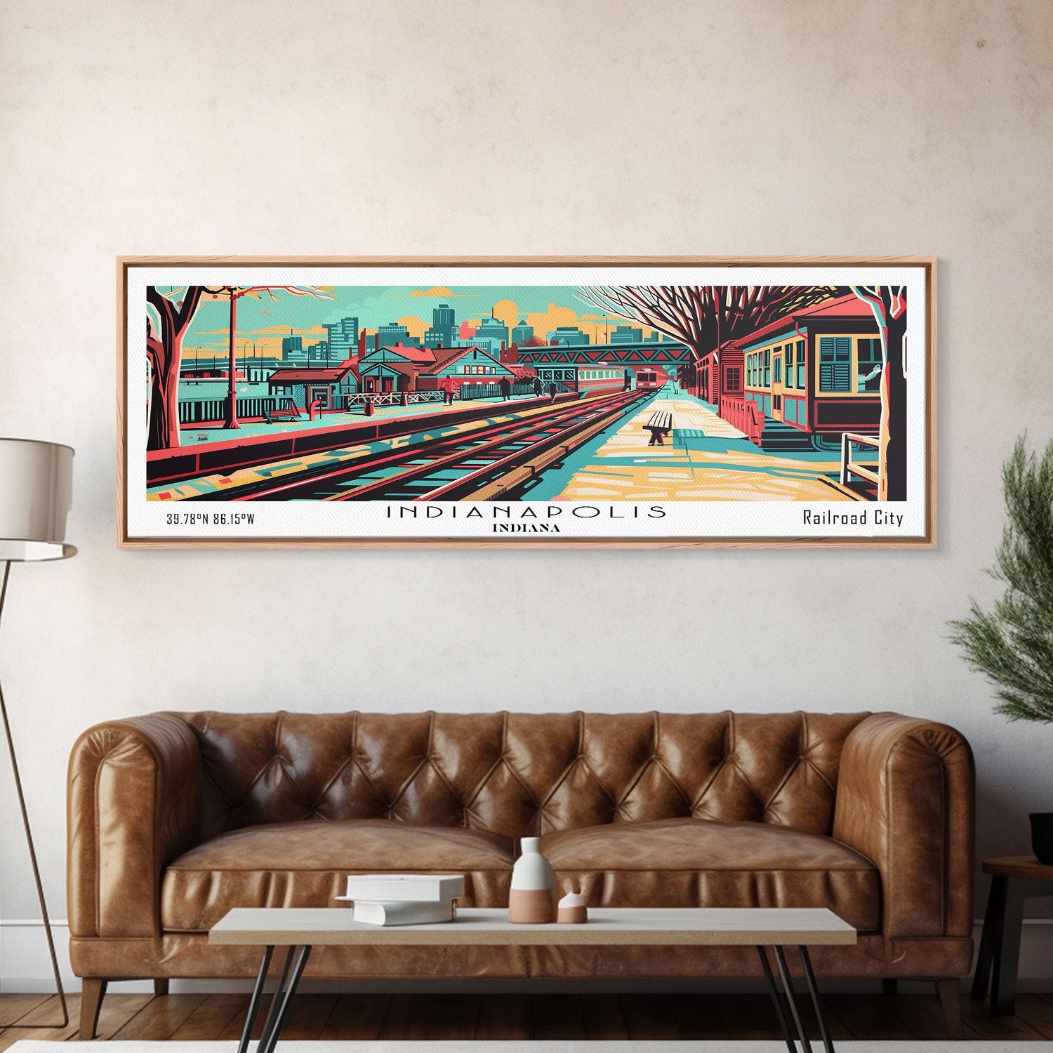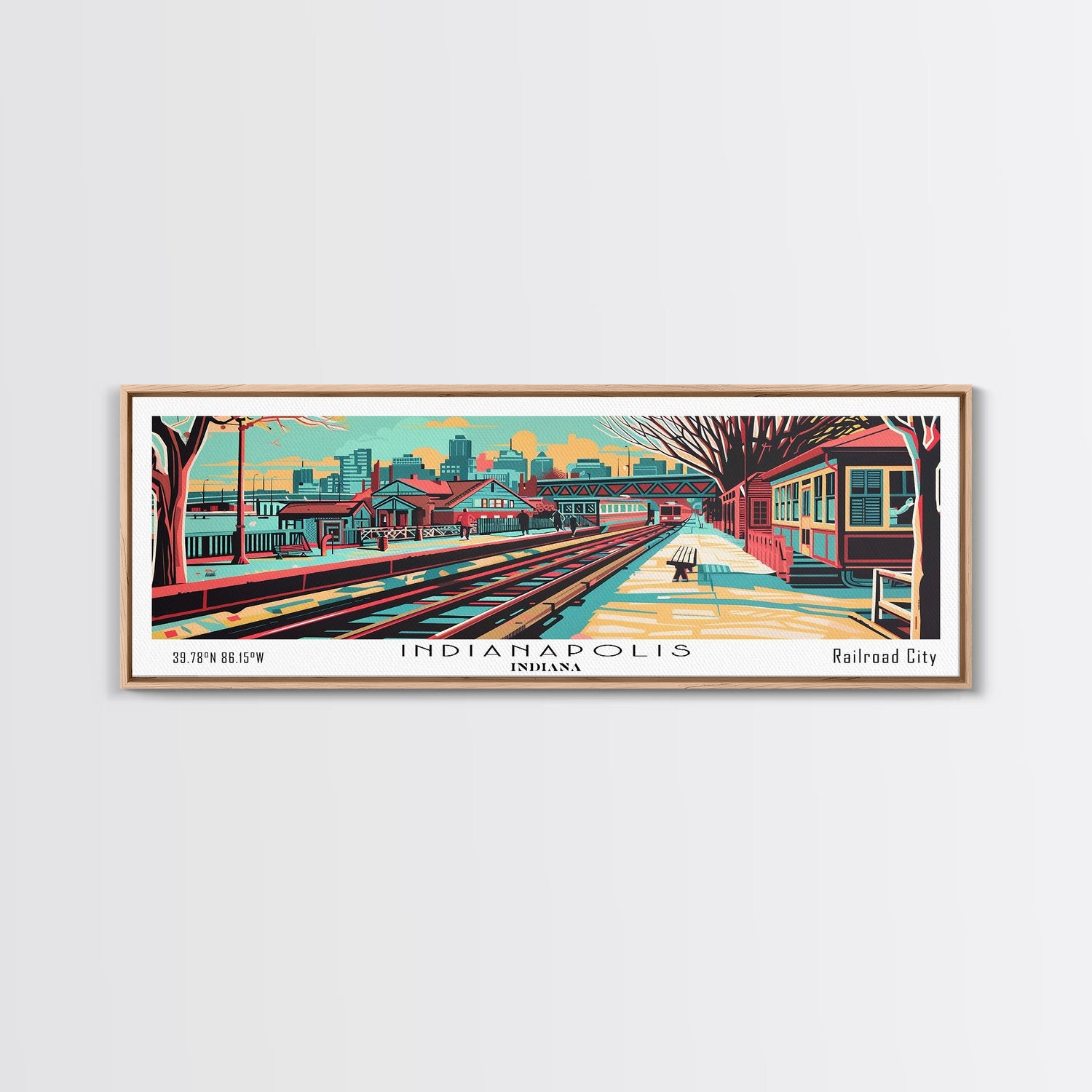 Indianapolis Indiana Panoramic Travel Poster Framed Canvas Print, Mid Century Modern Art, Pop Art Style, Wall Decor, Office Art, Living Room Art