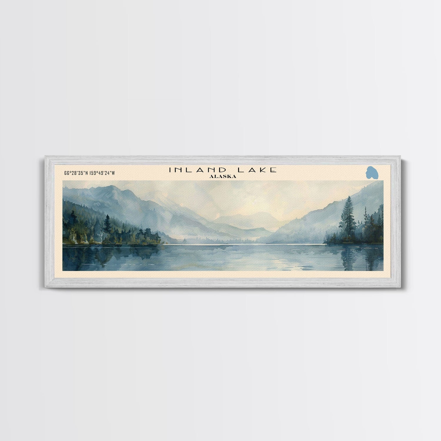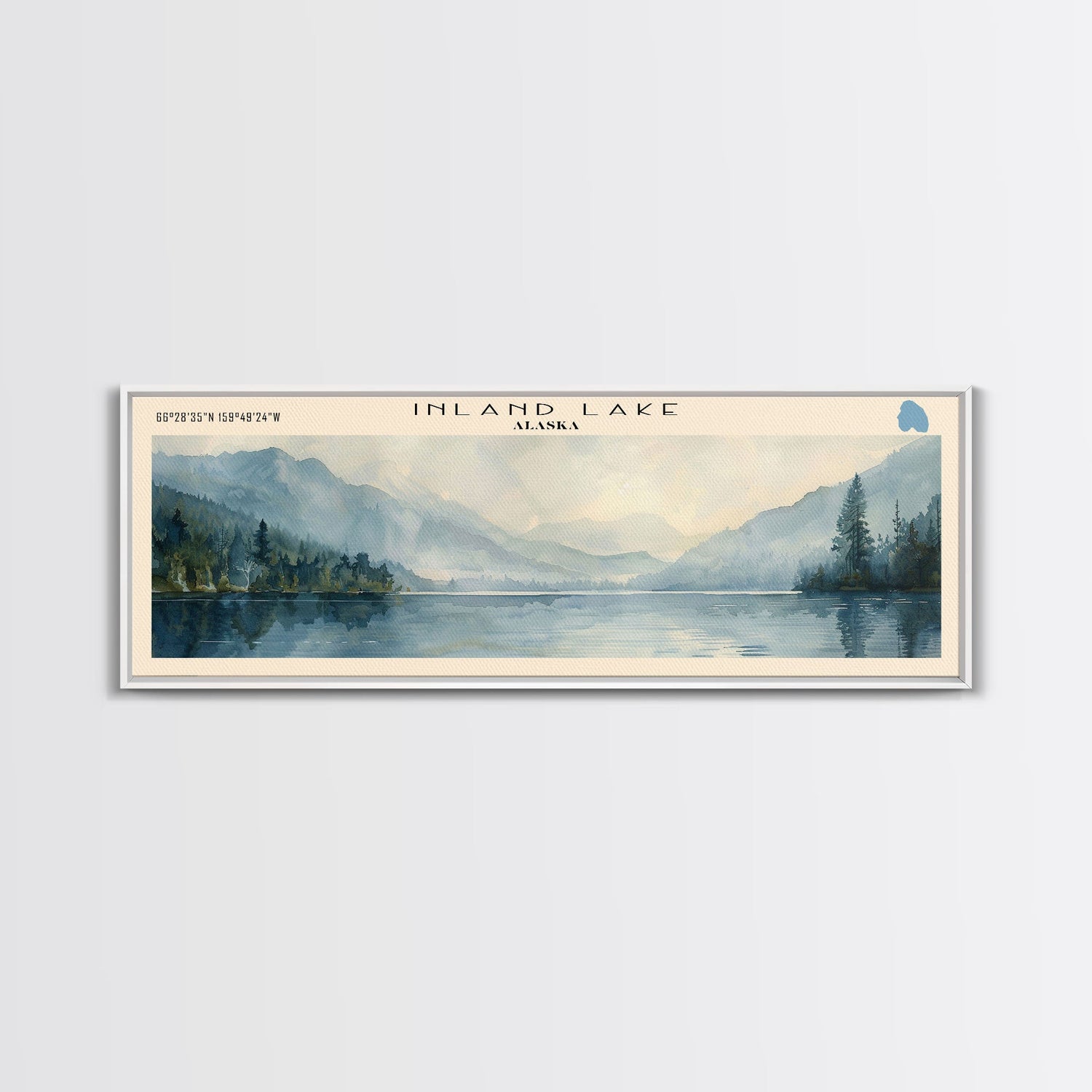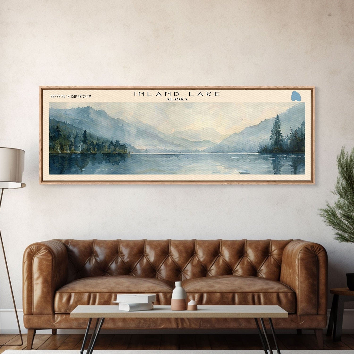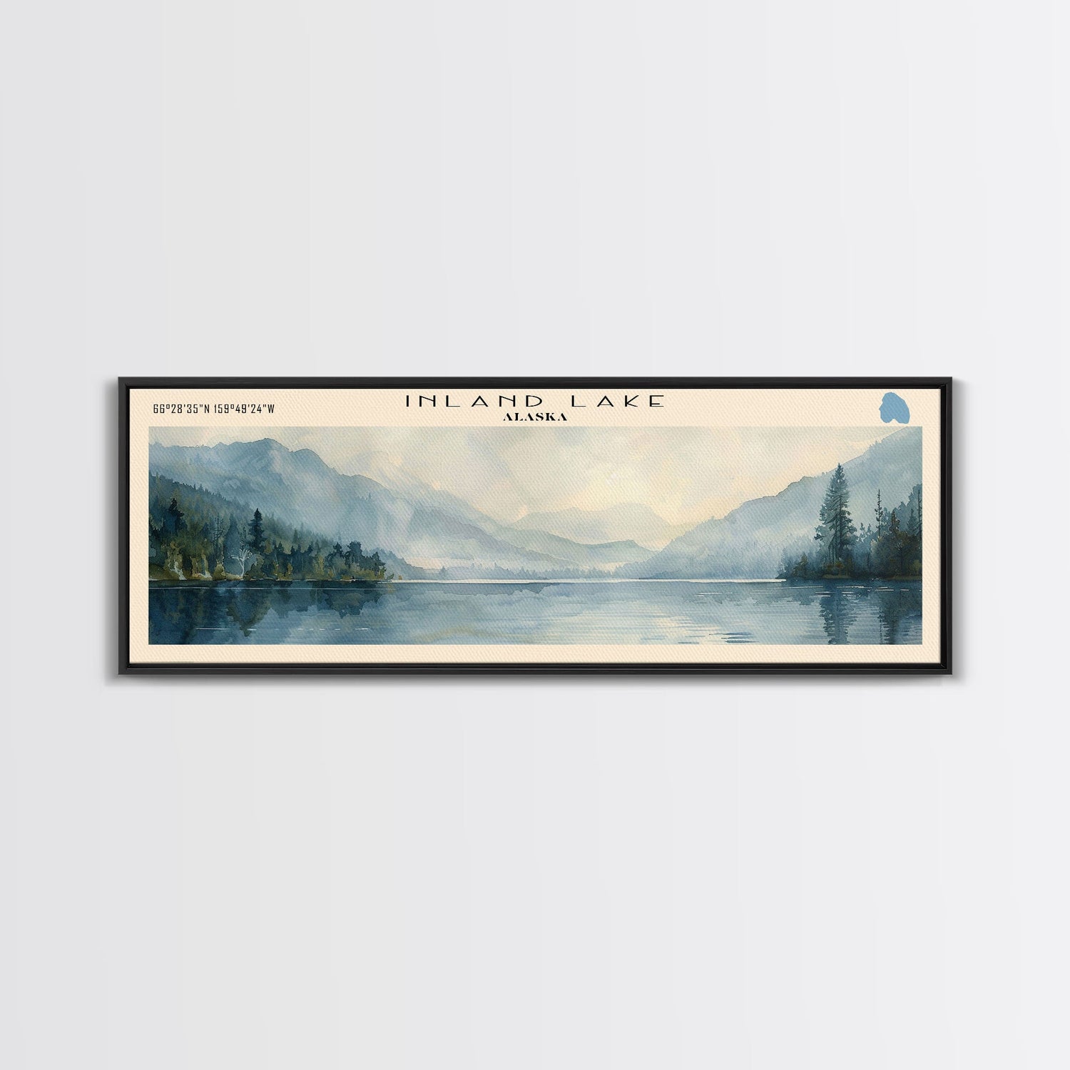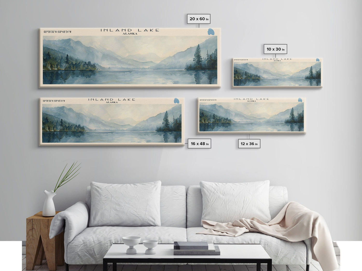 Inland Lake Framed Canvas Print, Lake House Art, Panoramic Wall Art, Travel Poster, Scenic Lake Painting, Nature Art
