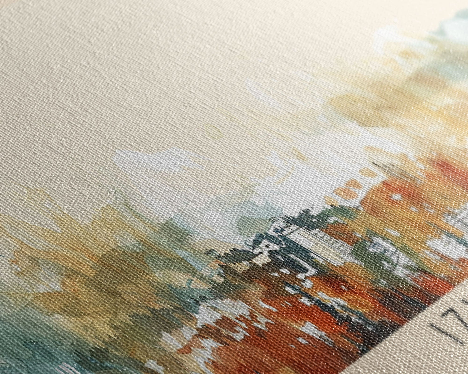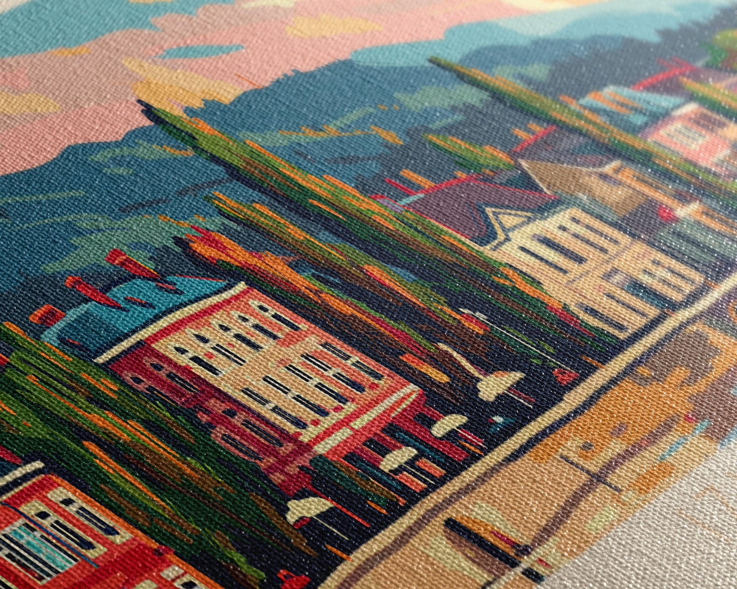 Most of our canvases are made in the USA, with the exception of canvases ordered with the light oak unstained frames, and any large canvases (24x48, 30x60, 16x48 and 20x60) ordered WITH a frame. These are temporarily made in and shipped from Europe, while we try to find a more consistent supplier in the USA.
