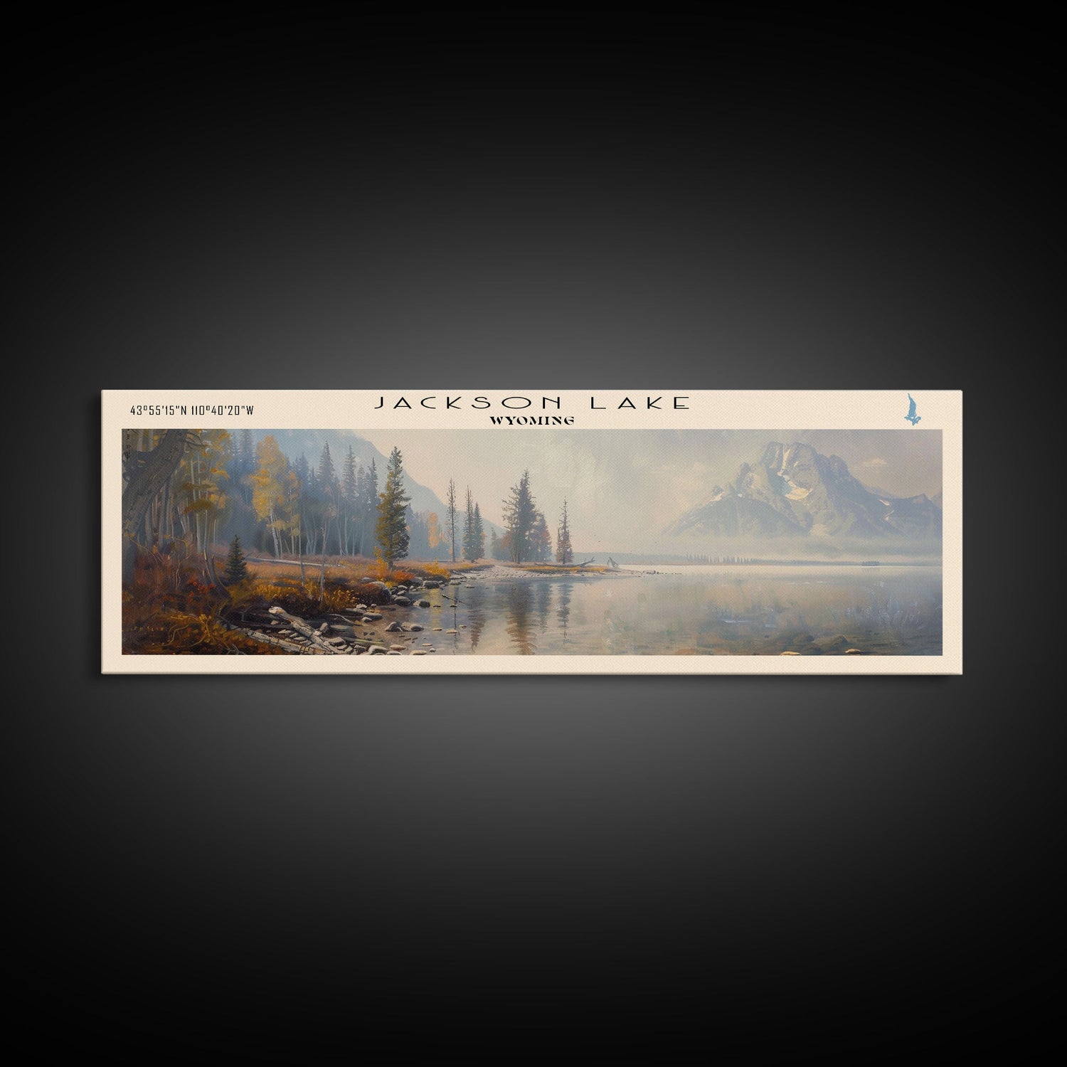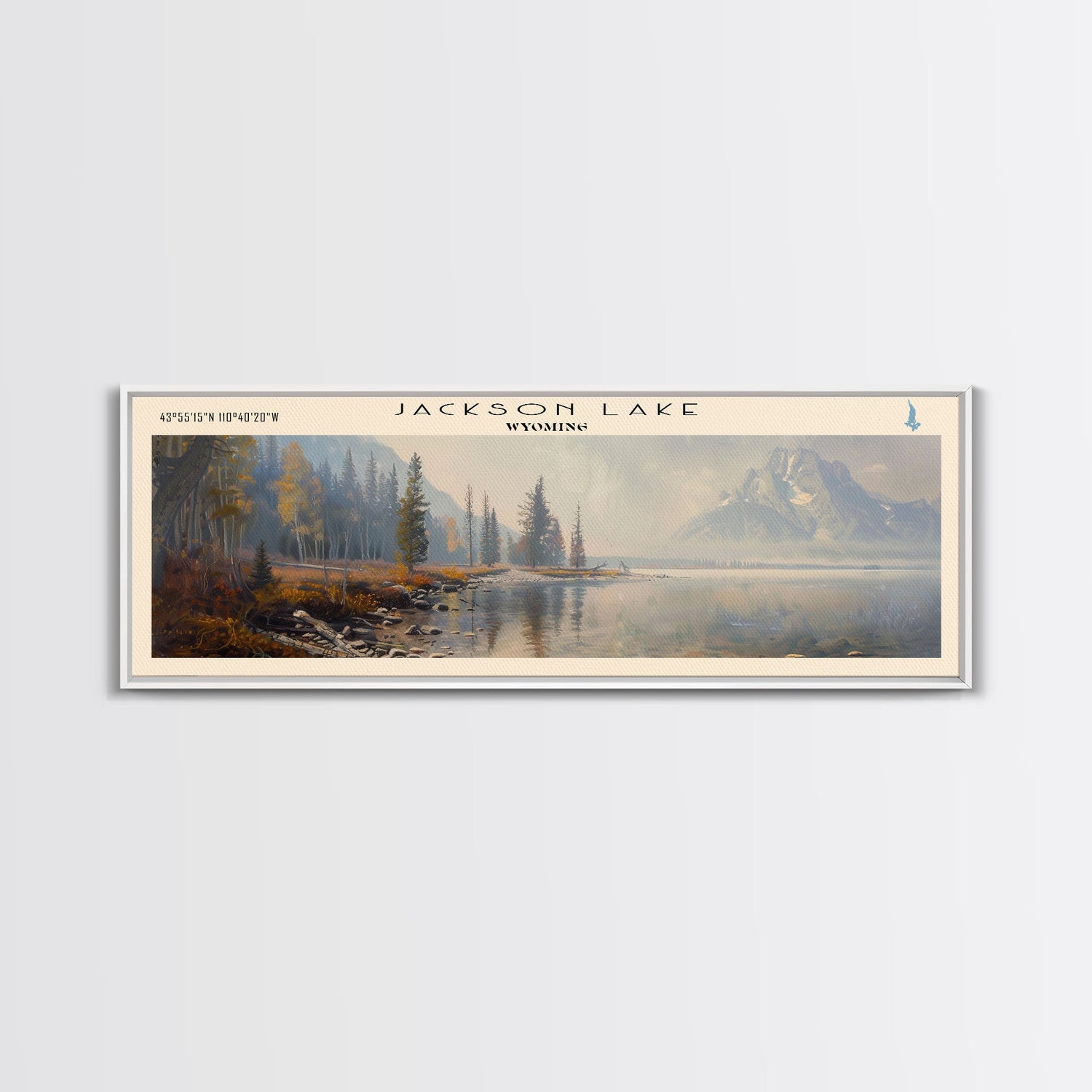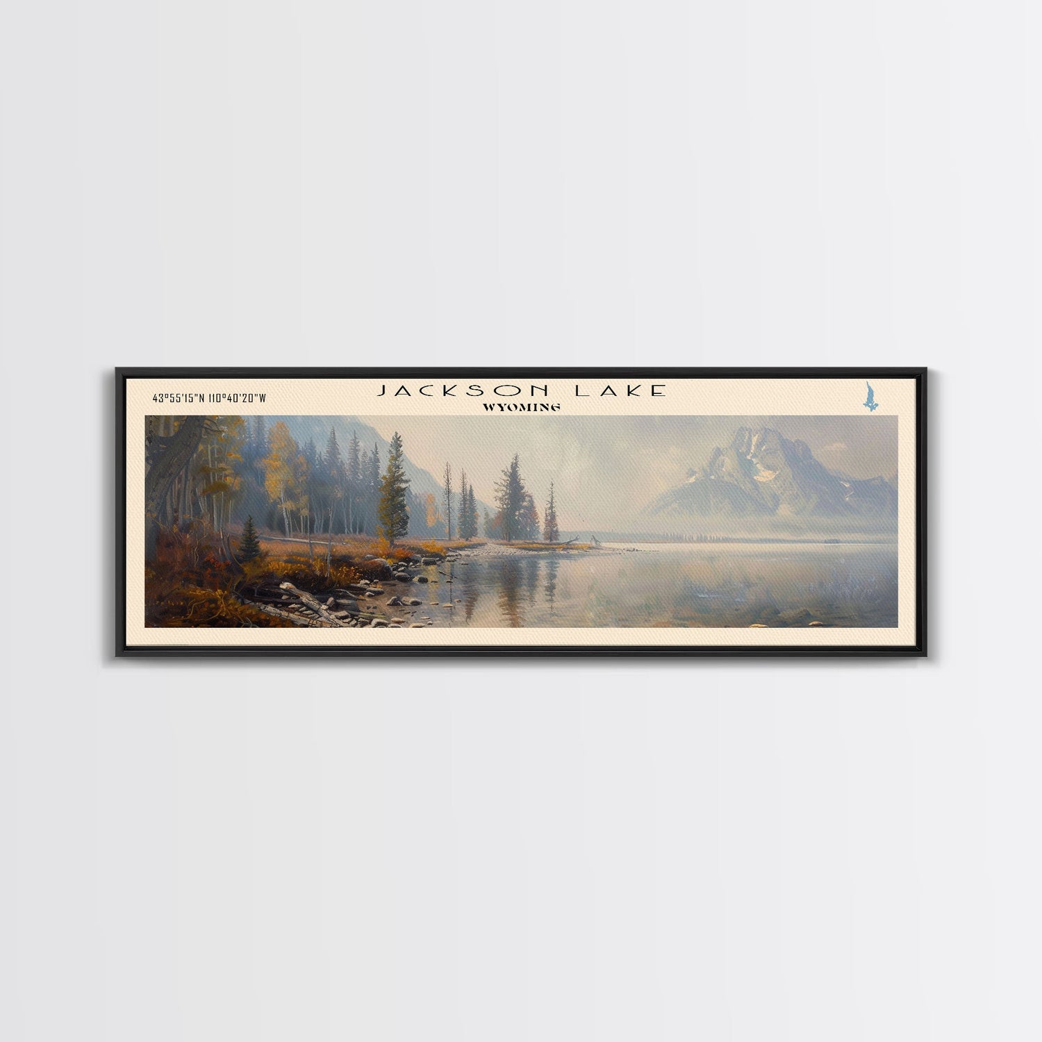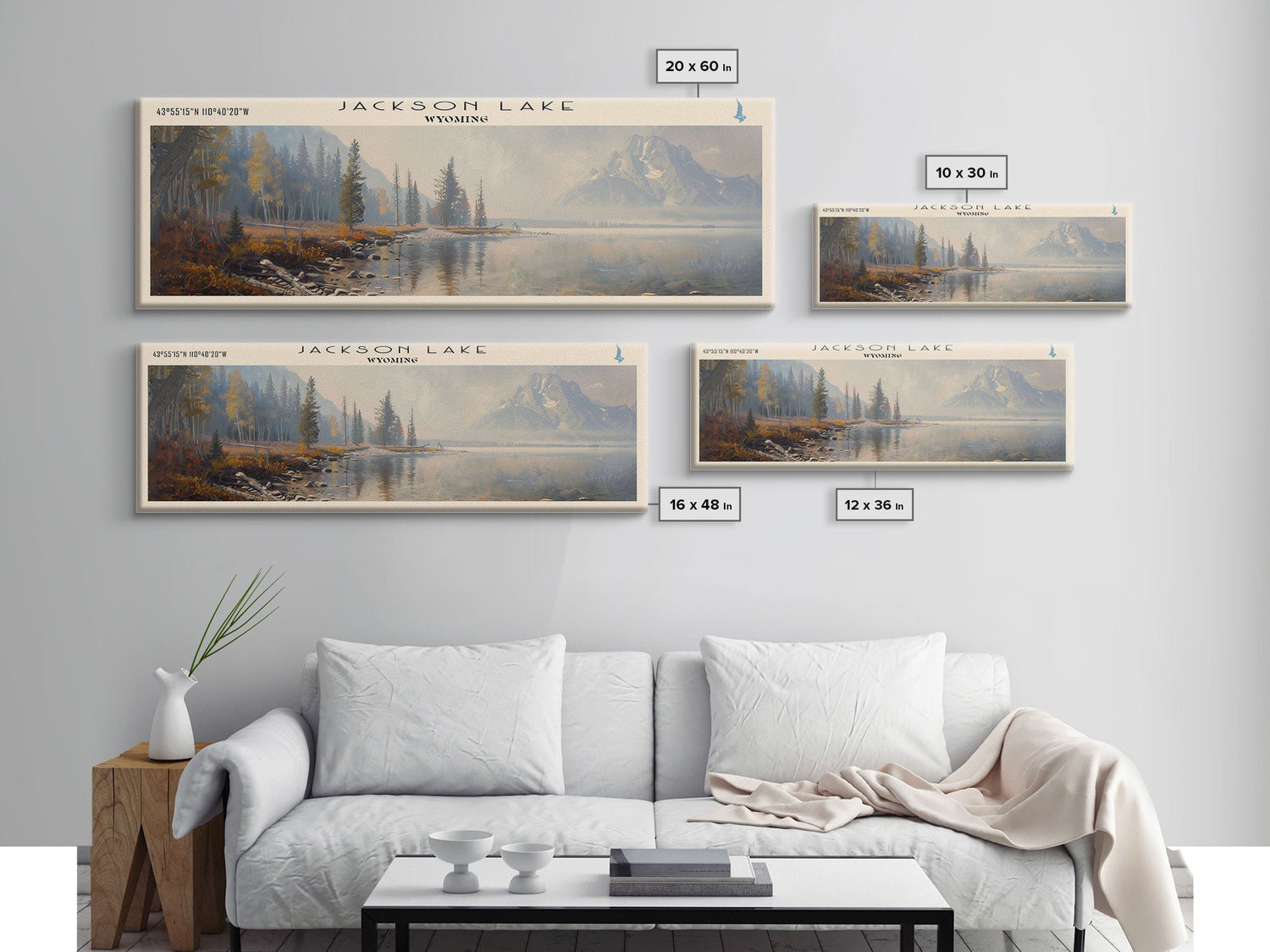Jackson Lake Framed Canvas Print, Panoramic Lake House Decor, Wall Art, Travel Poster, Captivating Lake Painting, Nature Art