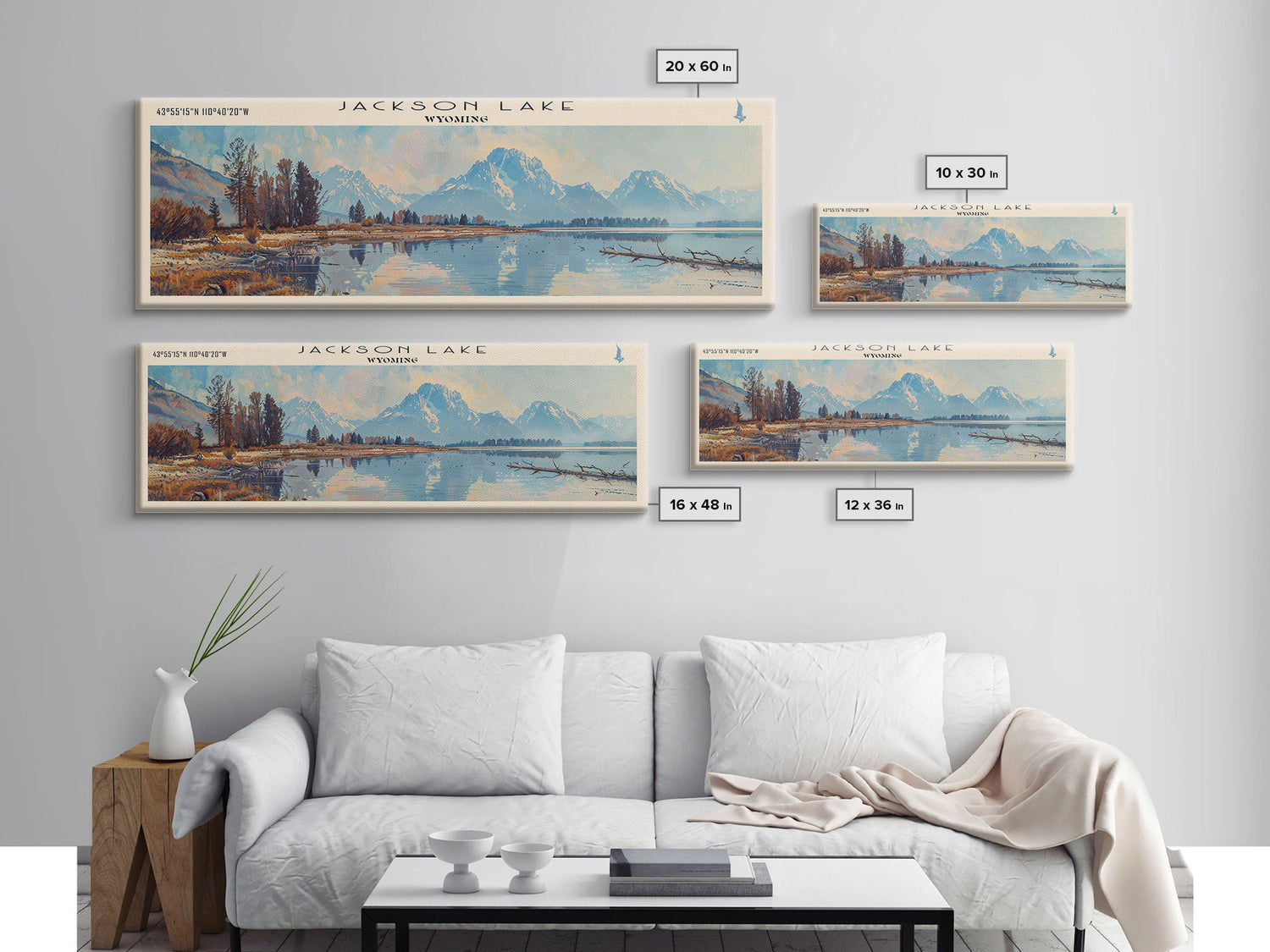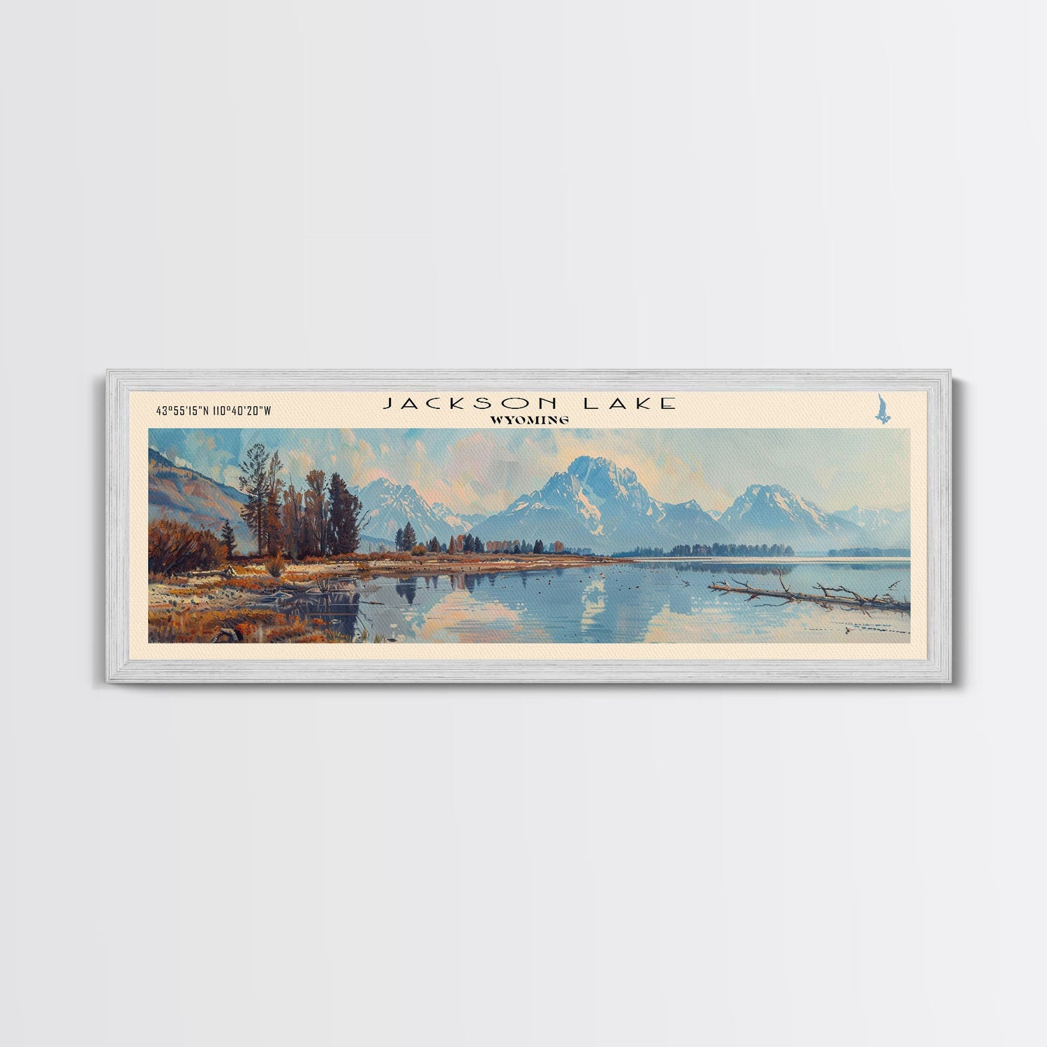 Jackson Lake Wyoming Framed Canvas Print, Lake House Art, Panoramic Wall Art, Travel Poster, Stunning Lake Painting, Nature Art