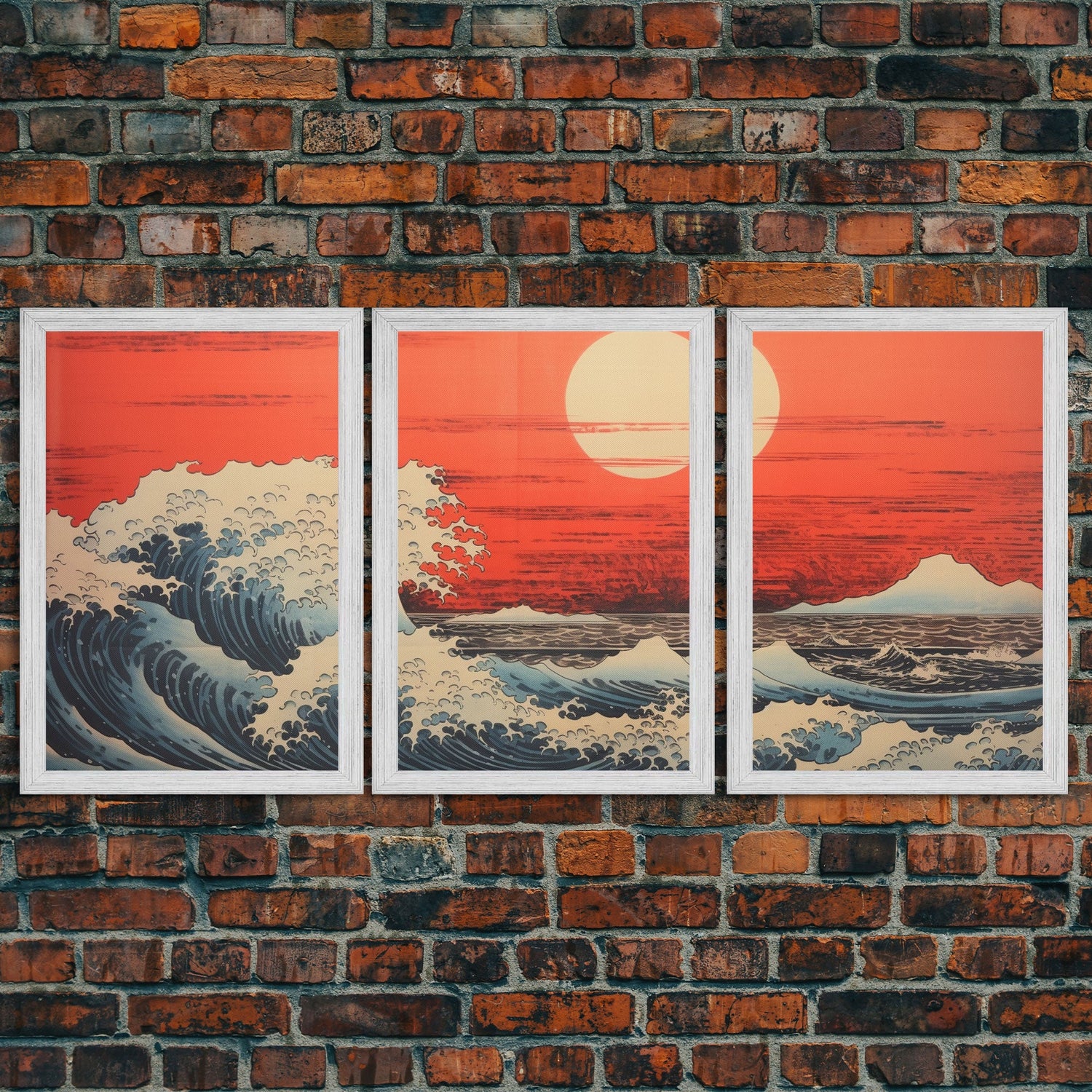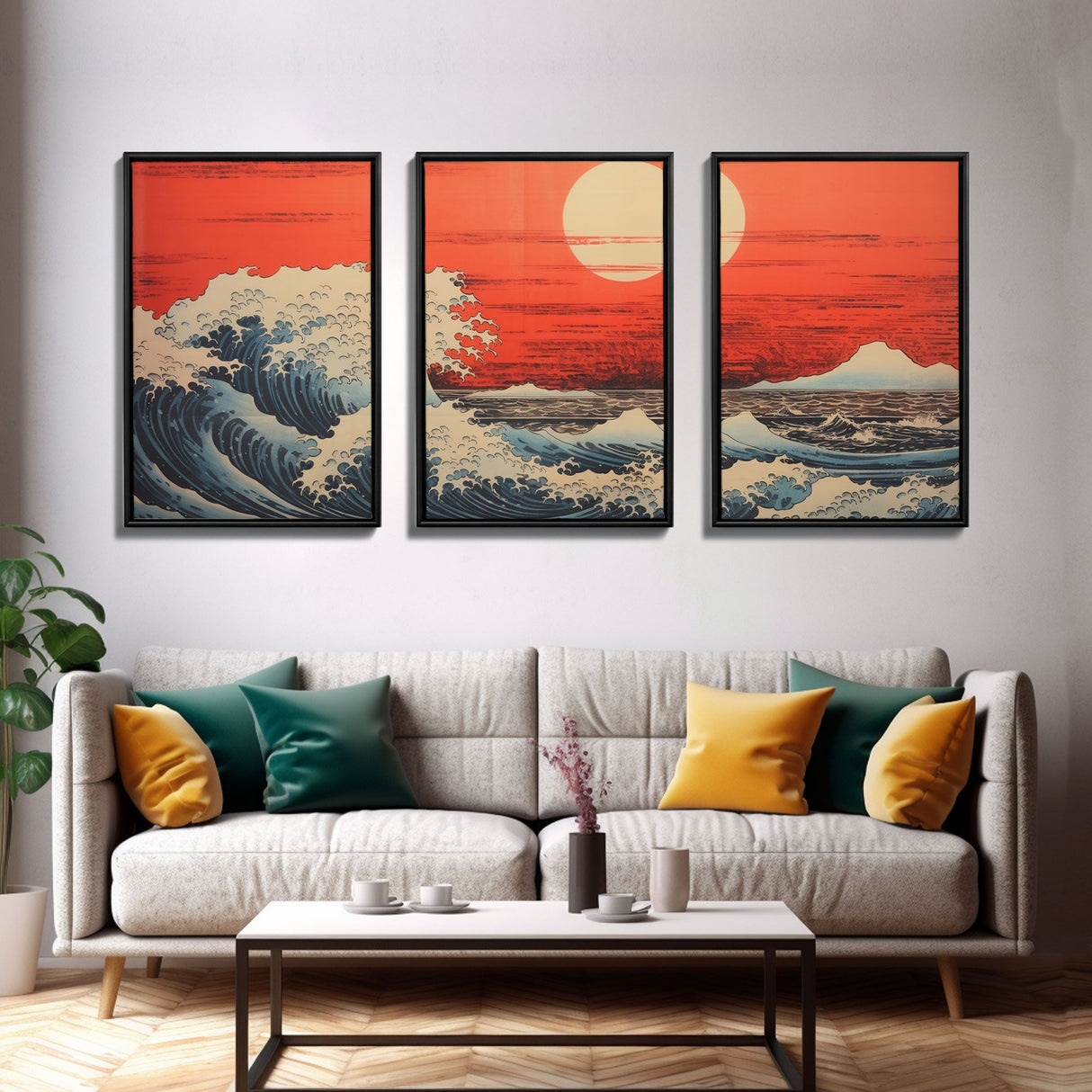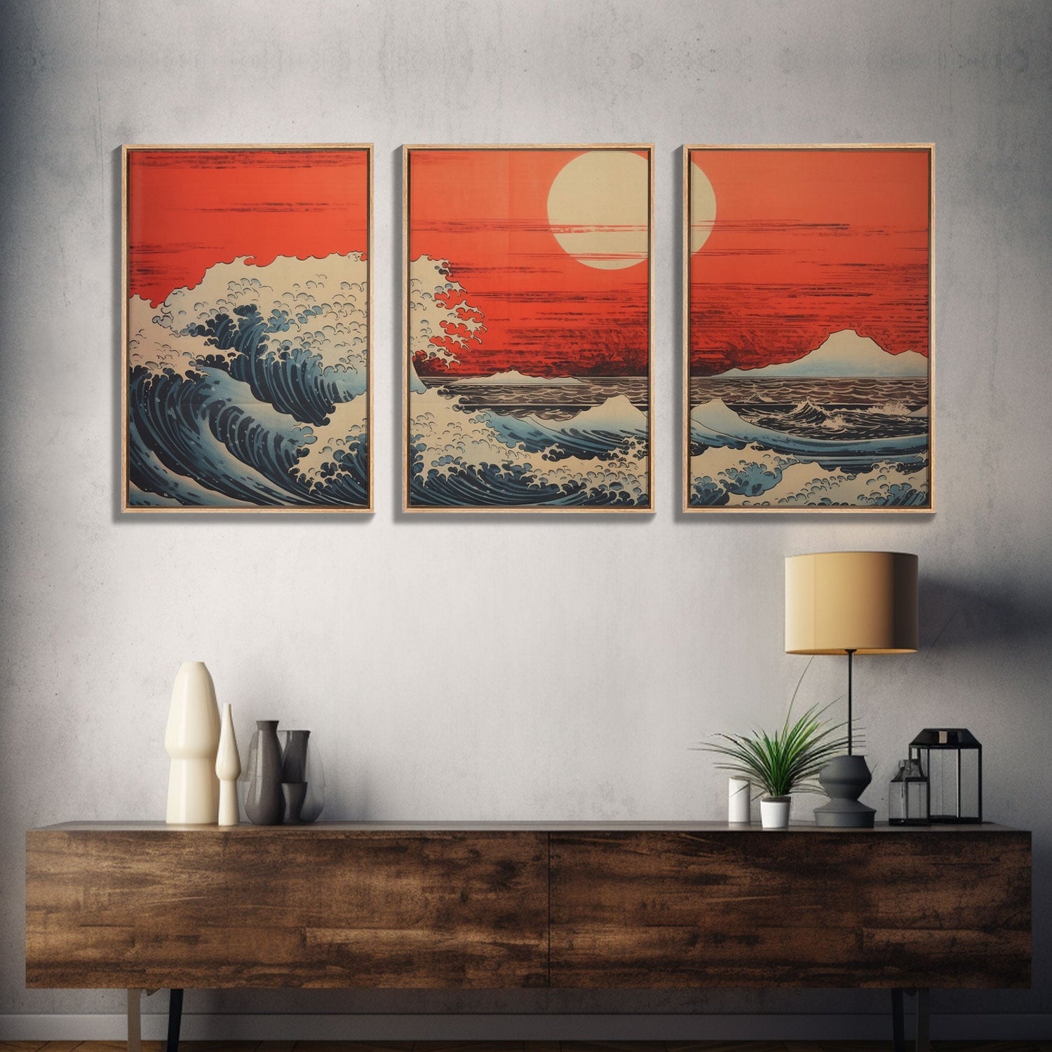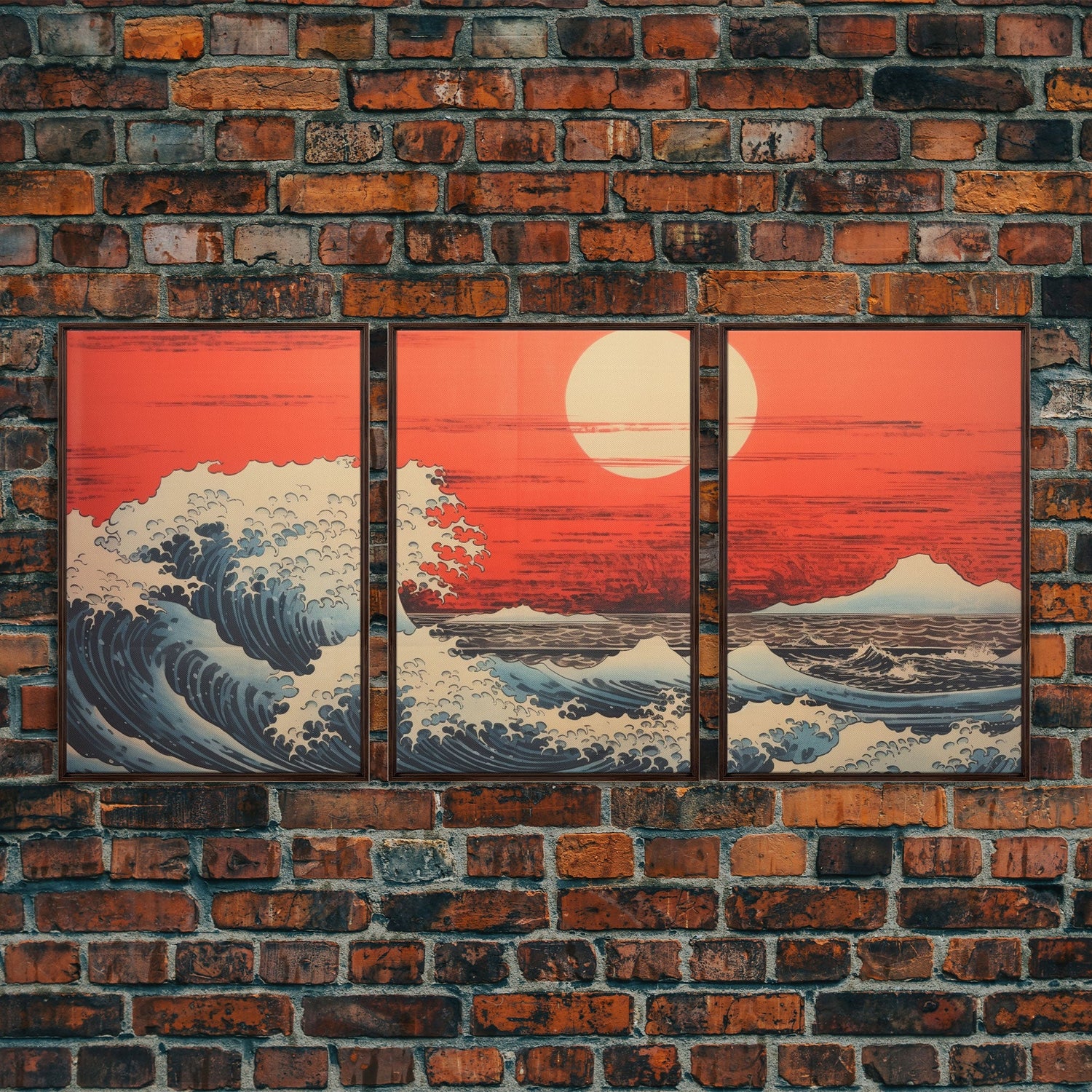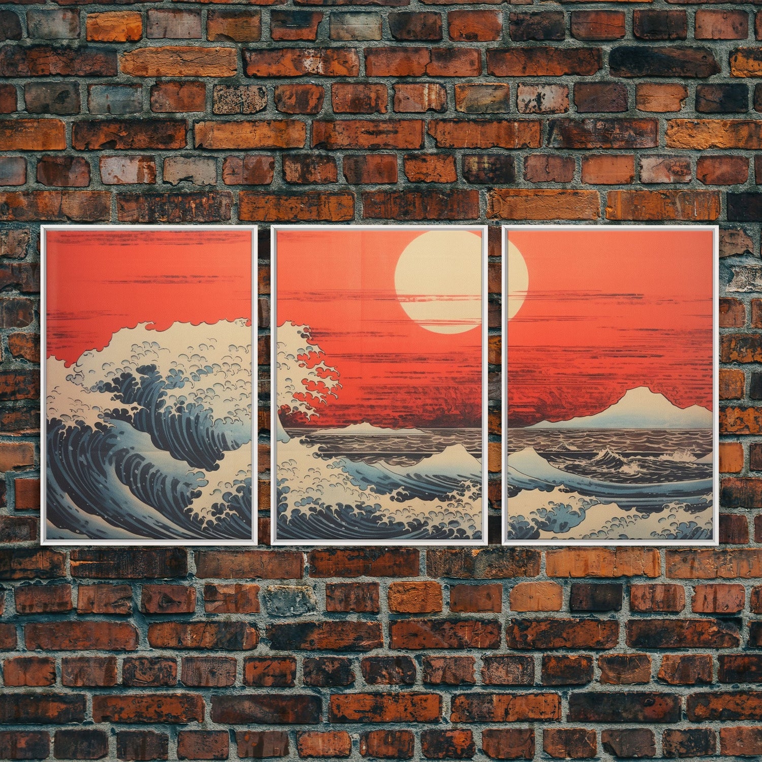 Japanese Wall Art, Ocean Waves, Asian Art, Sunset Art, Canvas Print, Wall Art, 3 Piece Wall Art, Above Bed Art, Southern Wall Art, RV Decor