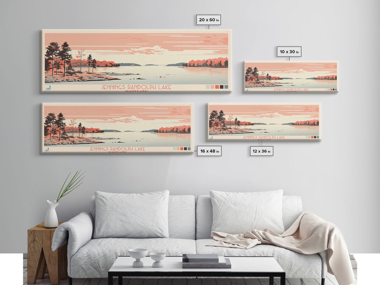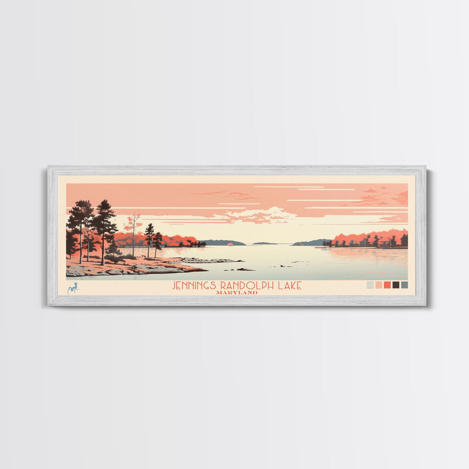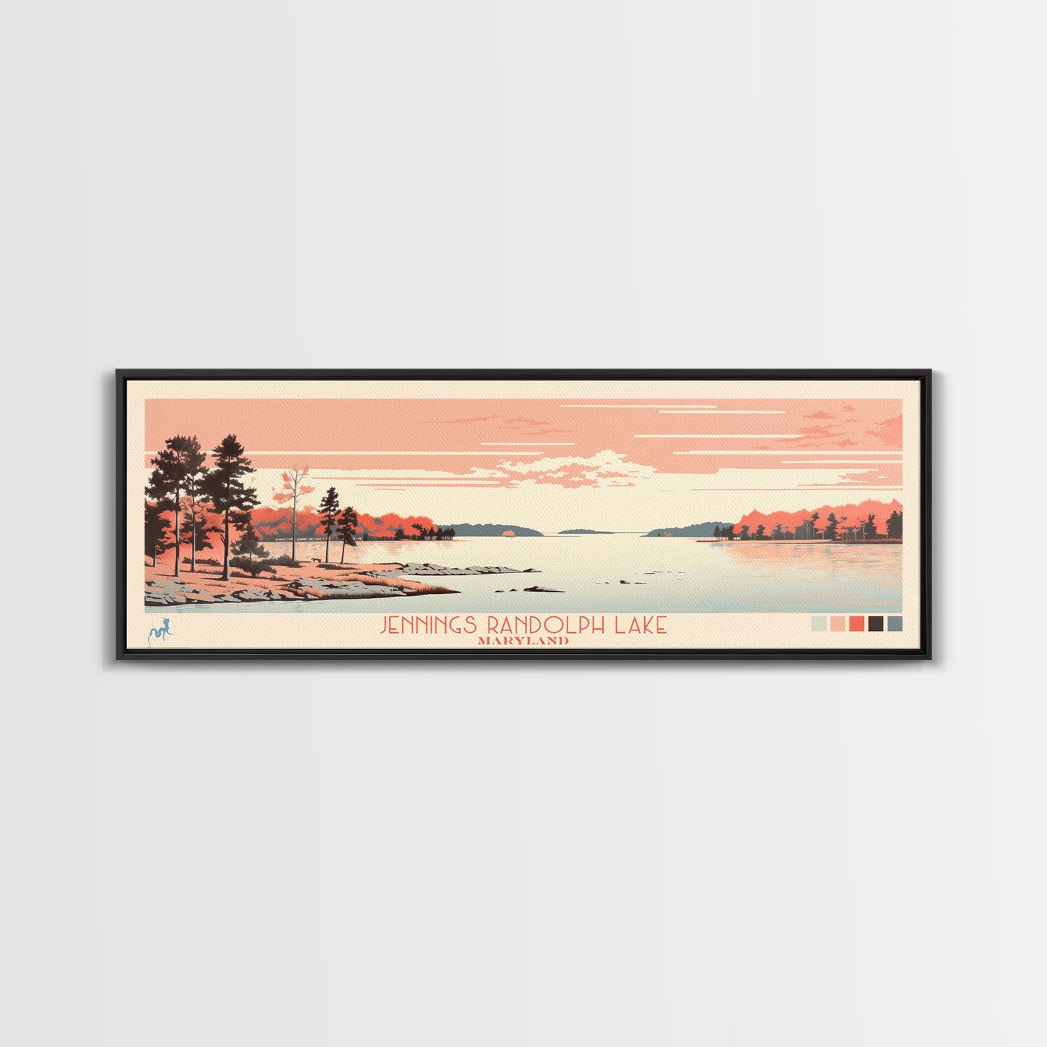 Jennings Randolph Lake Maryland Framed Canvas Print, Panoramic Wall Art, Midcentury Modern, Pop Art, Bedroom Art, Travel Poster, Lake House Art