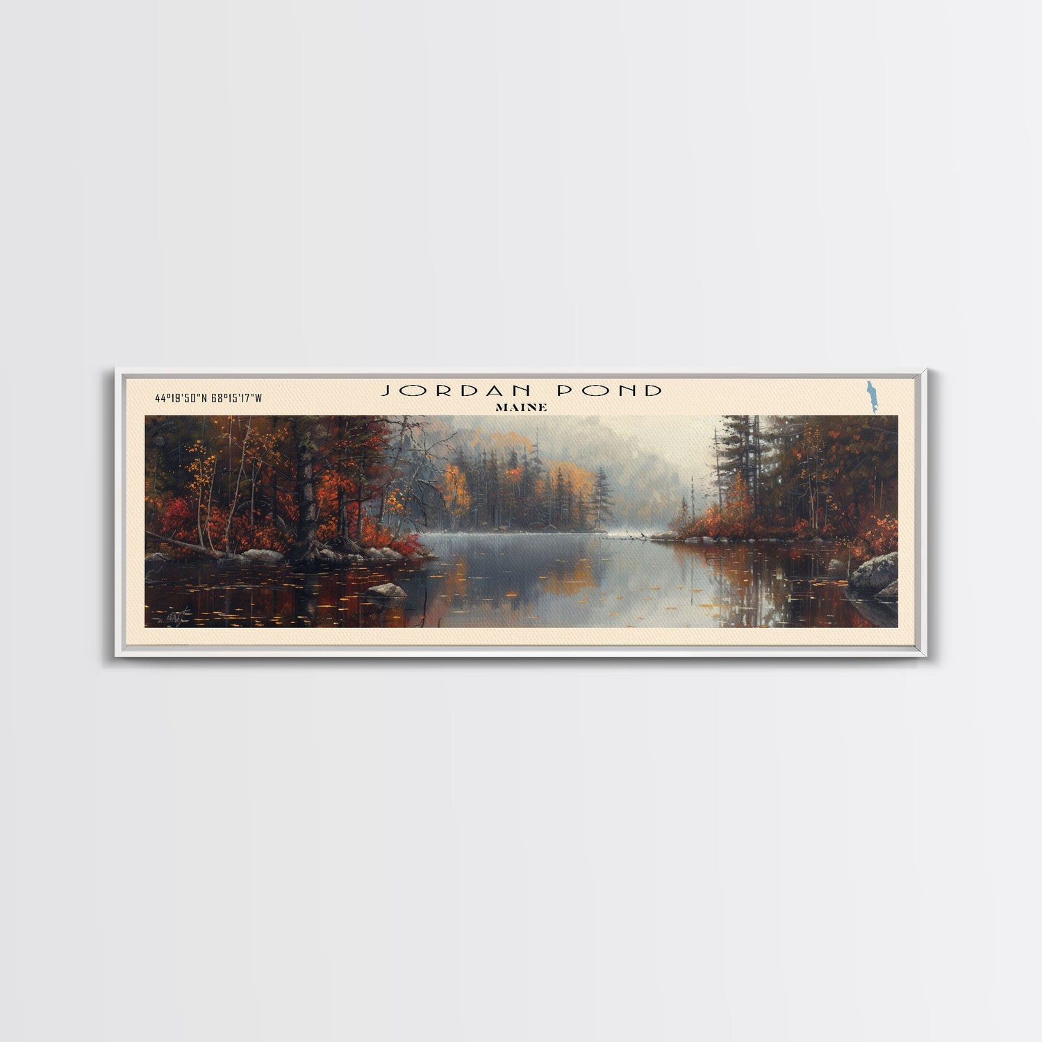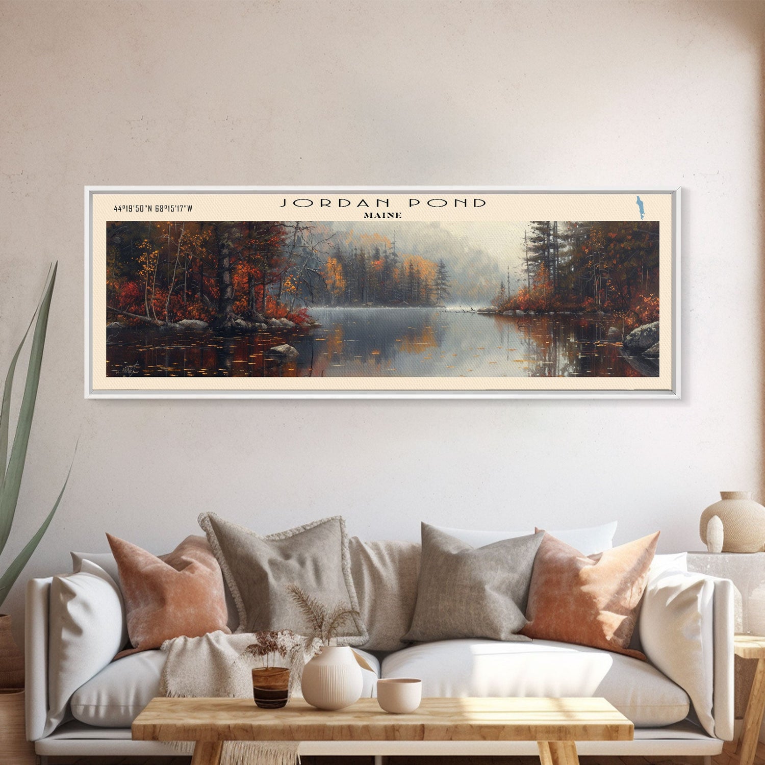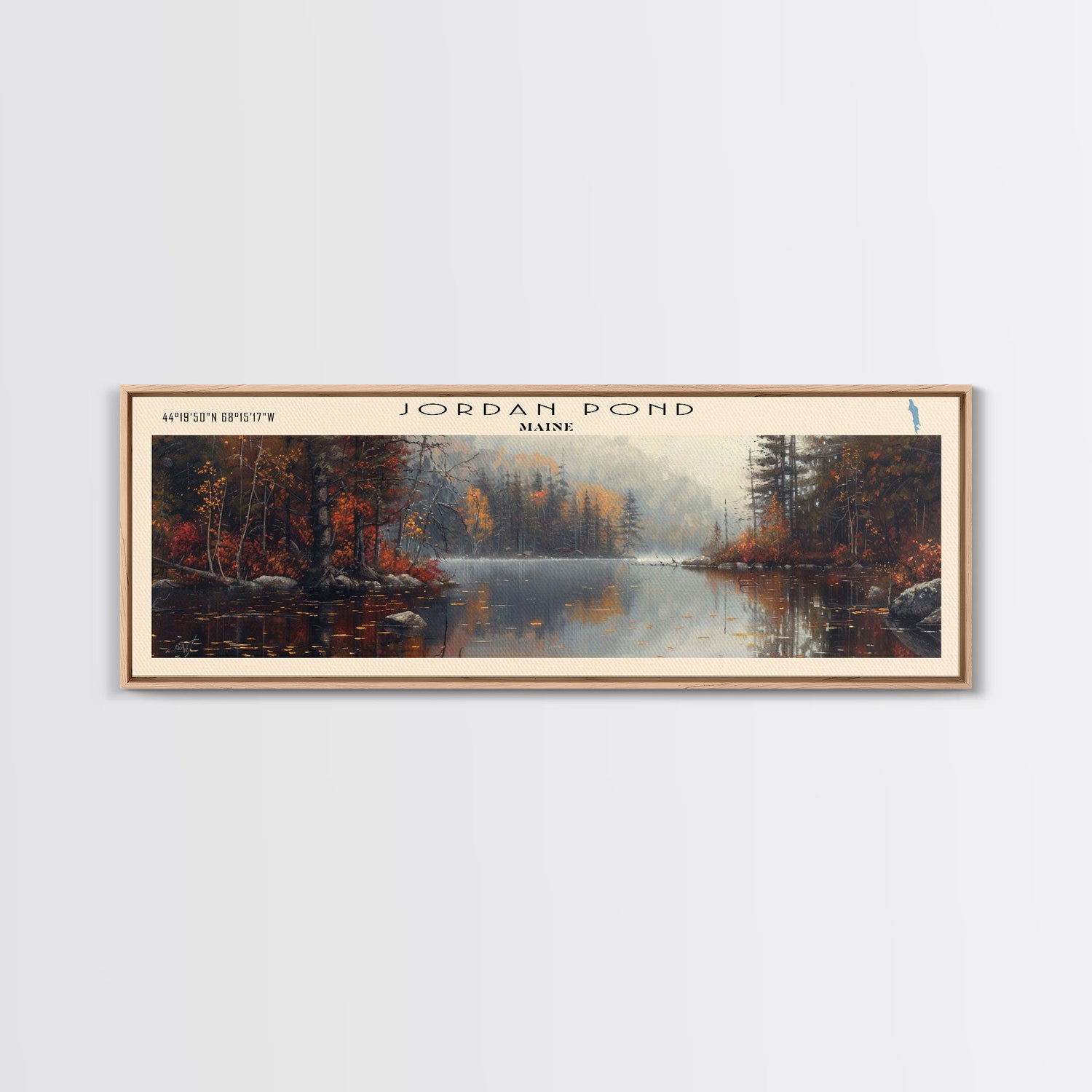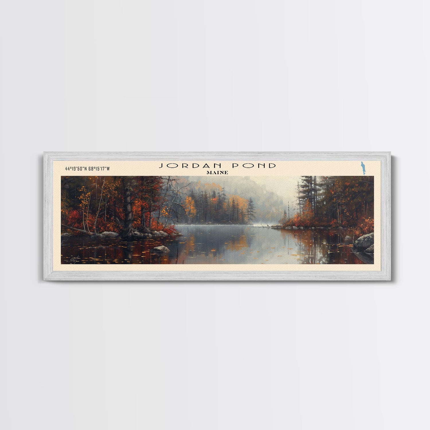 Jordan Pond Maine Framed Canvas Print, Panoramic Lake House Decor, Wall Art, Travel Poster, Scenic Lake Painting, Nature Art