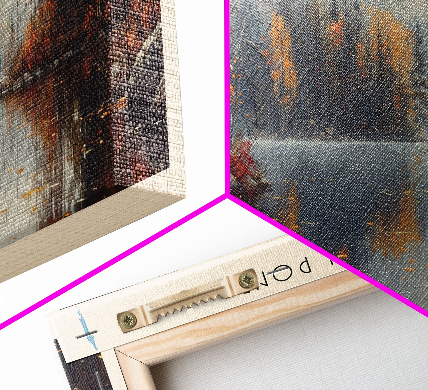 Most of our canvases are made in the USA, with the exception of canvases ordered with the light oak unstained frames, and any large canvases (24x48, 30x60, 16x48 and 20x60) ordered WITH a frame. These are temporarily made in and shipped from Europe, while we try to find a more consistent supplier in the USA.
