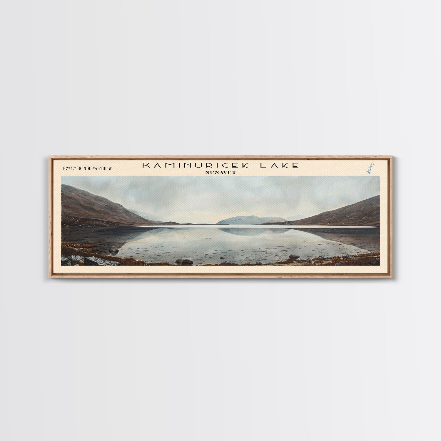 Kaminuricek Lake Qamanirjuaq Lake Framed Canvas Print, Panoramic Lake House Decor, Wall Art, Travel Poster, Serene Lake Painting, Nature Art