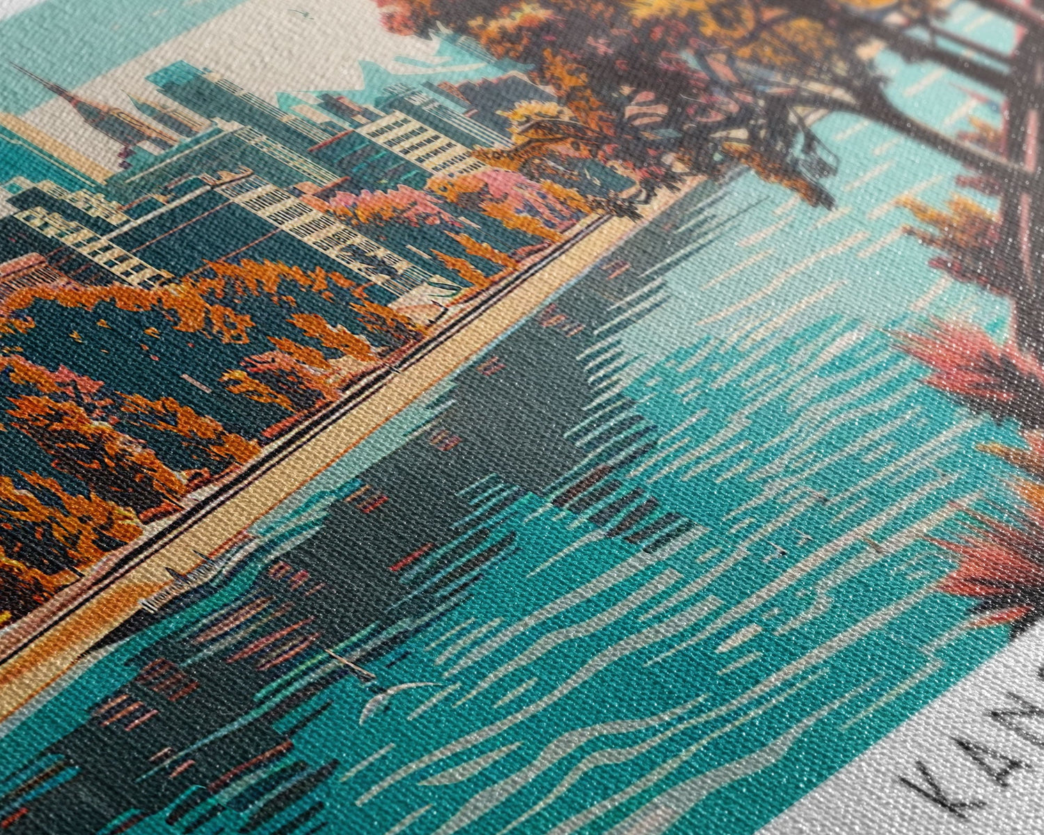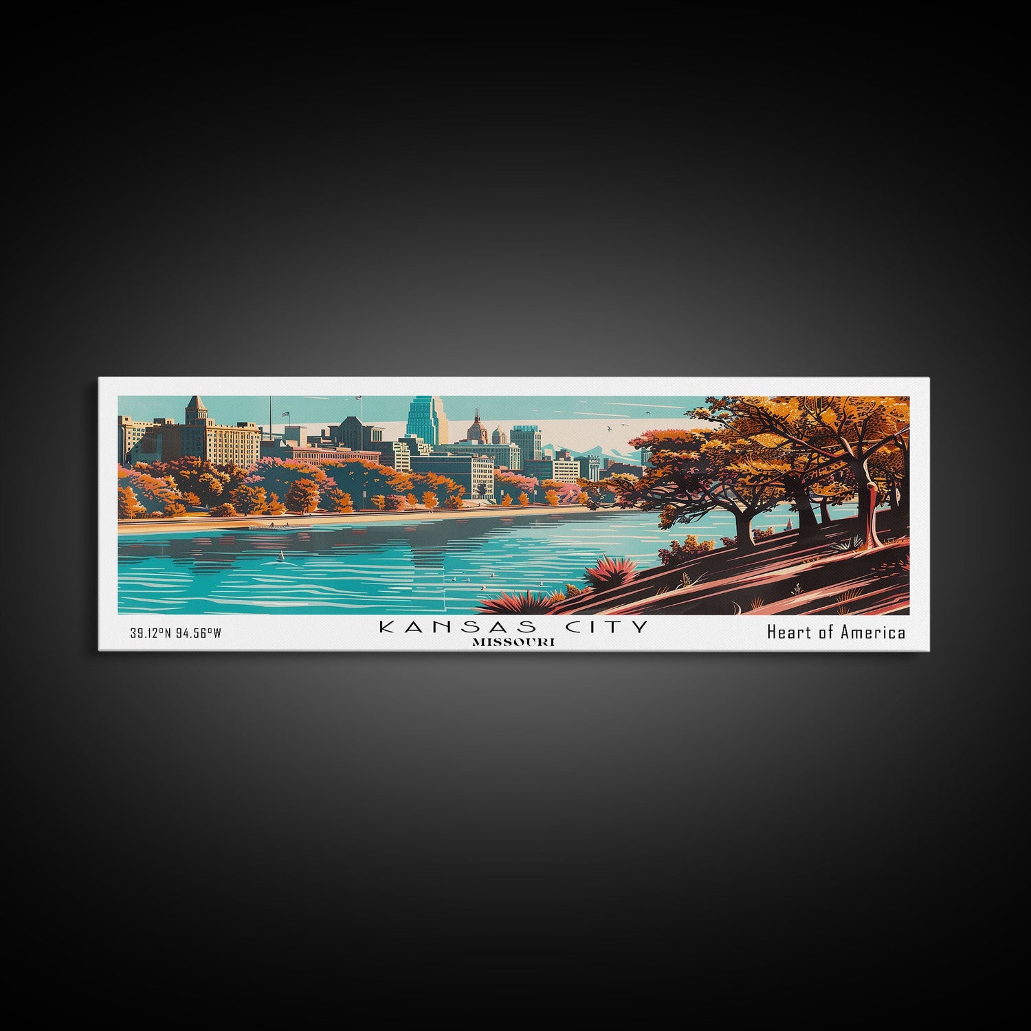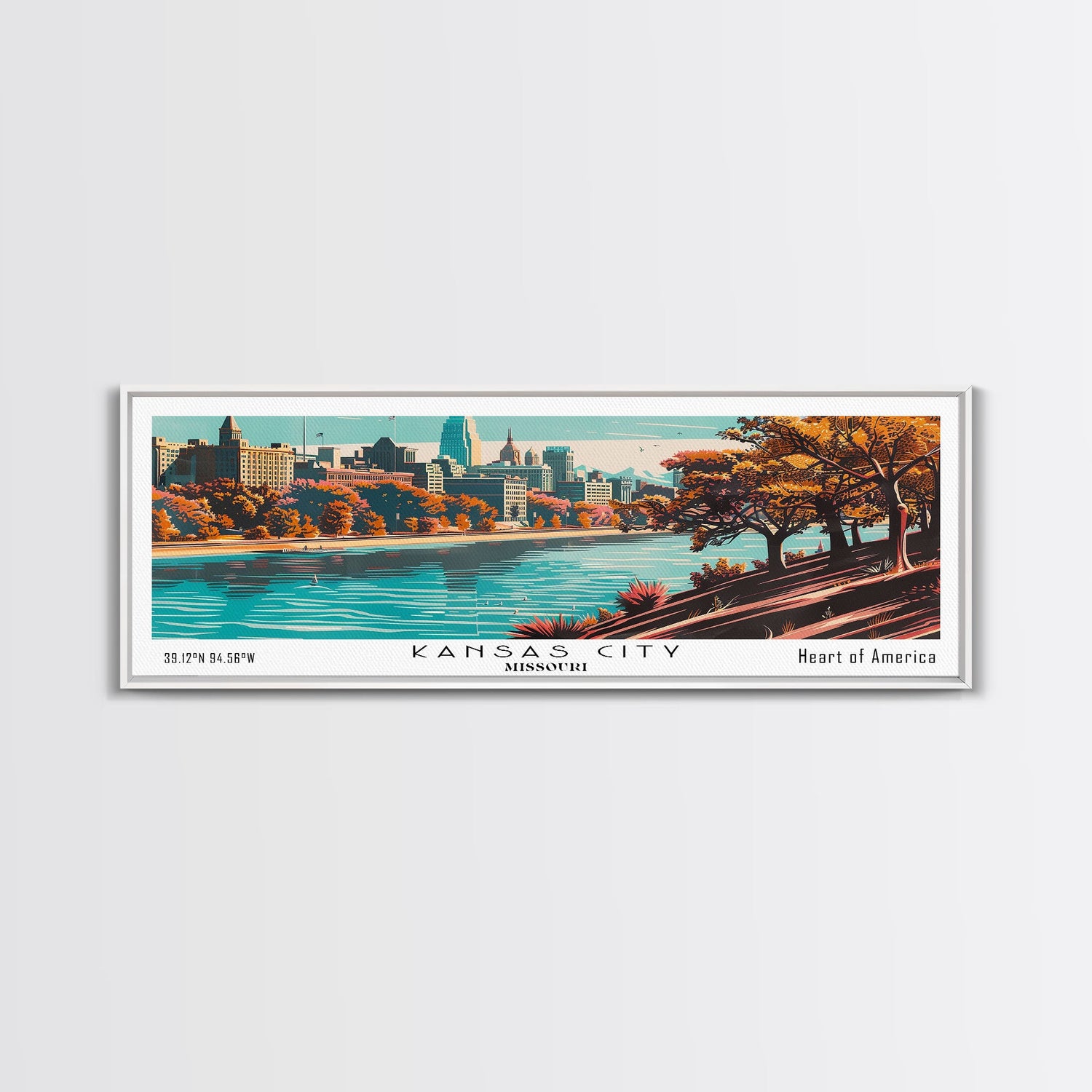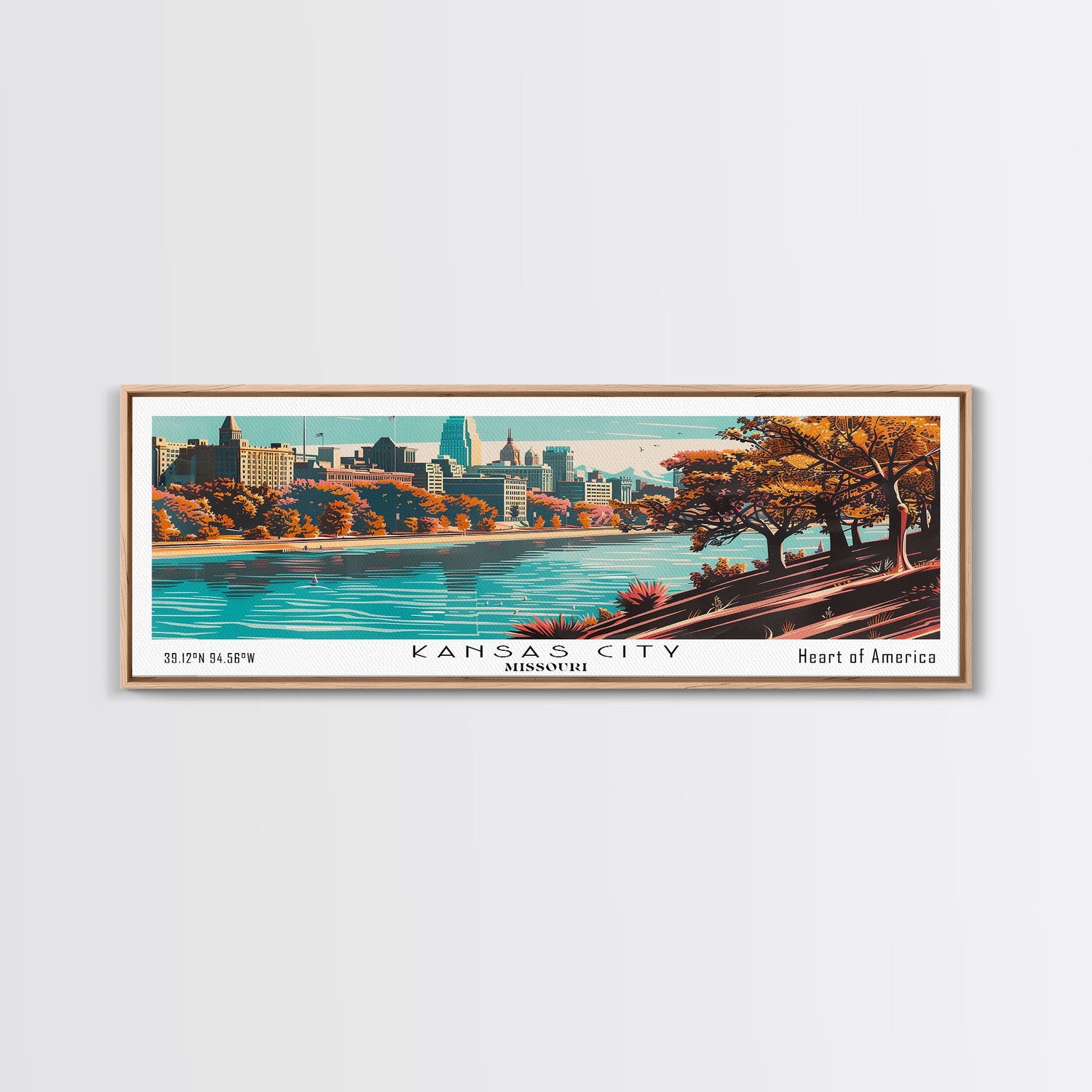 Kansas City Missouri Panoramic Wall Art, Mid Century Modern Framed Canvas Print, Retro Pop Art Travel Poster, Living Room Decor, Cityscape Art, Home Office Decor