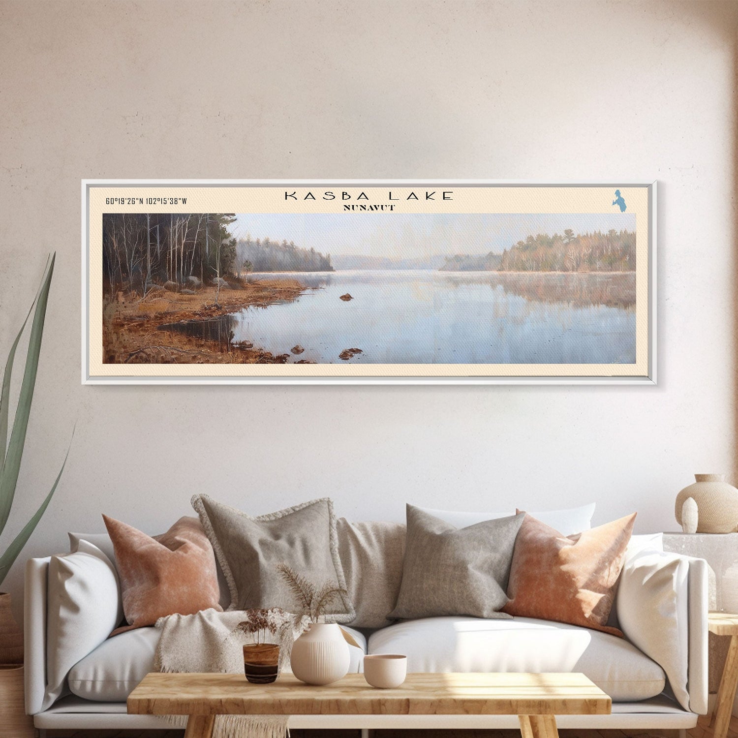 Kasba Lake Framed Canvas Print, Lake House Decor, Panoramic Wall Art, Travel Poster, Beautiful Lake Painting, Home Decor