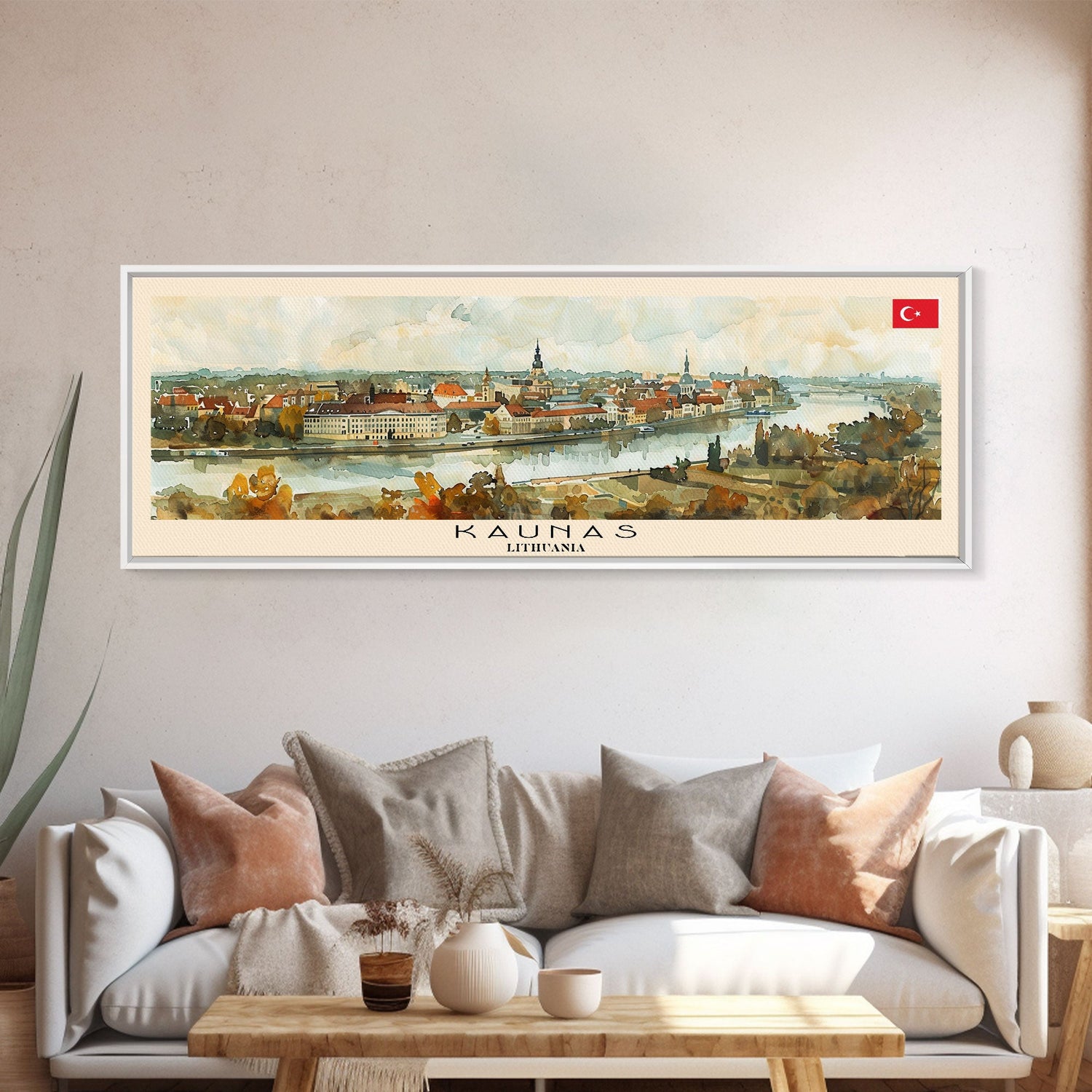 Kaunas Lithuania Travel Print Wall Art, Panoramic City Art, Travel Art, Wall Decor, Vacation Gift, Framed Canvas Print Or Metal Art