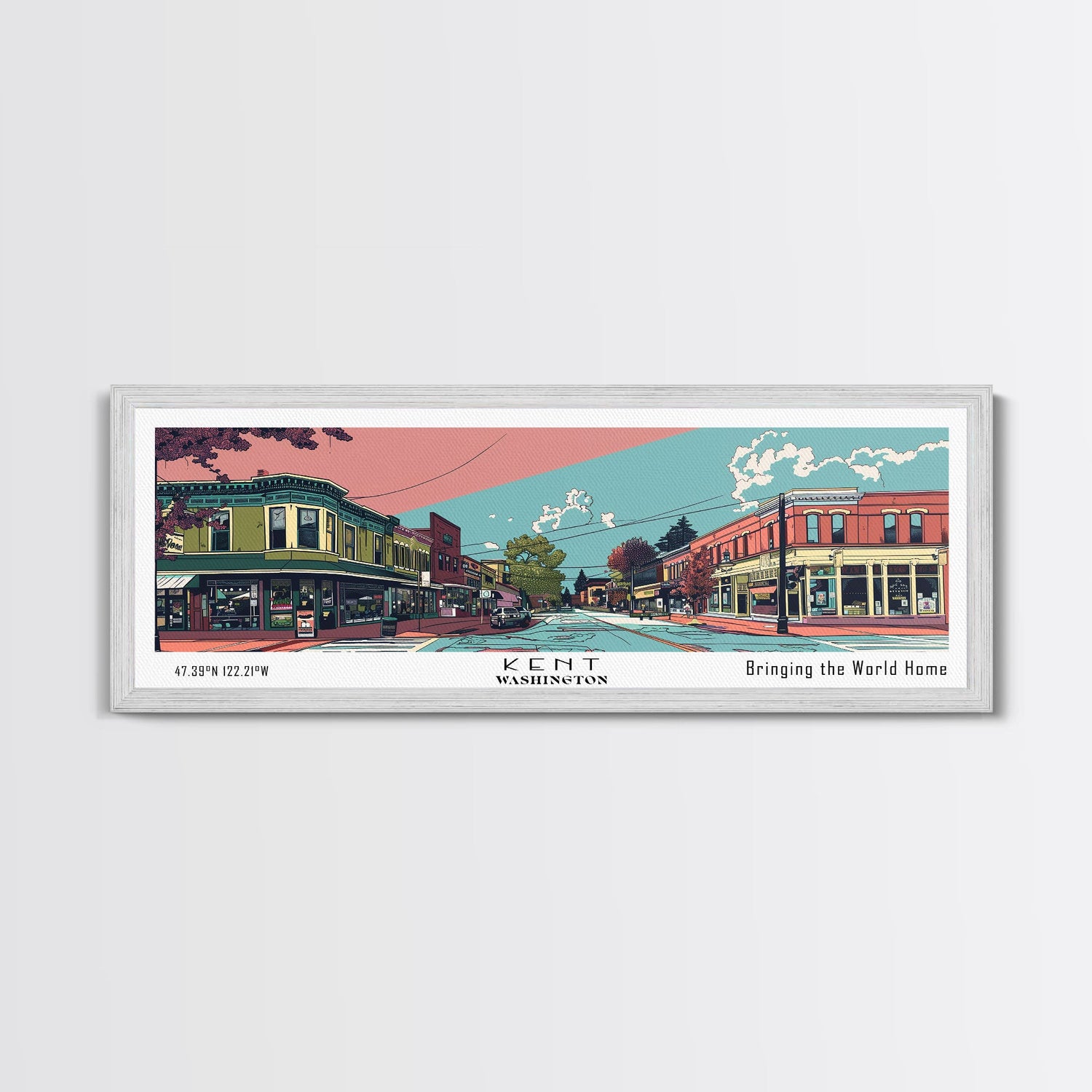 Kent Washington Panoramic Wall Art, Mid Century Modern Framed Canvas Print, Retro Pop Art Travel Poster, Home Wall Art