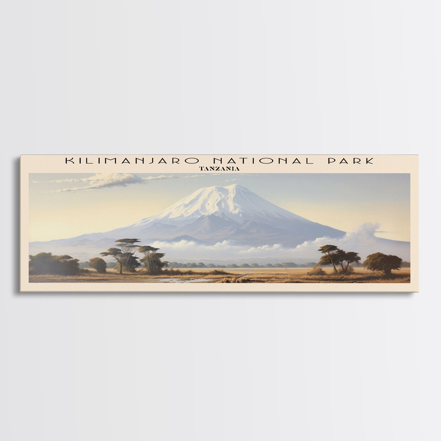 Kilimanjaro National Park Travel Print Wall Art, Travel Poster Print, Retro Style COUNTRY Home Decor, Wall Hanging, Travel Gift Idea, Unique Metal Art - 10x30 Inches / Gallery Wrap Canvas - Ready To Hang está agotado y se enviará tan pronto como vuelva a estar disponible.