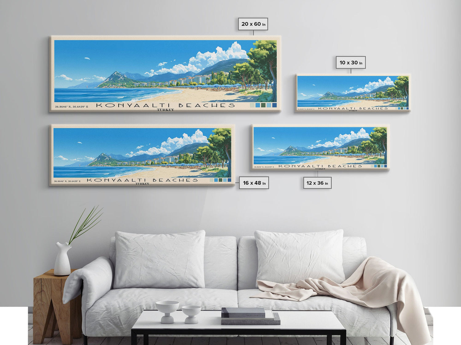 Konyaaltı Beaches, Turkey Panoramic Print, Vacation Gift, Turkey Wall Art, Beach Painting, Beach Decor, Beach Or Lakehouse Art