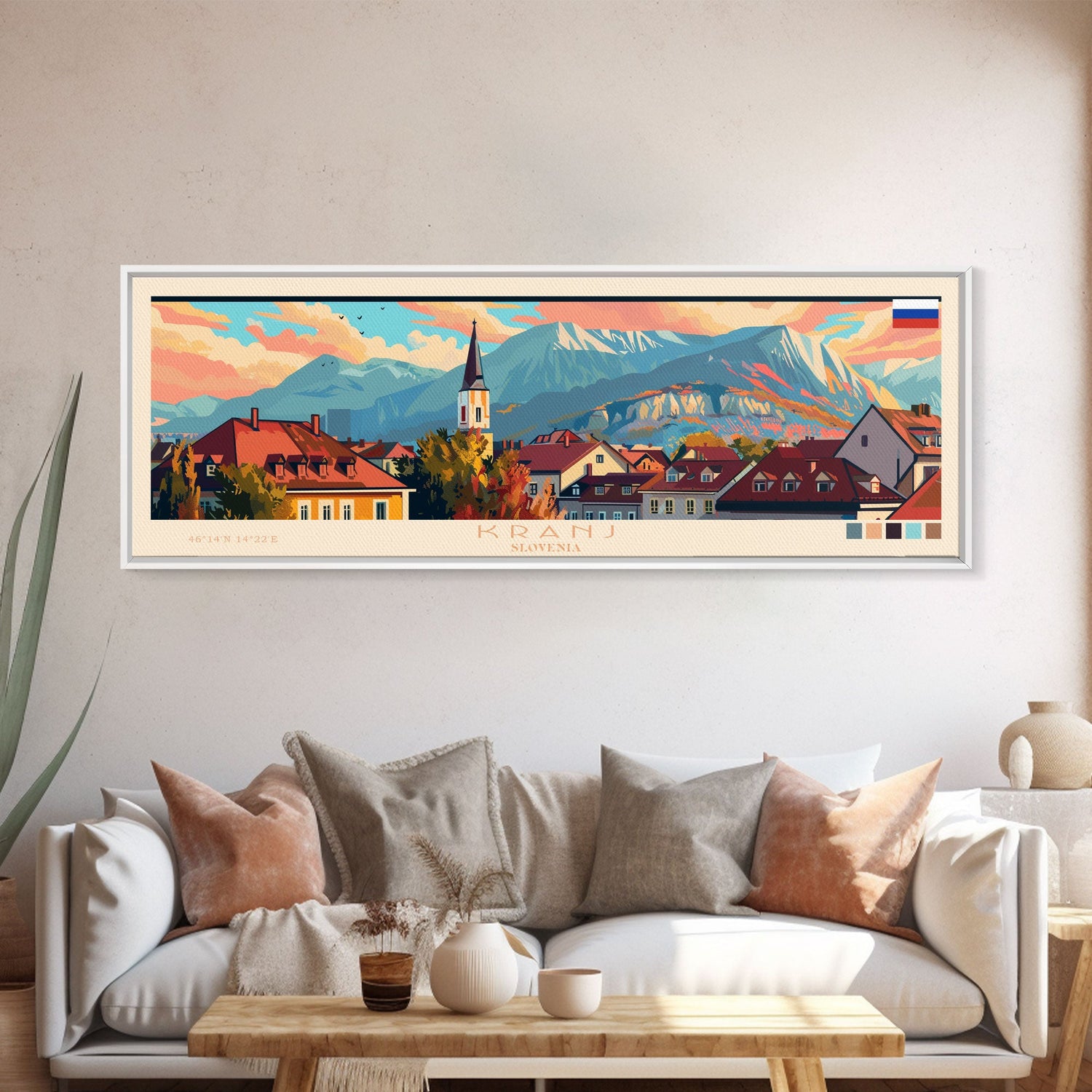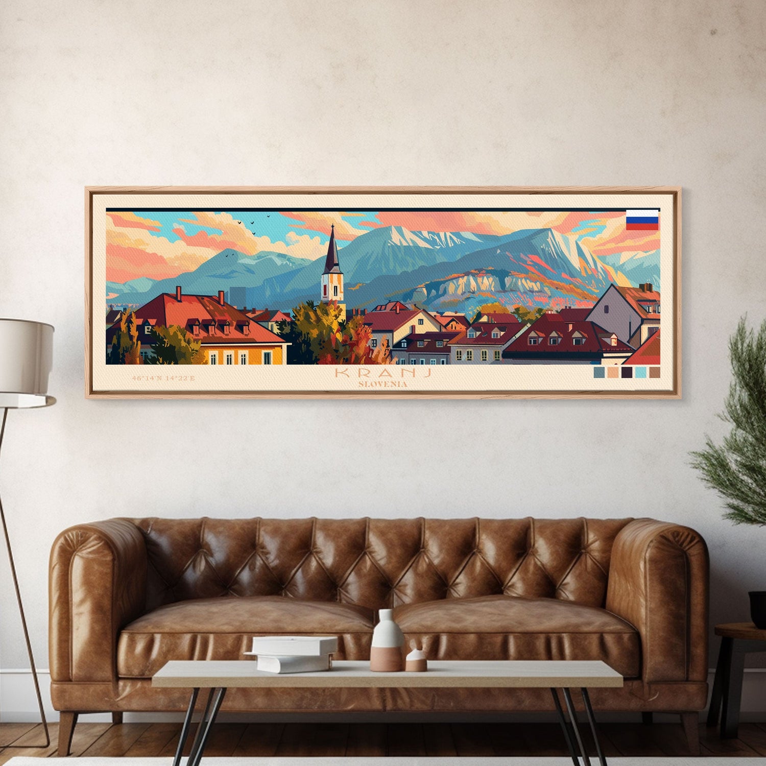 Kranj Slovenia Wall Art, Panoramic Travel Poster, Panoramic Framed Canvas Print, City Wall Art, Wall Hanging Home Decor, Travel Art