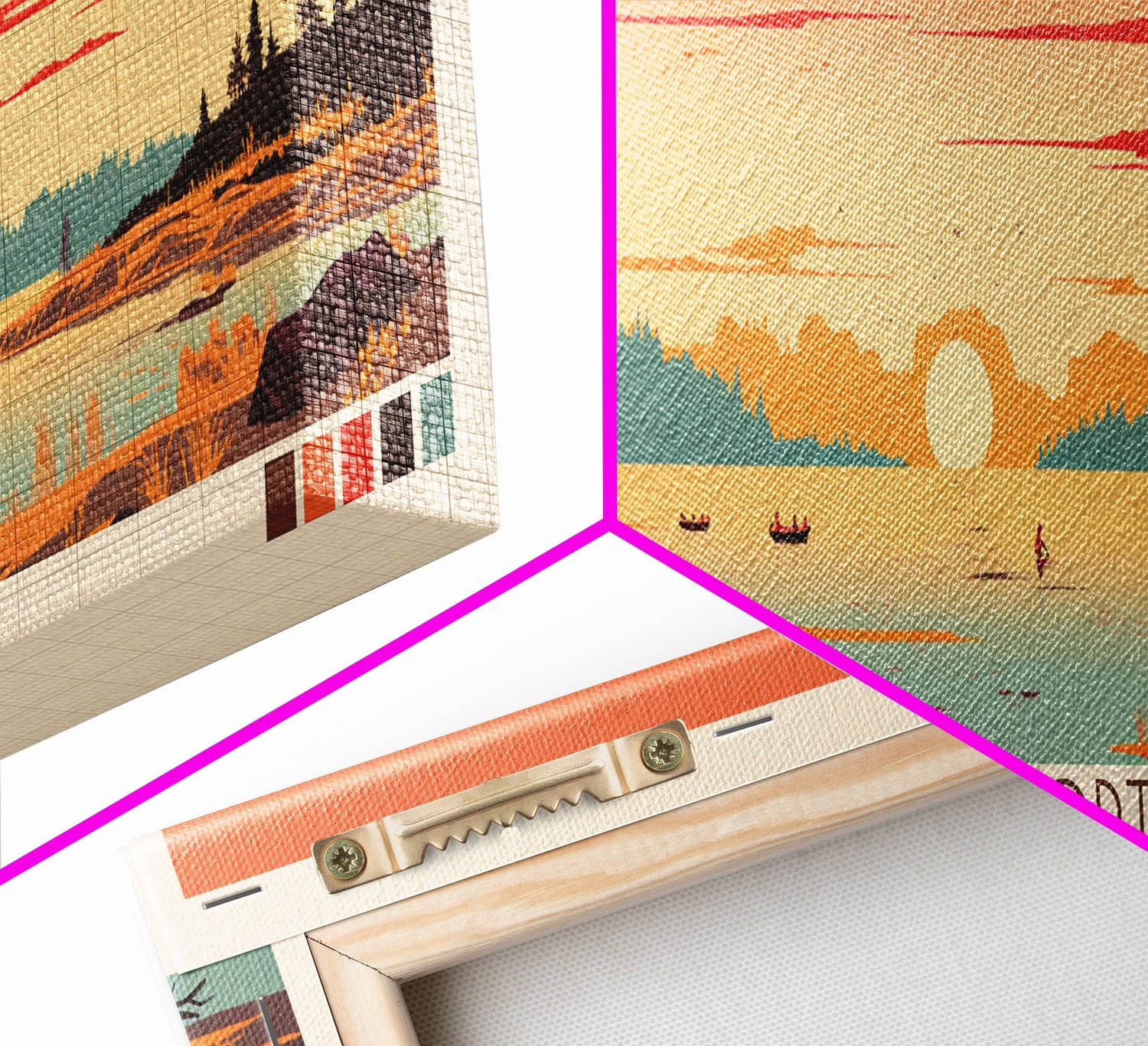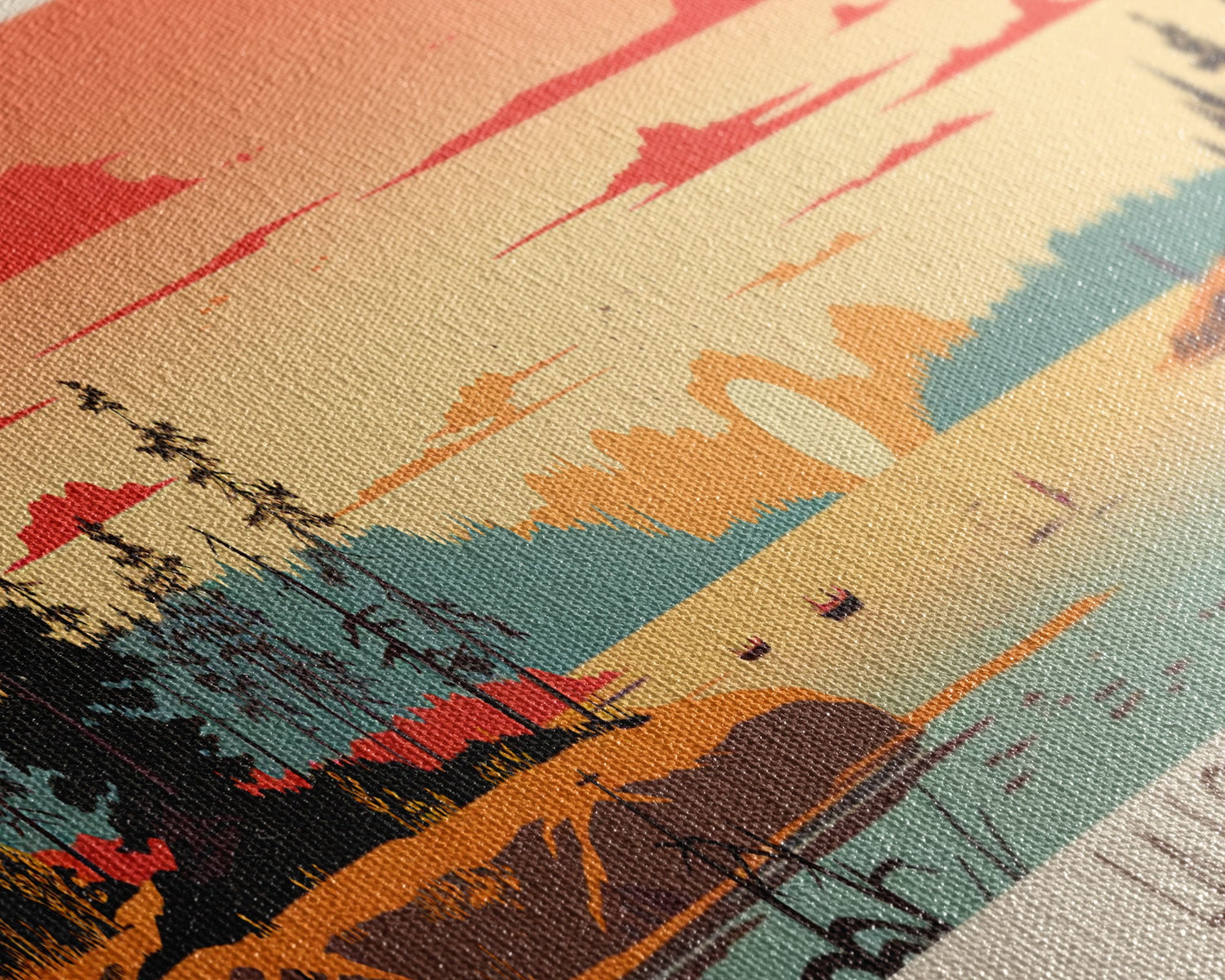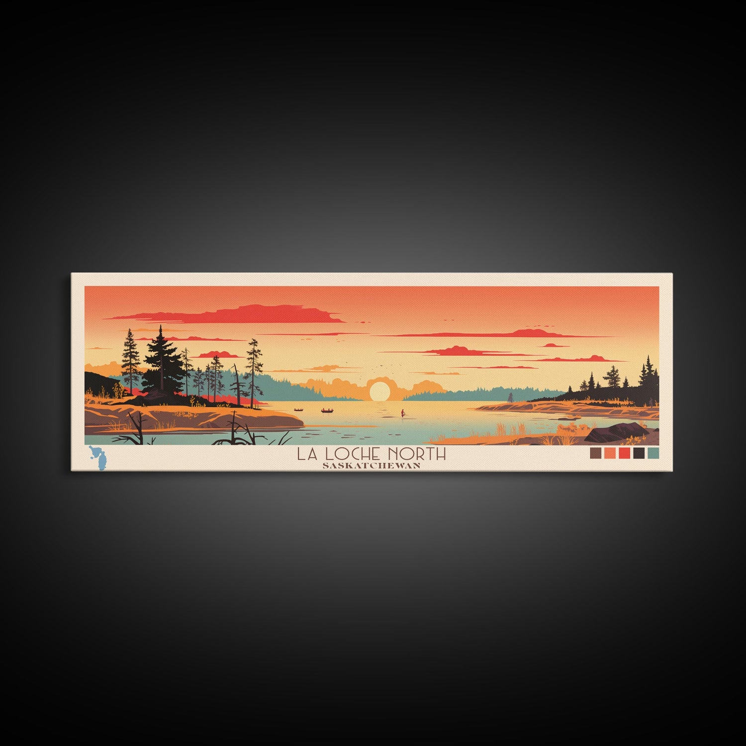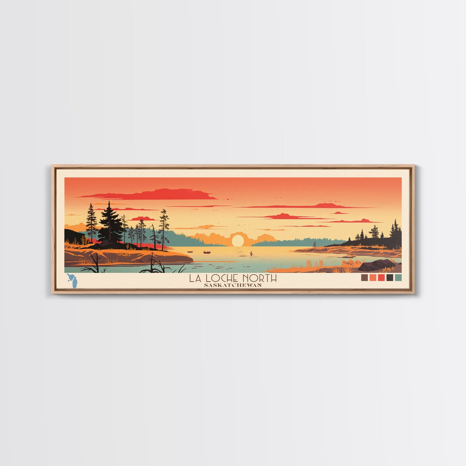 La Loche North Saskatchewan Framed Canvas Print, Panoramic Wall Art, Midcentury Modern, Pop Art, Lake House Decor, Travel Poster, Living Room Art