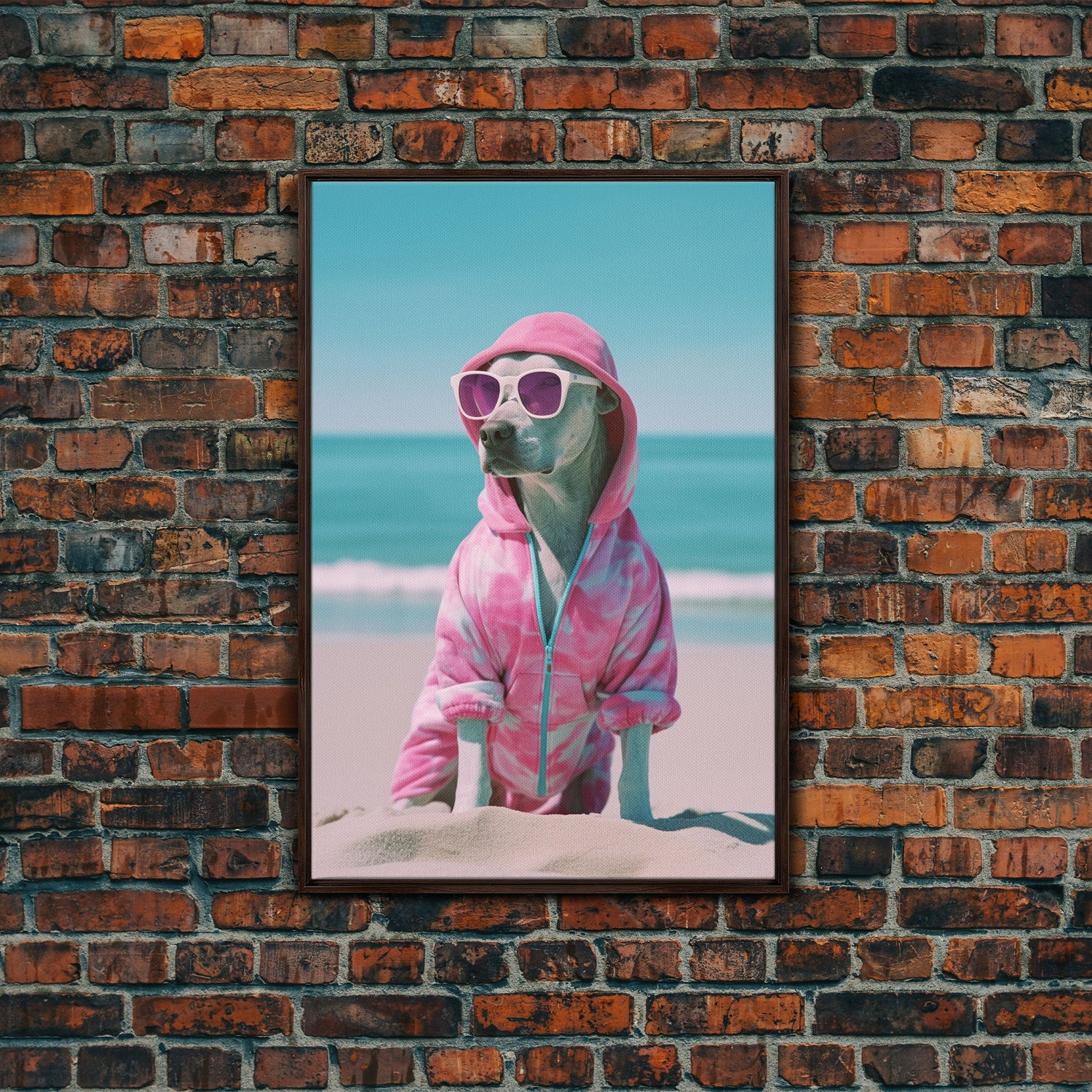 Labrador In Pink Hoodie Sunglasses Wall Print, Beach Art, Dog Print, Dog Portrait, Framed Wall Art, Framed Canvas, Wall Print, Wall Canvas
