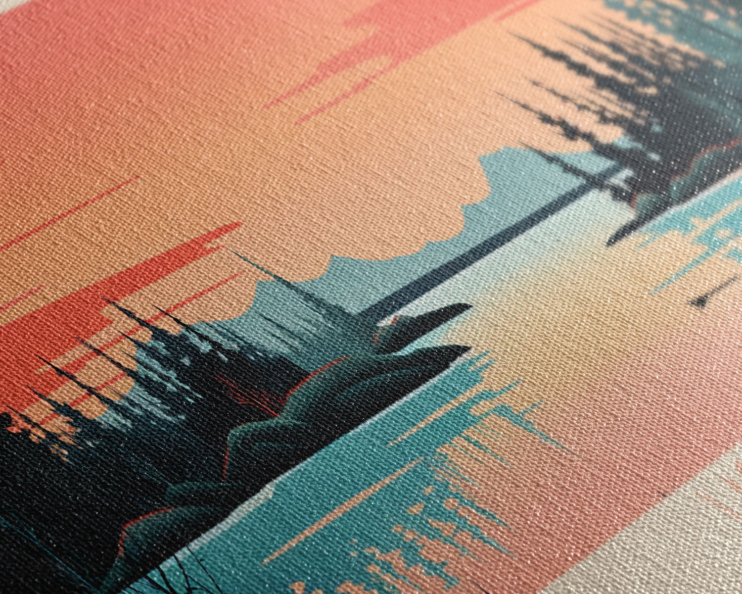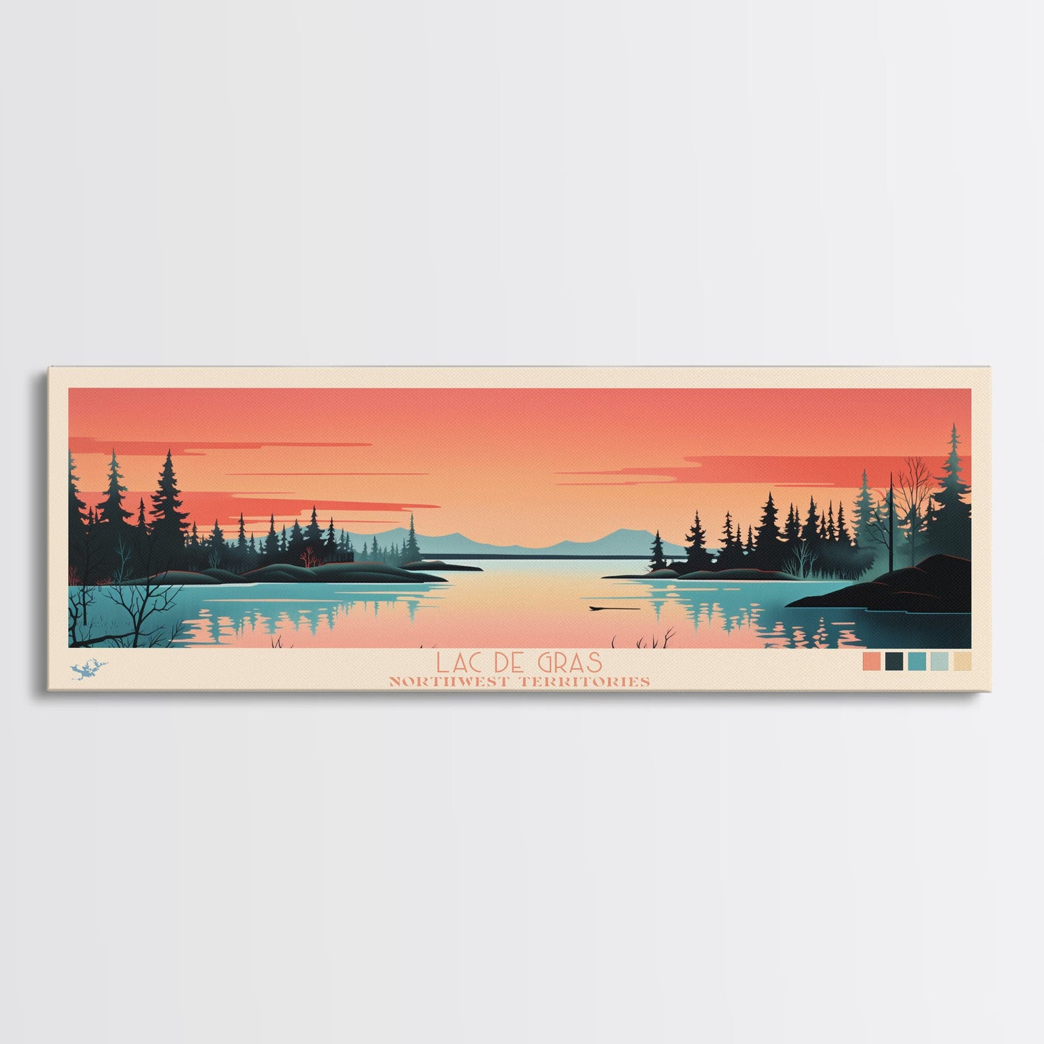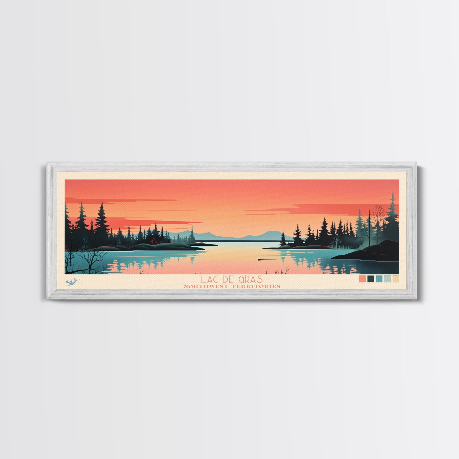 Lac De Gras Northwest Framed Canvas Print, Panoramic Wall Art, Midcentury Modern, Pop Art, Bedroom Decor, Travel Poster, Living Room Art