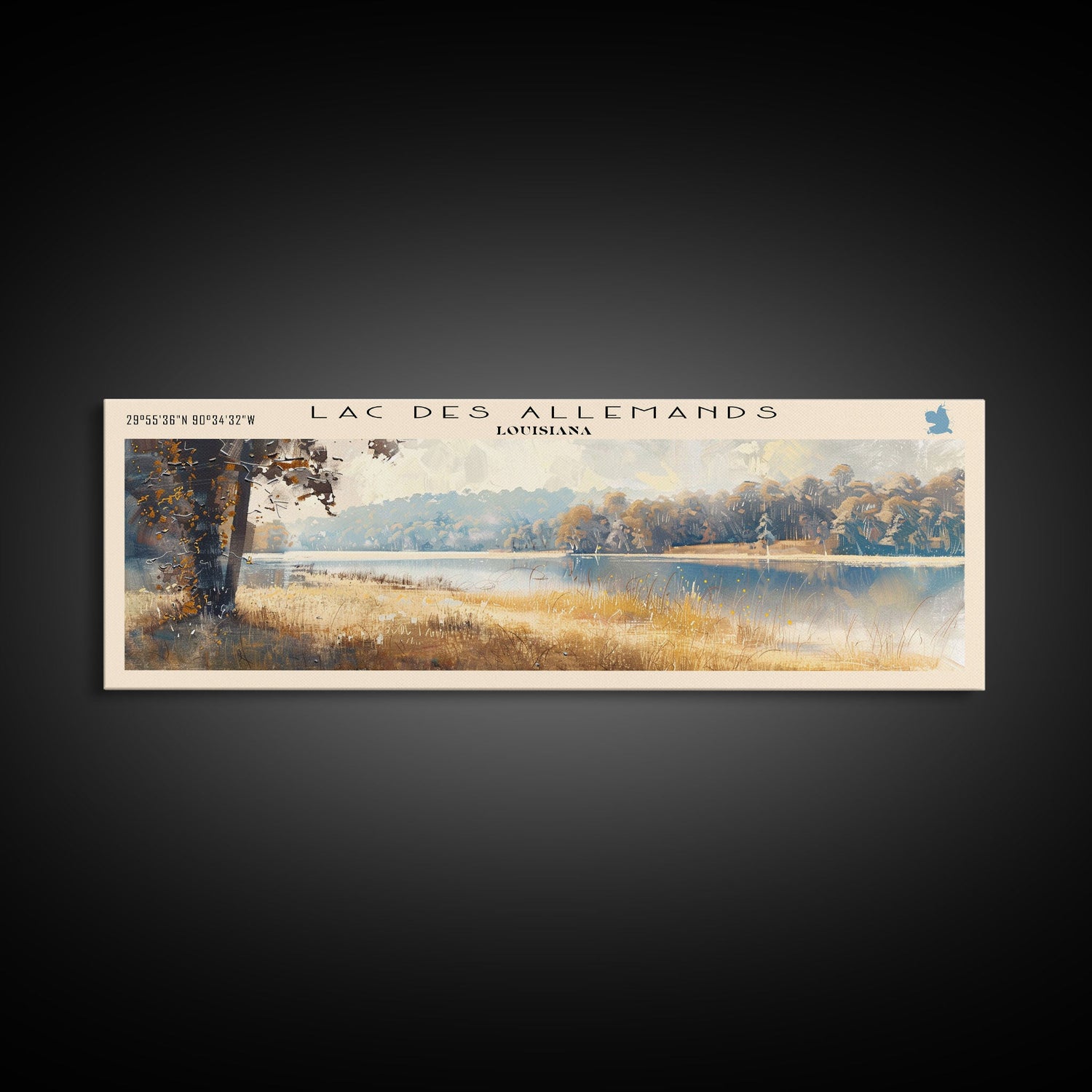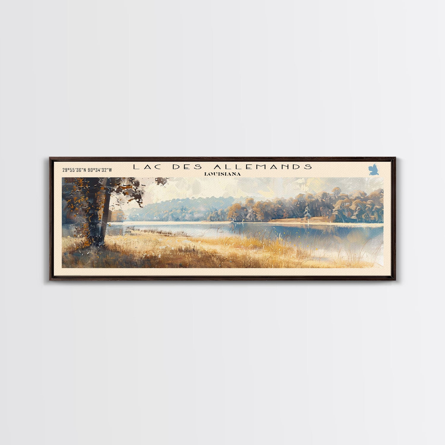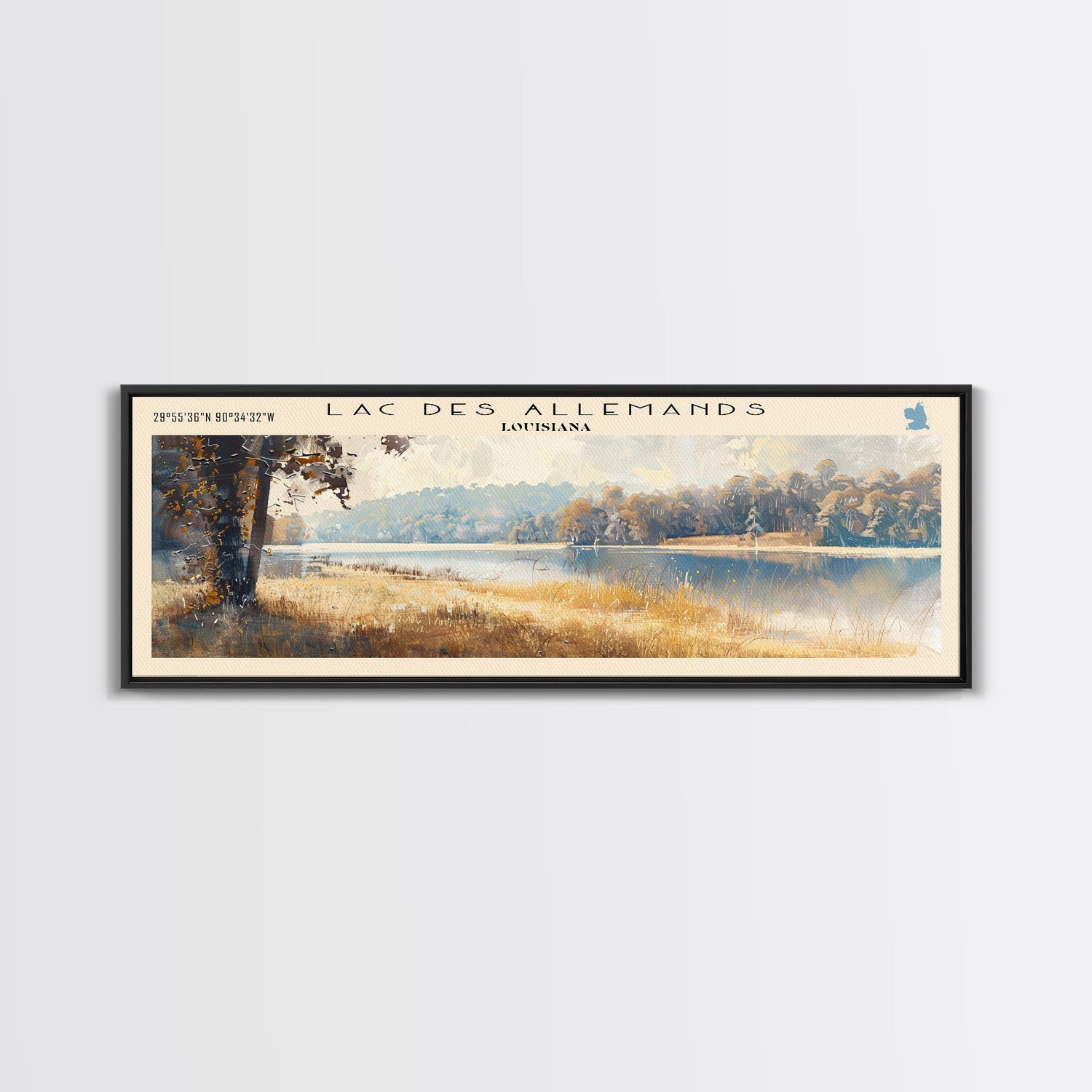 Lac des Allemands Louisiana Framed Canvas Print, Panoramic Lake House Decor, Wall Art, Travel Poster, Captivating Lake Painting, Nature Art