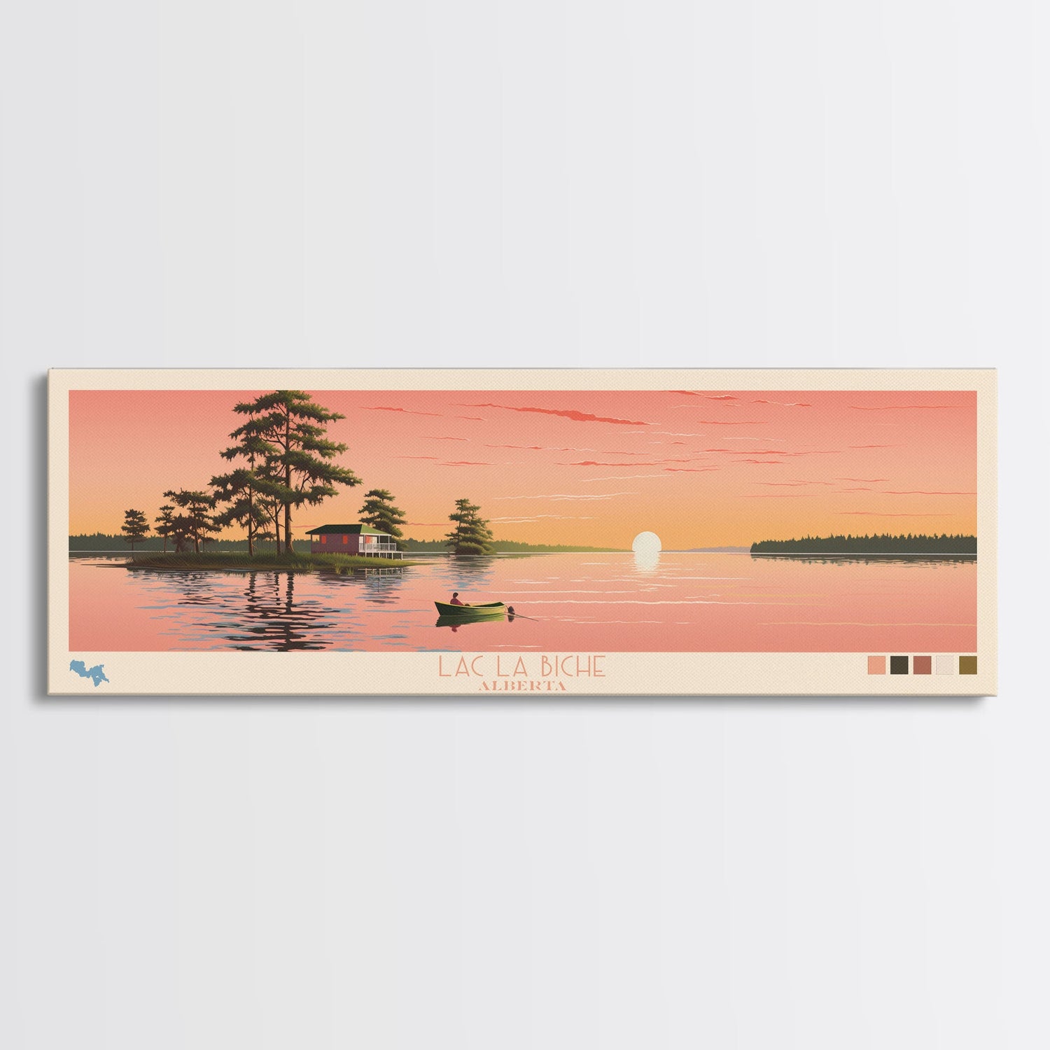 Lac La Biche Alberta Framed Canvas Print, Panoramic Art, Midcentury Modern, Pop Art, Living Room Wall Art, Travel Poster, Lake House Decor