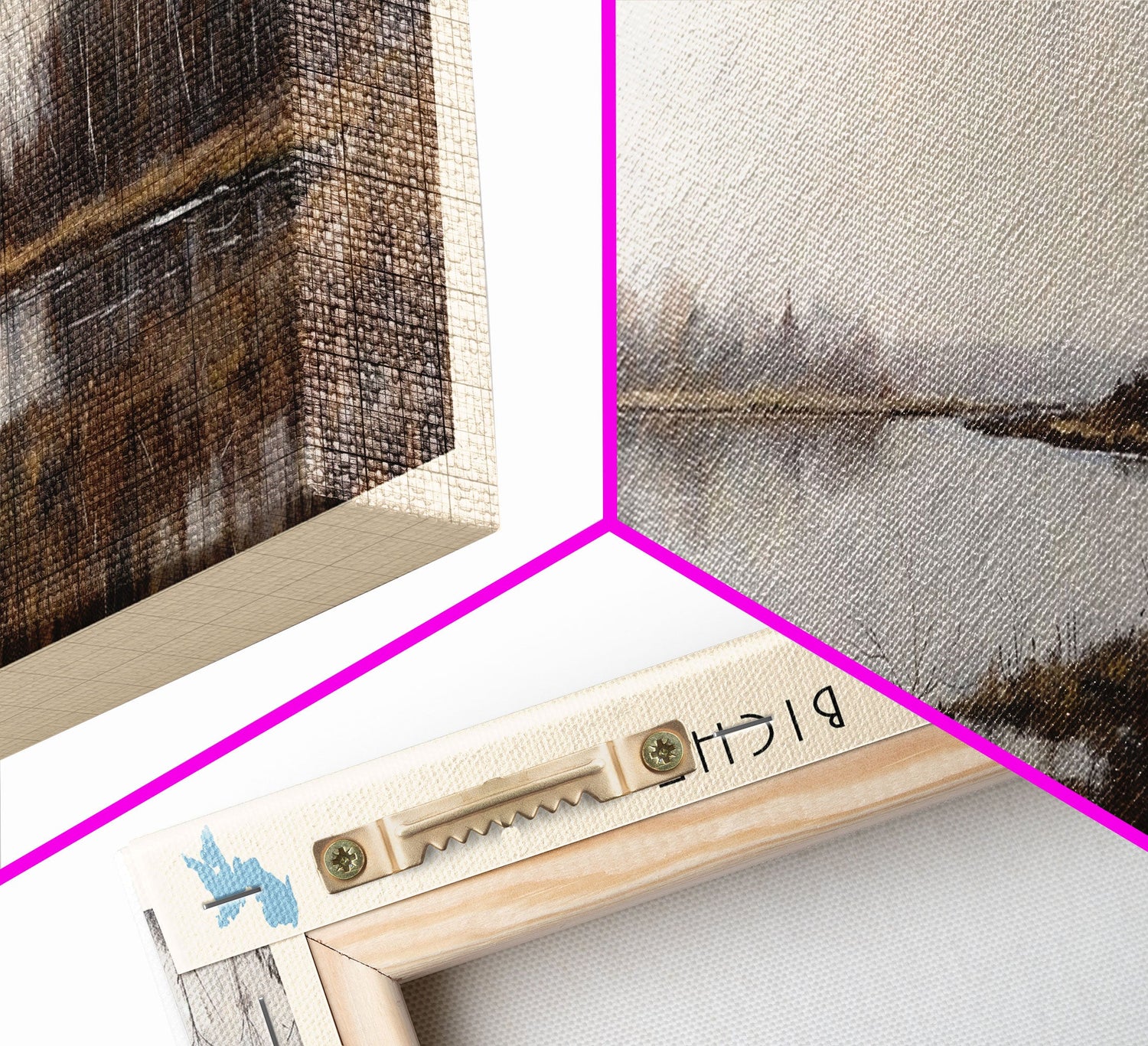 Lac La Biche Lake Blue Ridge Georgia Framed Canvas Print, Lake House Art, Panoramic Wall Art, Travel Poster, Stunning Lake Painting, Nature Art