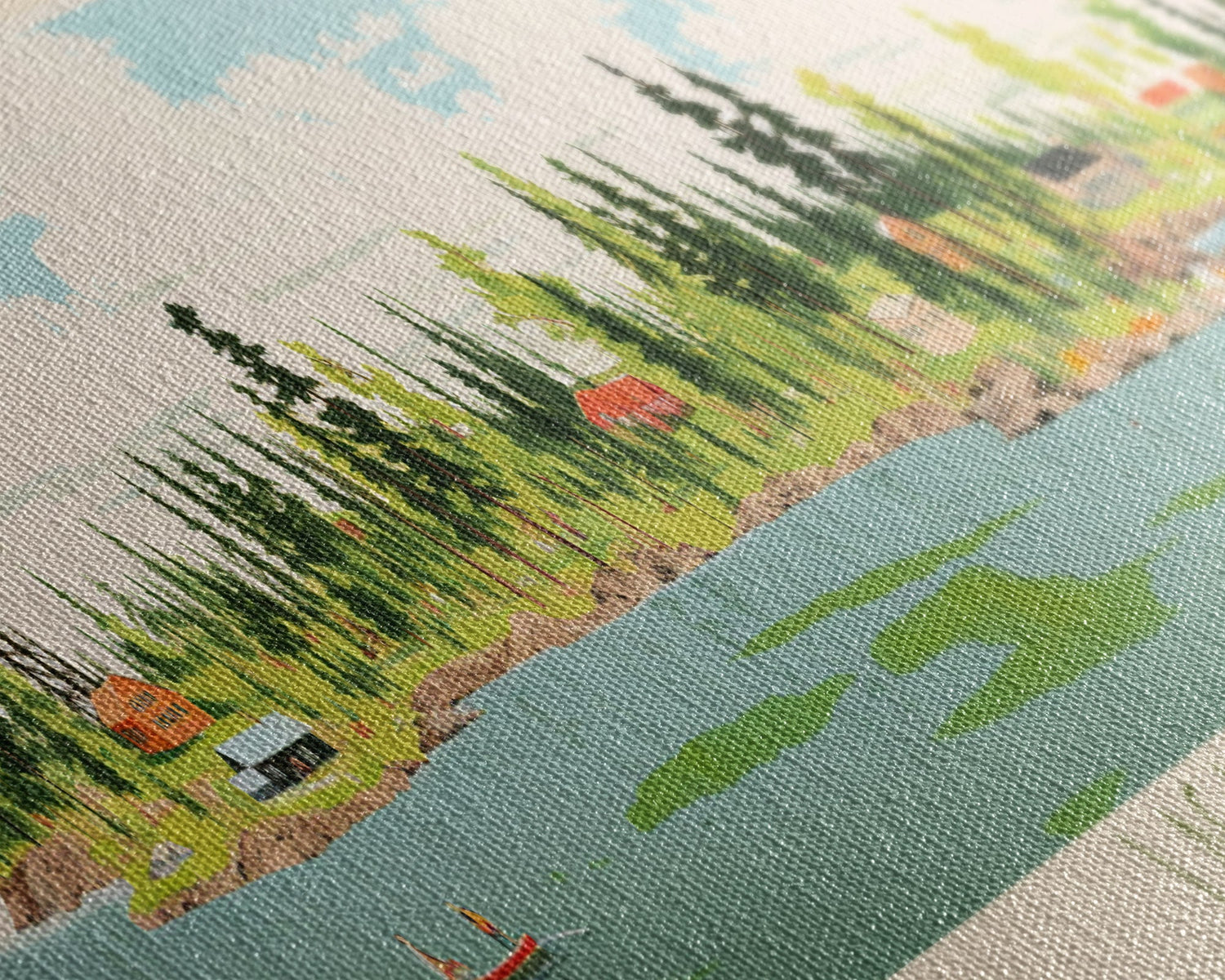 Lac La Plonge Saskatchewan Framed Canvas Print, Panoramic Wall Art, Midcentury Modern, Pop Art, Bedroom Art, Travel Poster, Living Room Decor