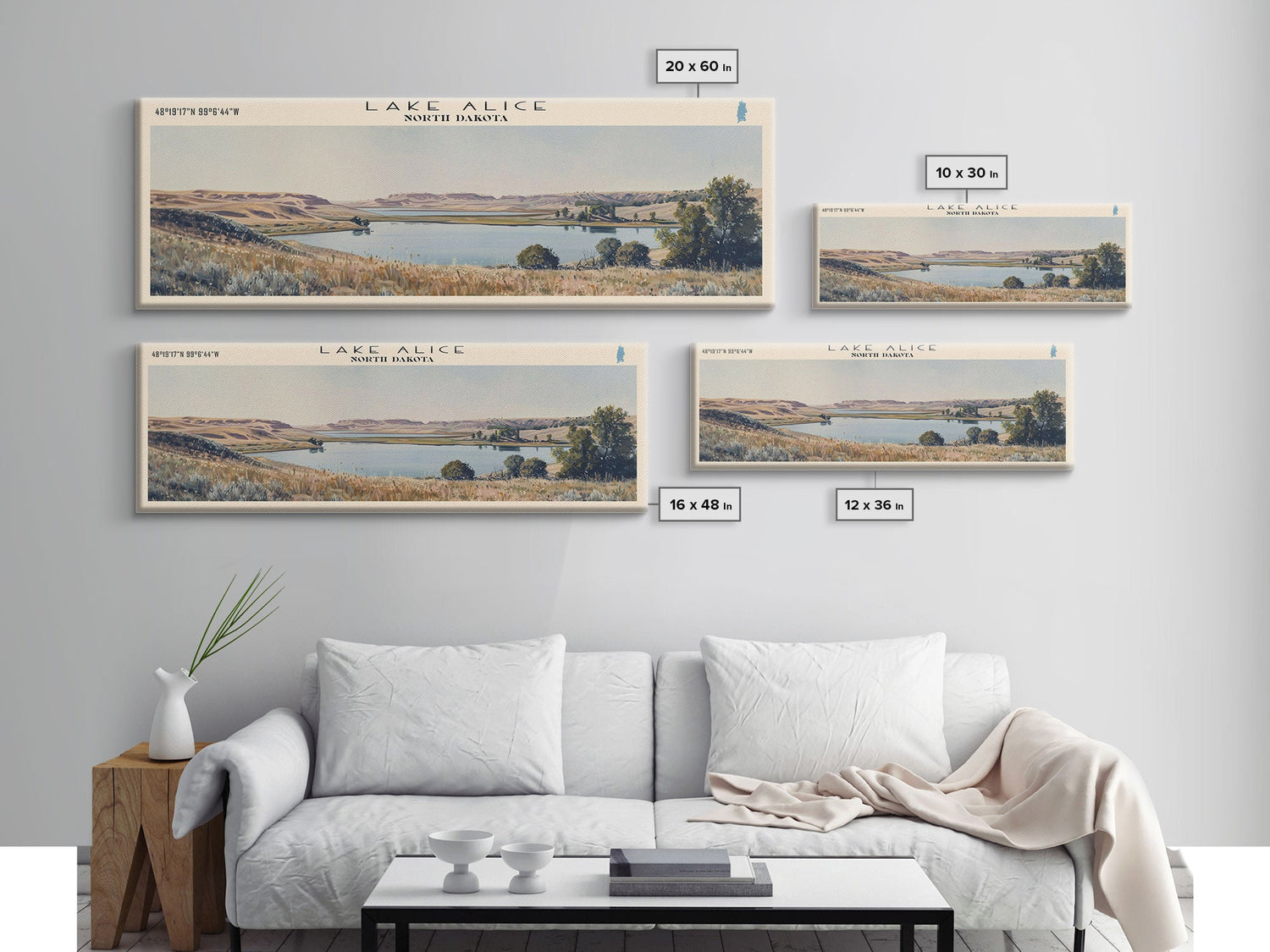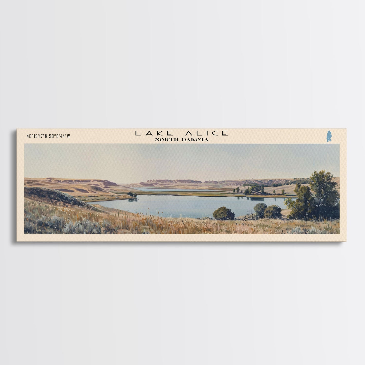 Lake Alice North Dakota Framed Canvas Print, Panoramic Lake House Decor, Wall Art, Travel Poster, Scenic Lake Painting, Nature Art