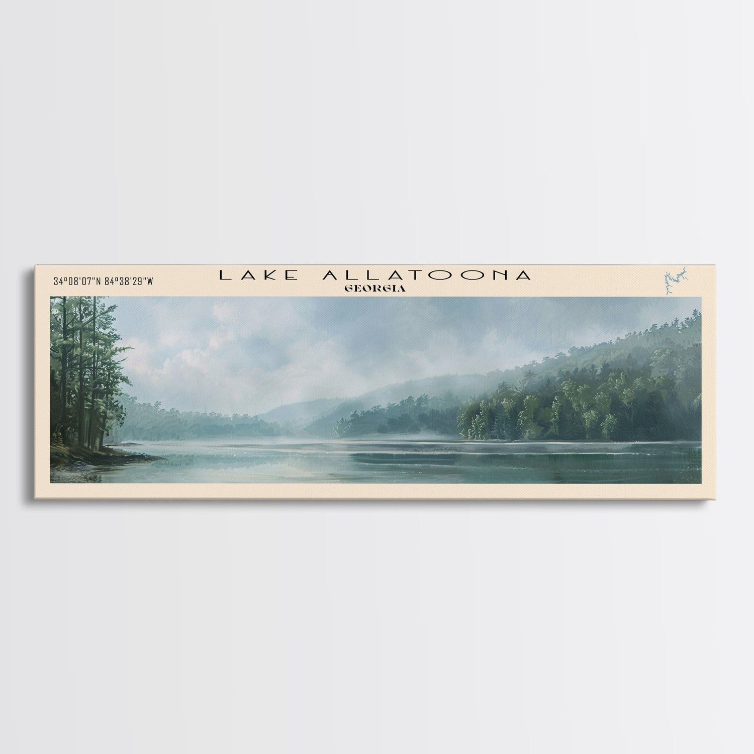 Lake Allatoona Georgia Framed Canvas Print, Lake House Art, Panoramic Wall Art, Travel Poster, Serene Lake Painting, Home Decor