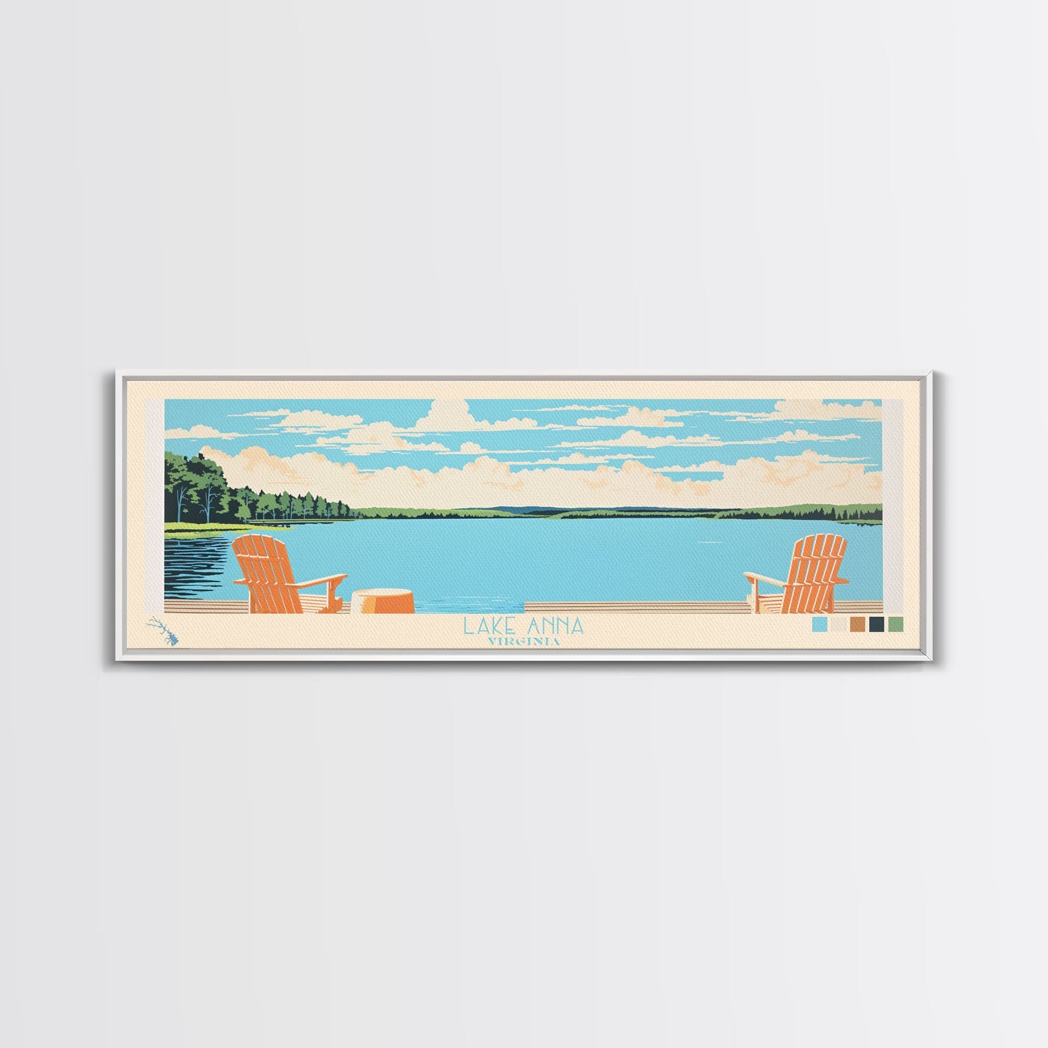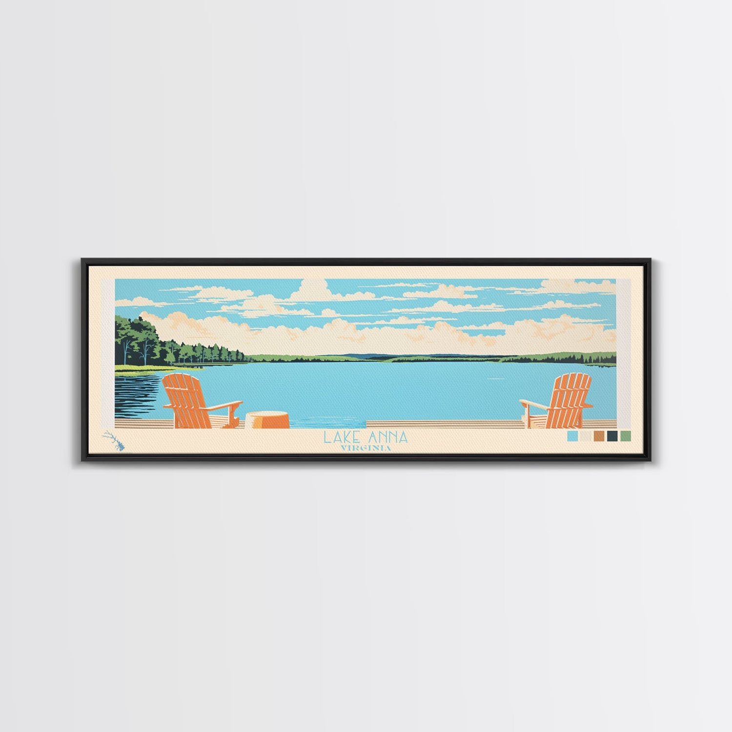 Lake Anna Virginia Framed Canvas Print, Panoramic Wall Art, Midcentury Modern, Pop Art, Bedroom Decor, Travel Poster, Living Room Art