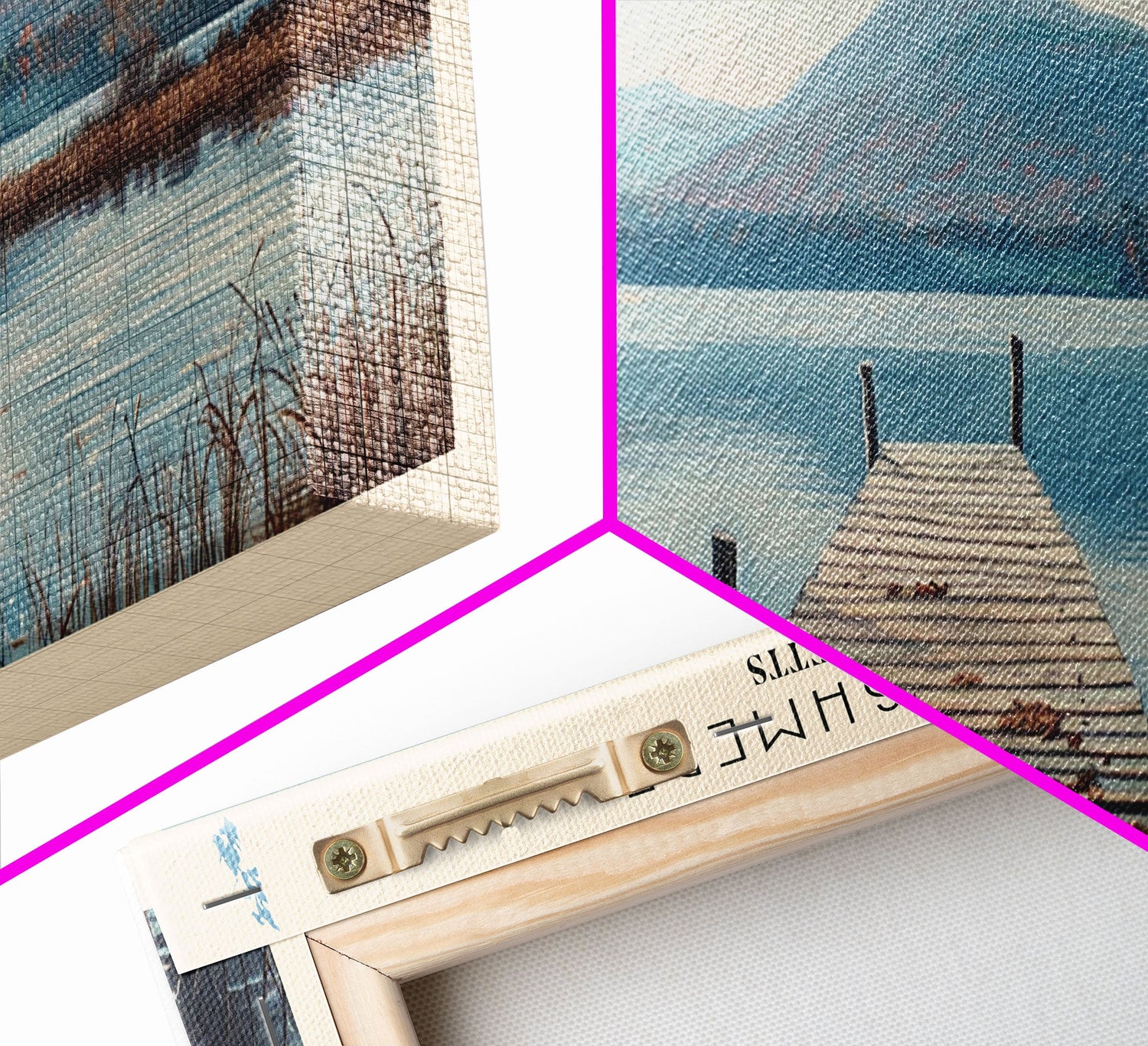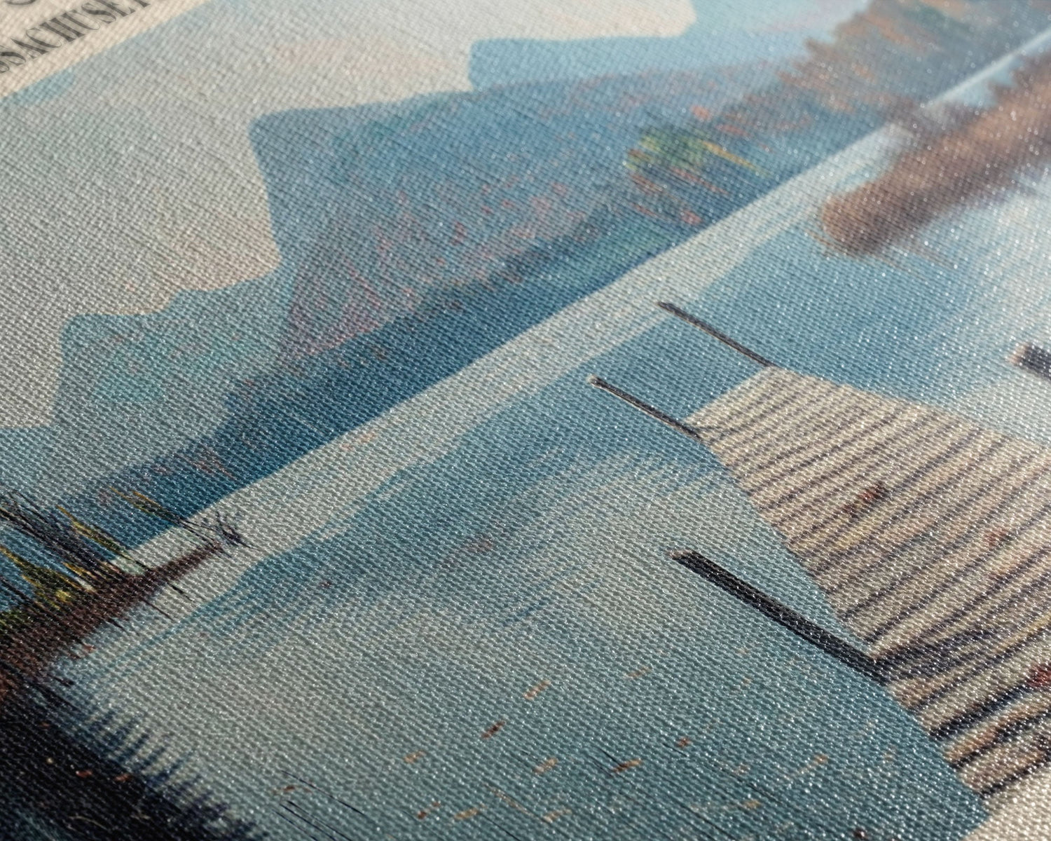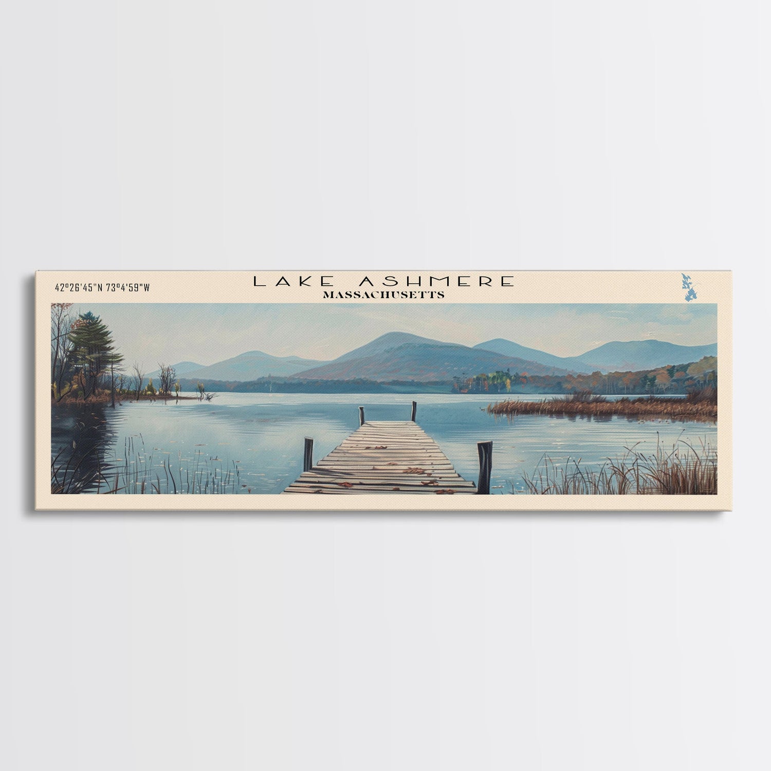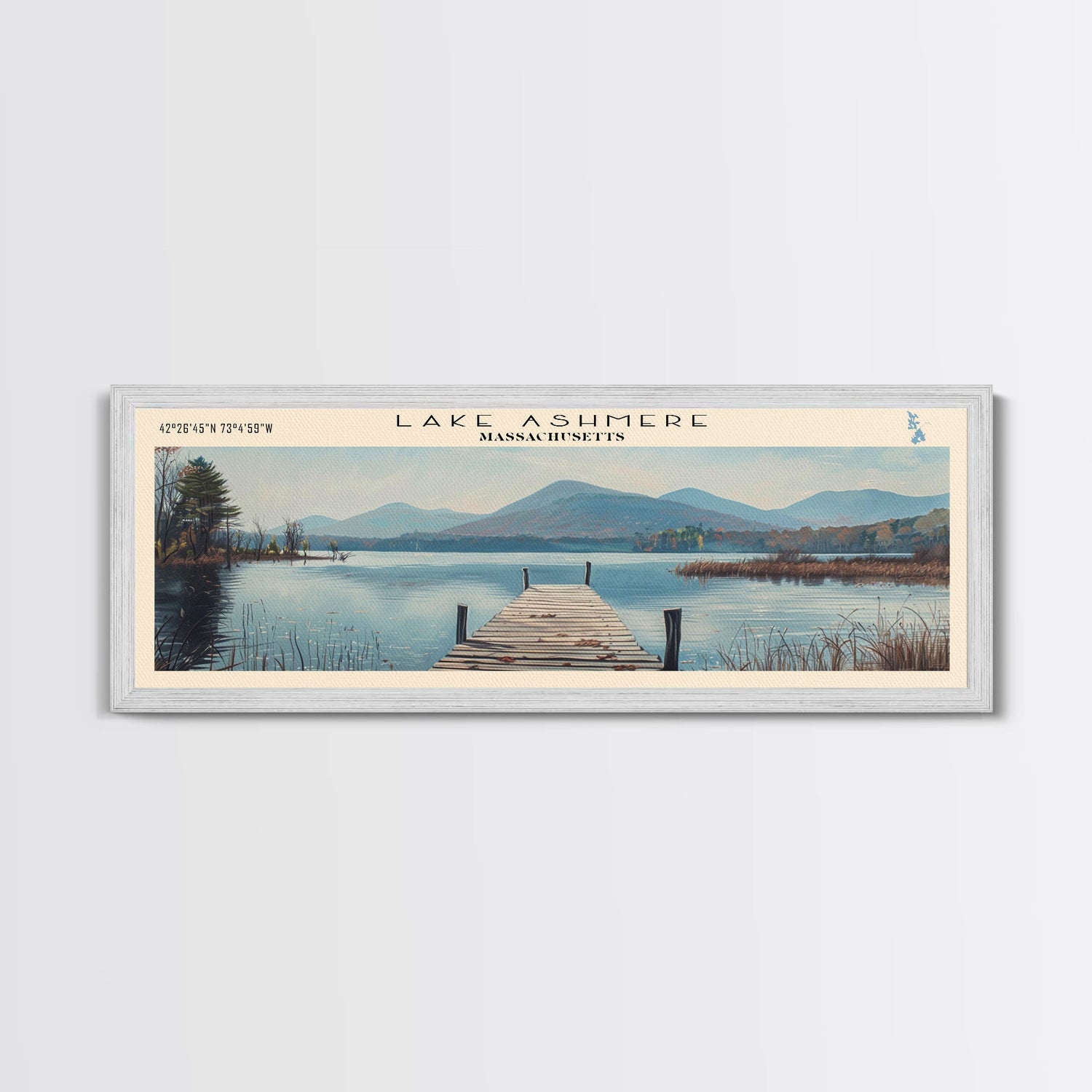 Lake Ashmere Massachusetts Framed Canvas Print, Panoramic Lake House Decor, Wall Art, Travel Poster, Captivating Lake Painting, Nature Art