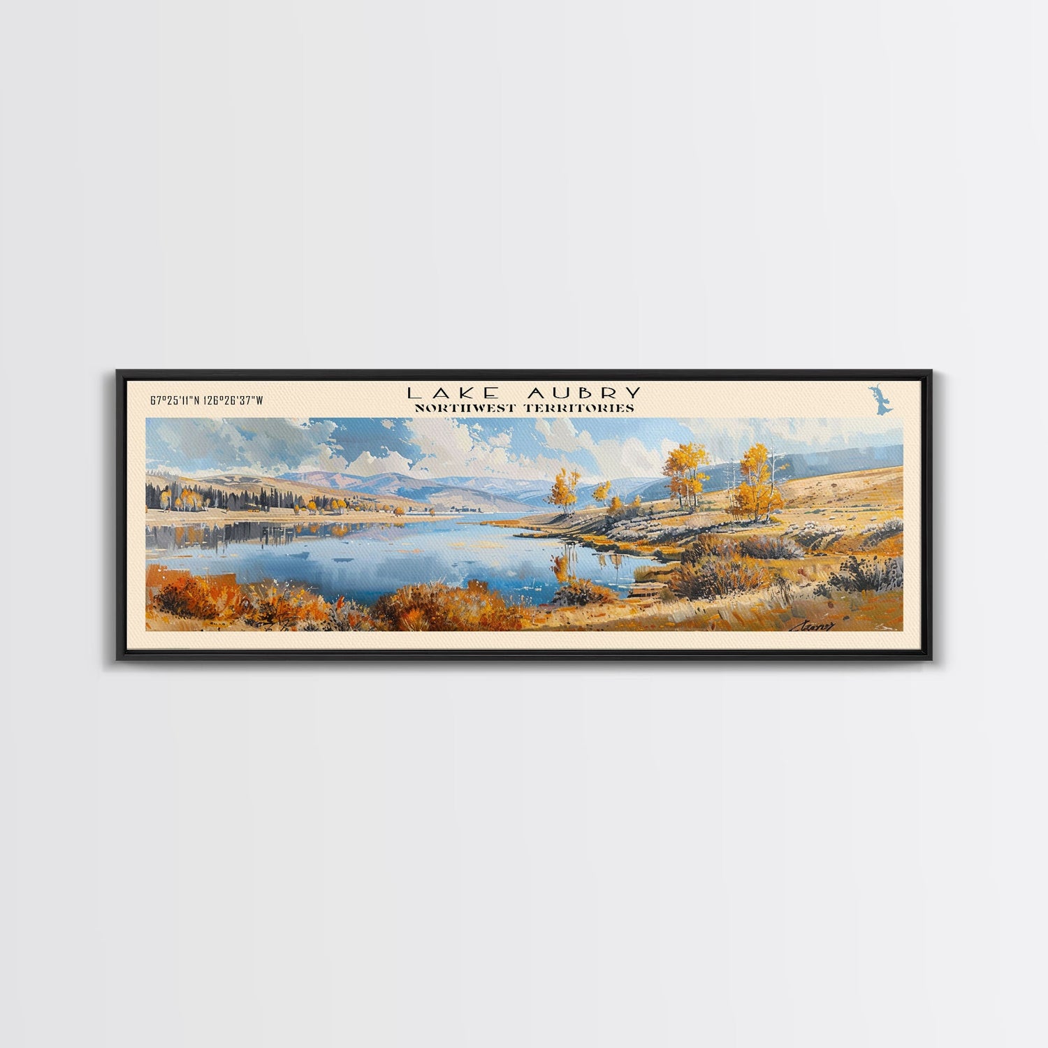 Lake Aubryic Framed Canvas Print, Panoramic Lake House Decor, Wall Art, Travel Poster, Beautiful Lake Painting, Nature Art
