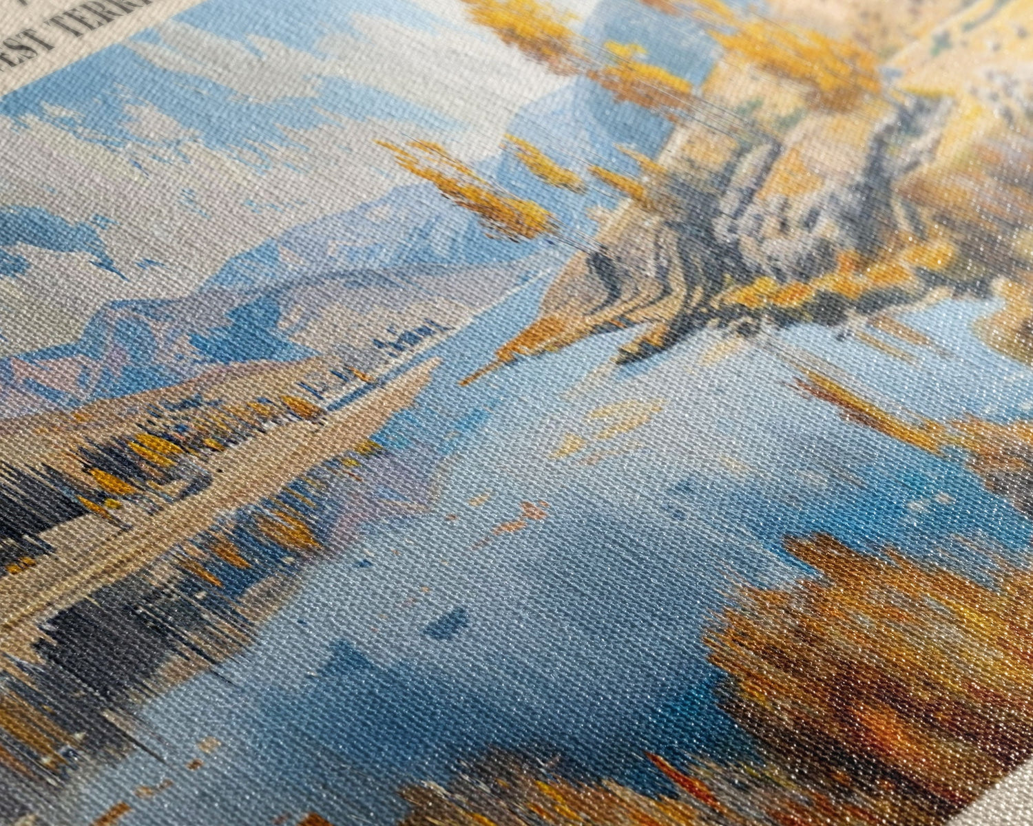 Most of our canvases are made in the USA, with the exception of canvases ordered with the light oak unstained frames, and any large canvases (24x48, 30x60, 16x48 and 20x60) ordered WITH a frame. These are temporarily made in and shipped from Europe, while we try to find a more consistent supplier in the USA.