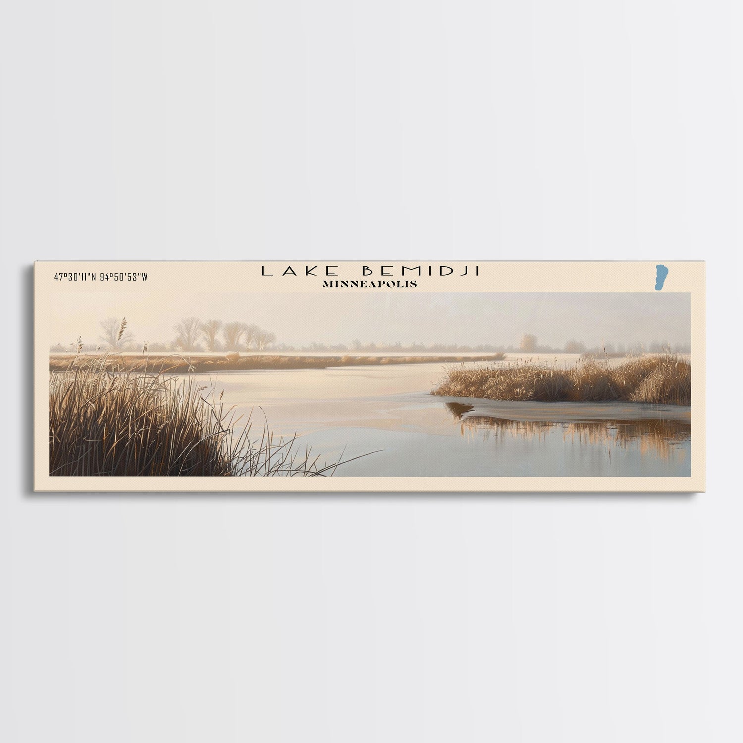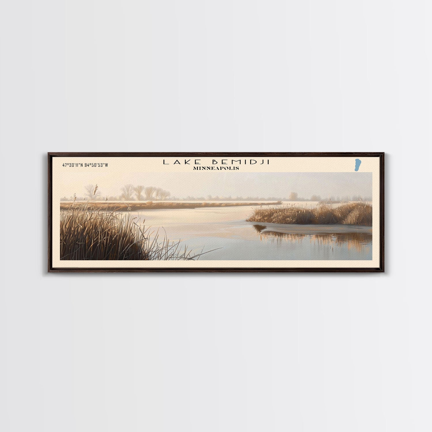Lake Bemidji Minneapolis Framed Canvas Print, Lake House Art, Panoramic Wall Art, Travel Poster, Stunning Lake Painting, Home Decor