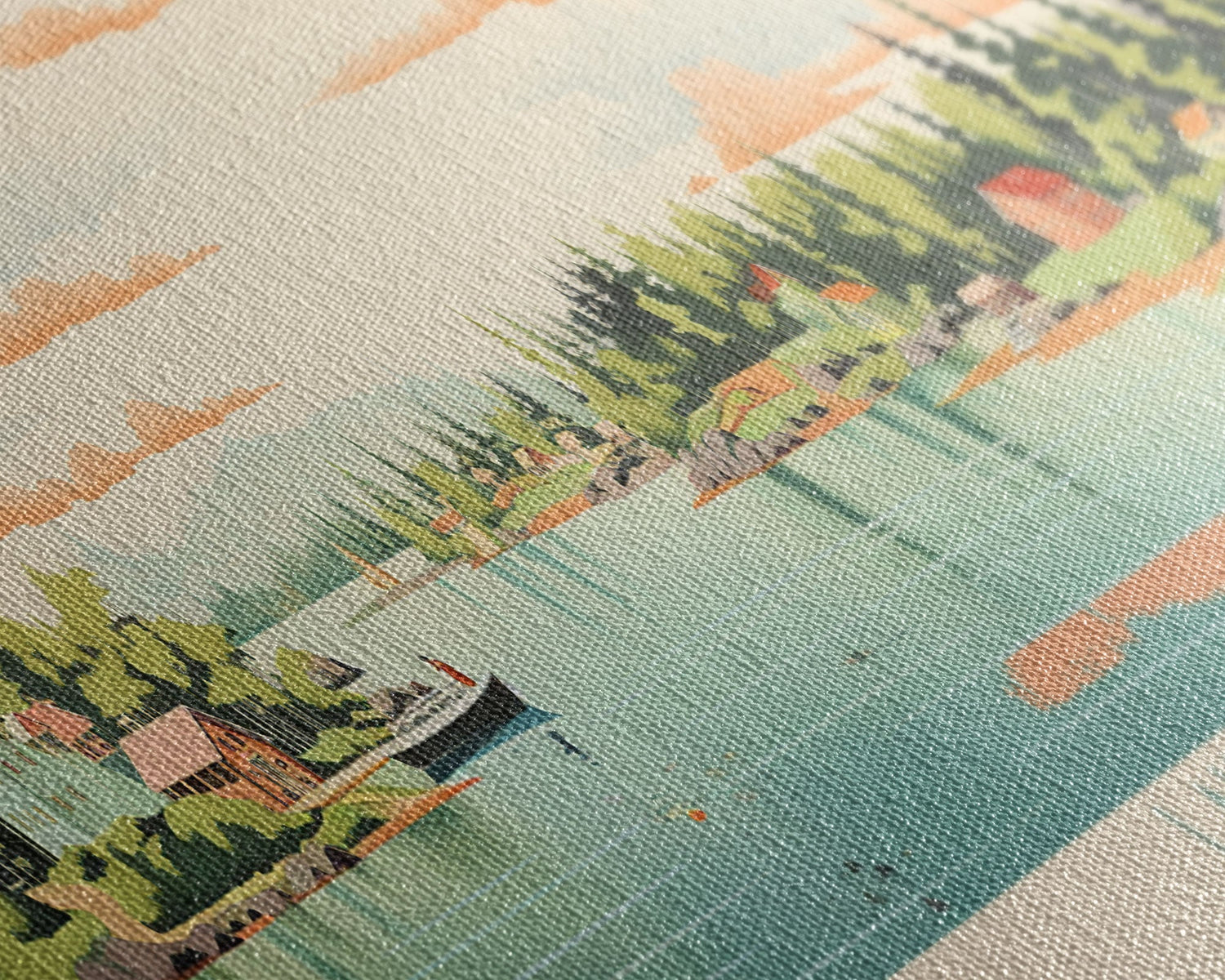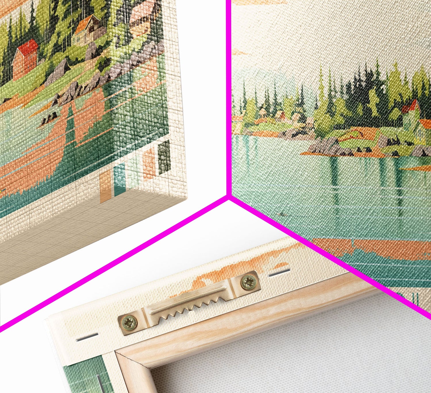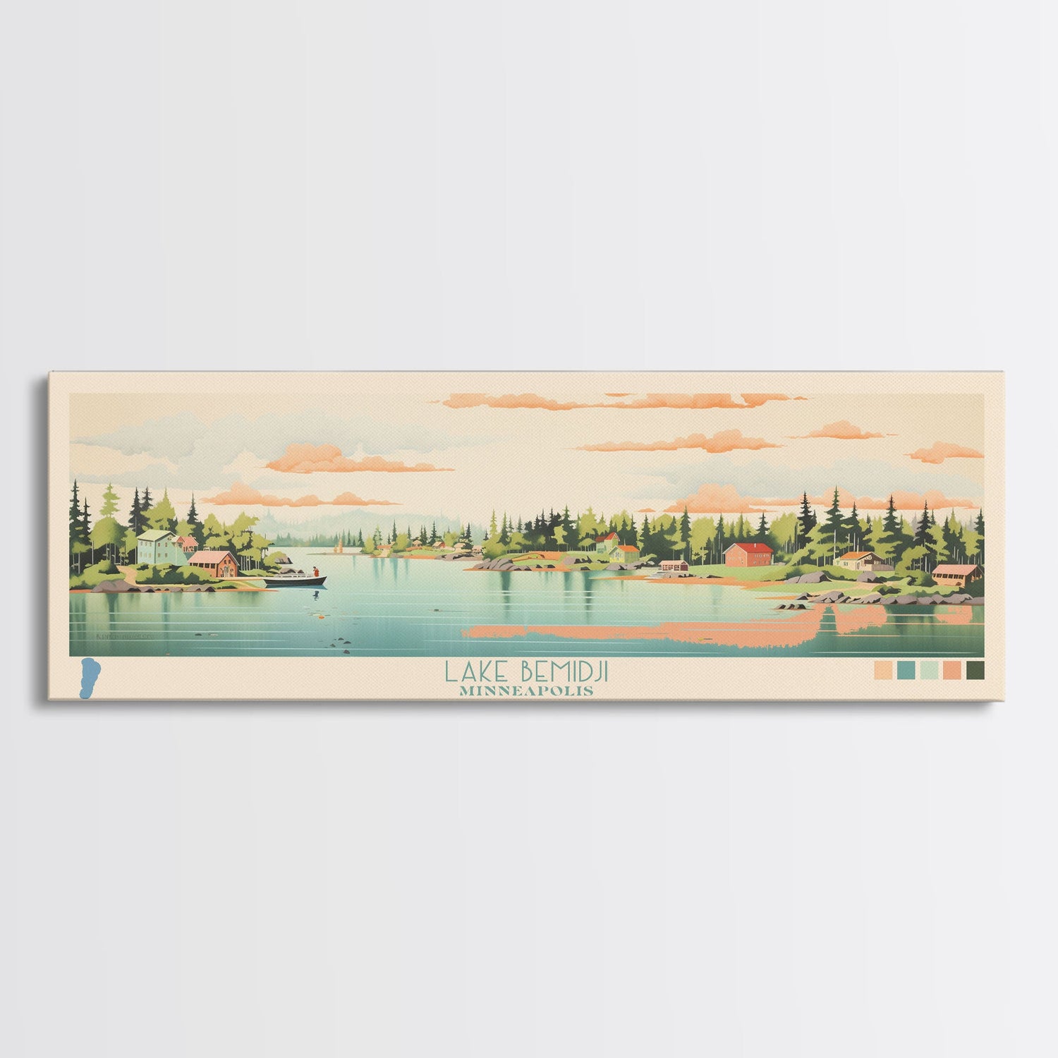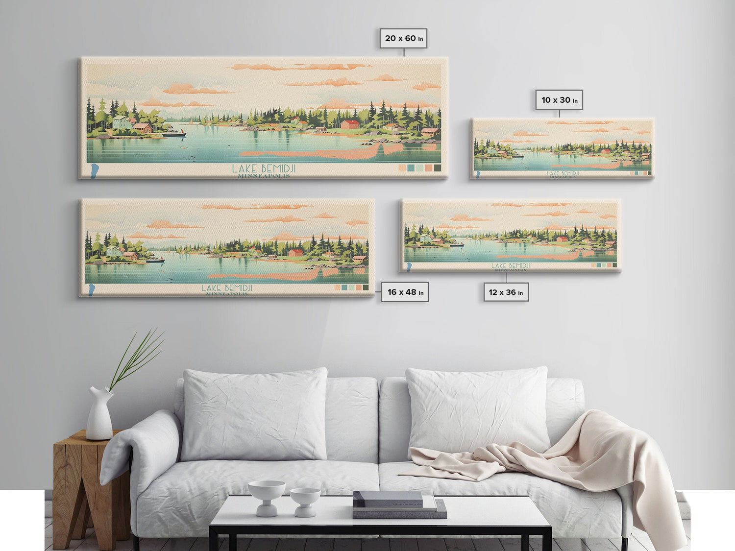 Lake Bemidji Minneapolis Framed Canvas Print, Panoramic Wall Art, Midcentury Modern, Pop Art, Bedroom Decor, Travel Poster, Living Room Art