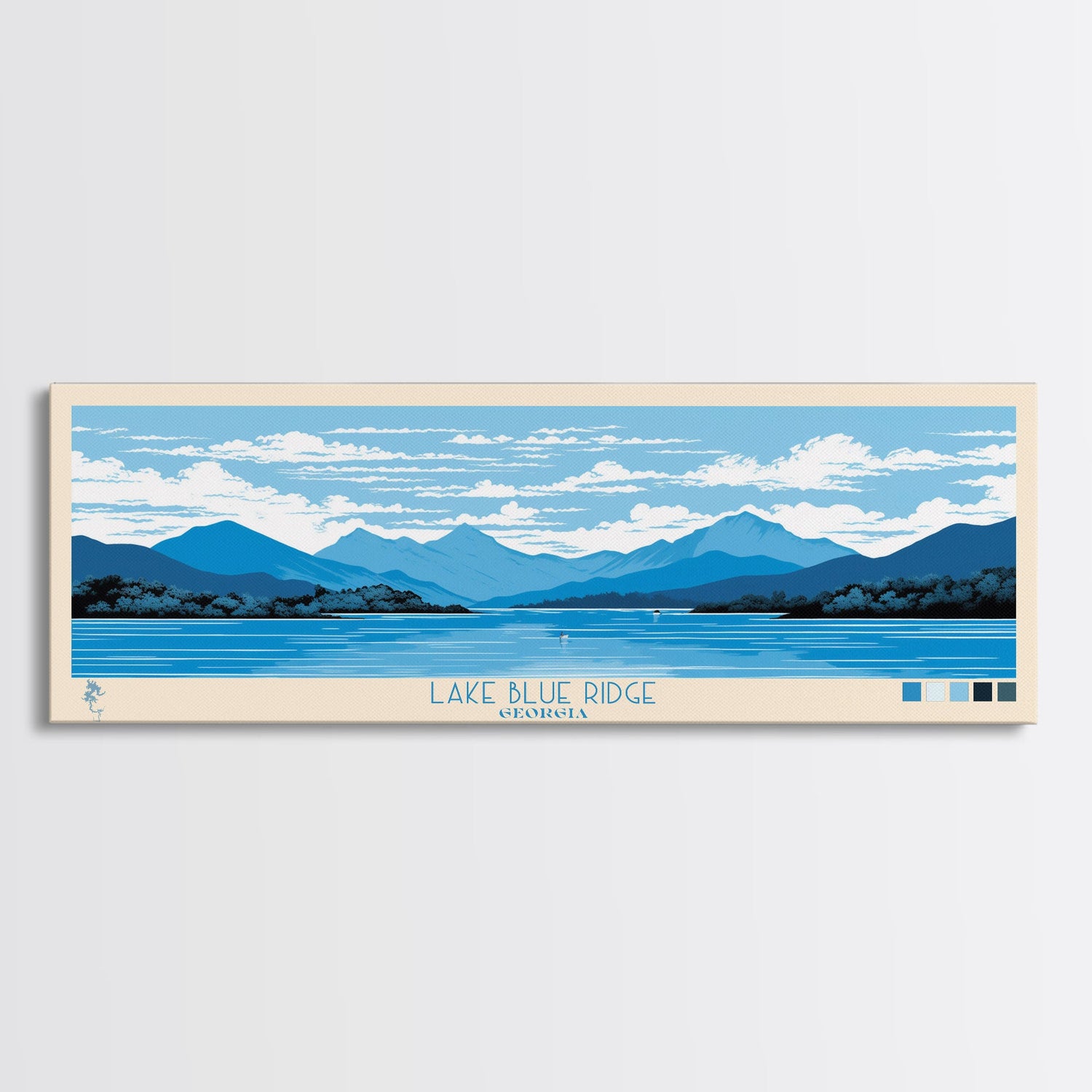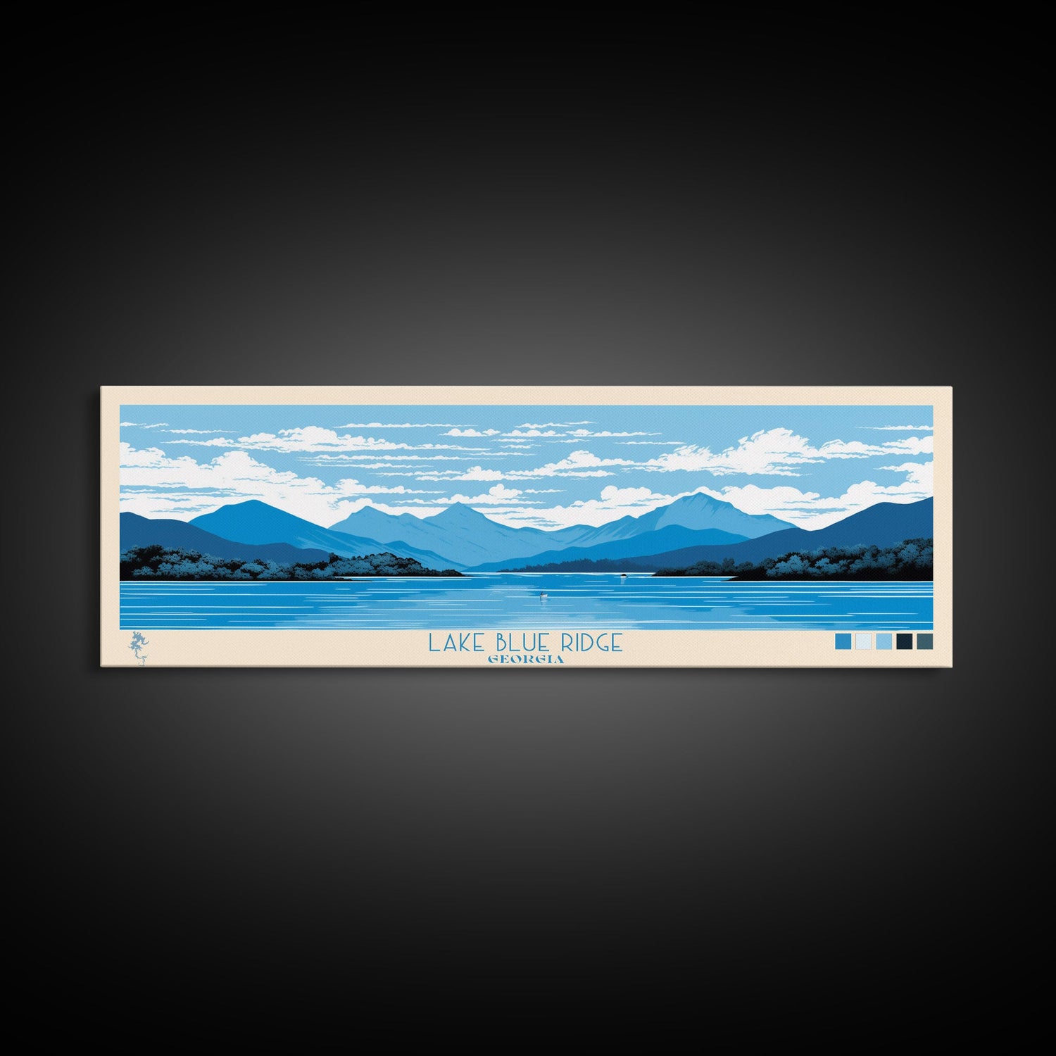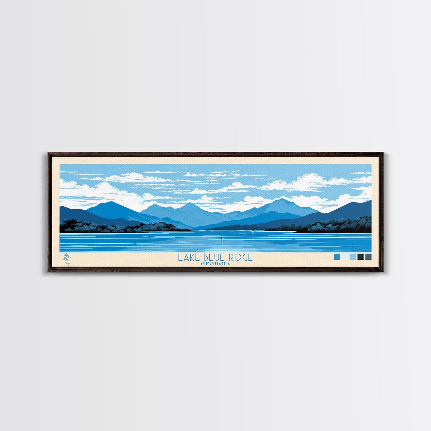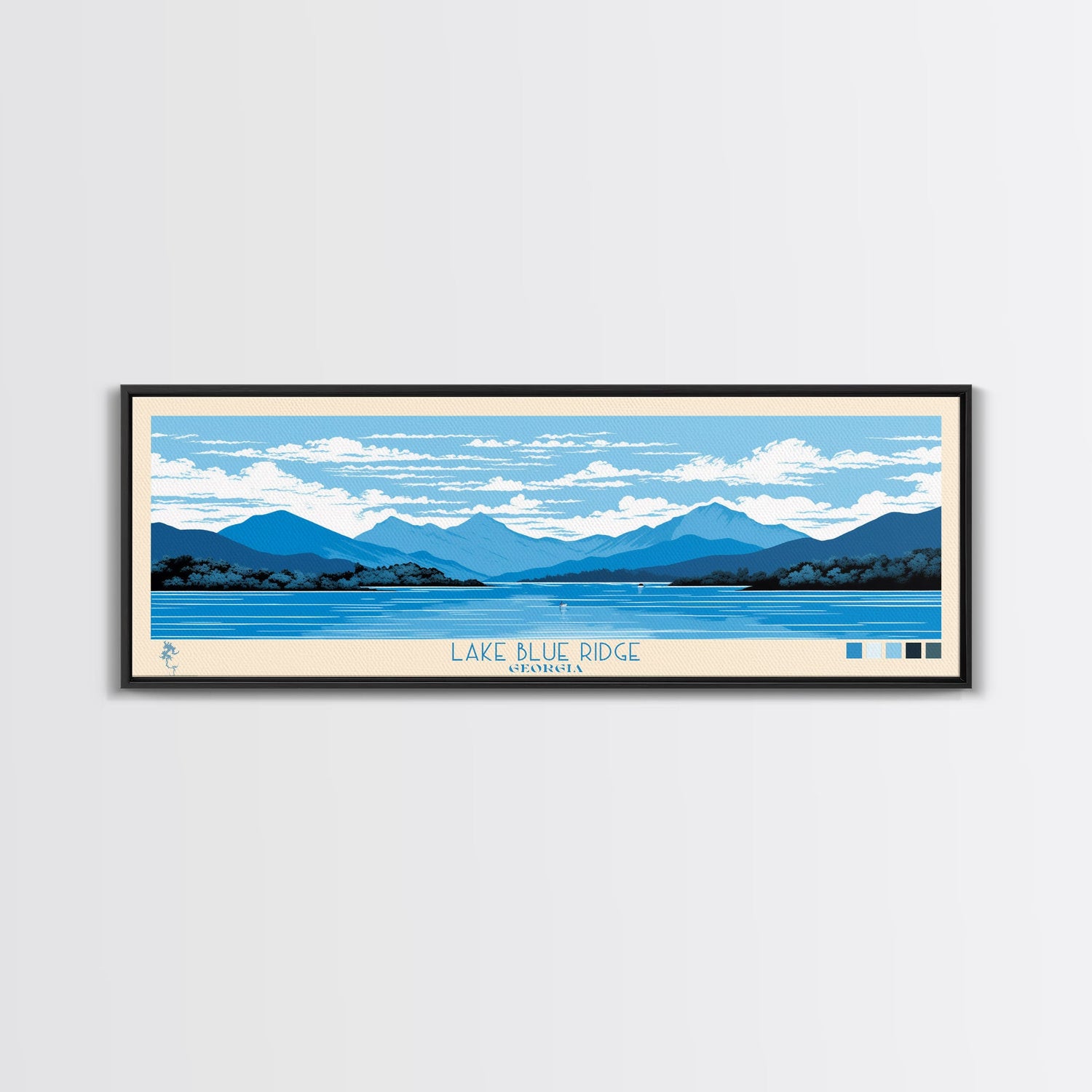 Lake Blue Ridge Georgia Framed Canvas Print, Panoramic Art, Midcentury Modern, Pop Art, Living Room Wall Art, Travel Poster, Lake House Decor