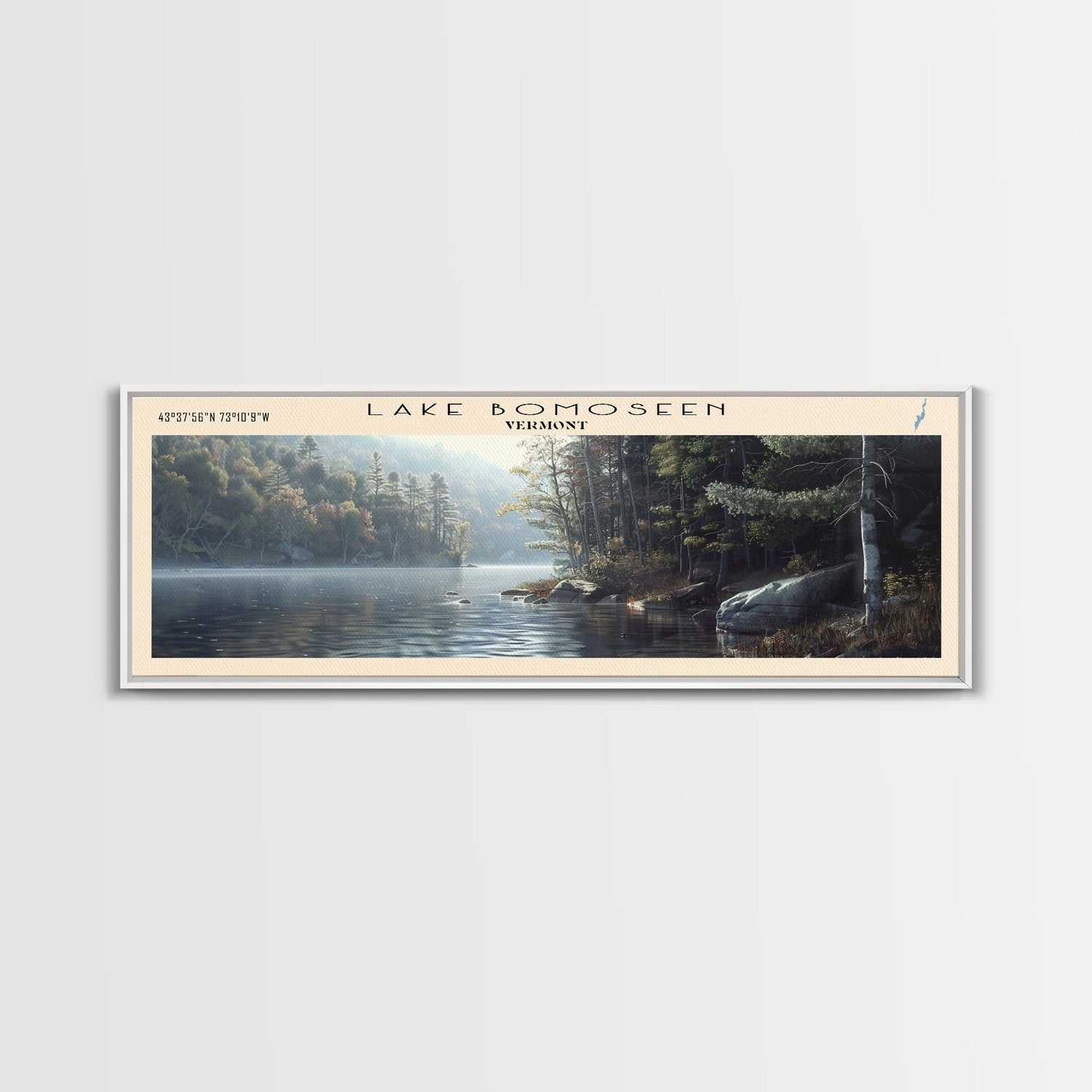 Lake Bomoseen Vermont Framed Canvas Print, Lake House Art, Panoramic Wall Art, Travel Poster, Serene Lake Painting, Home Decor