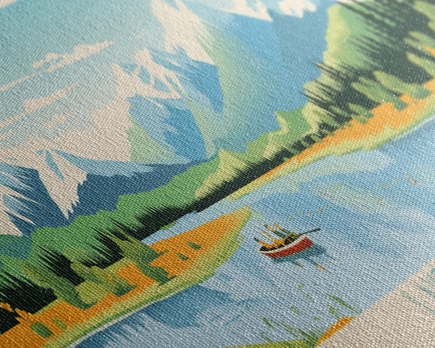 Most of our canvases are made in the USA, with the exception of canvases ordered with the light oak unstained frames, and any large canvases (24x48, 30x60, 16x48 and 20x60) ordered WITH a frame. These are temporarily made in and shipped from Europe, while we try to find a more consistent supplier in the USA.