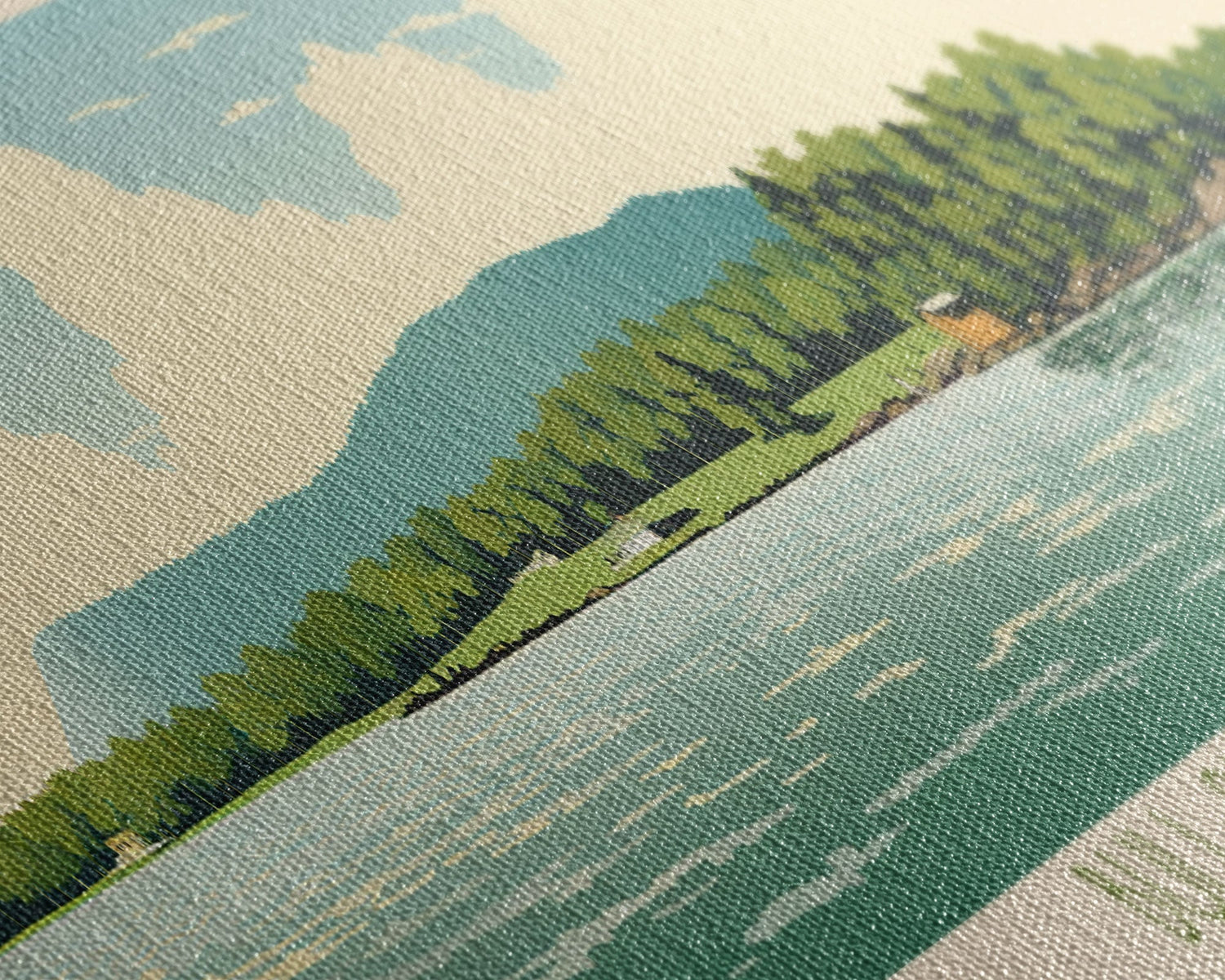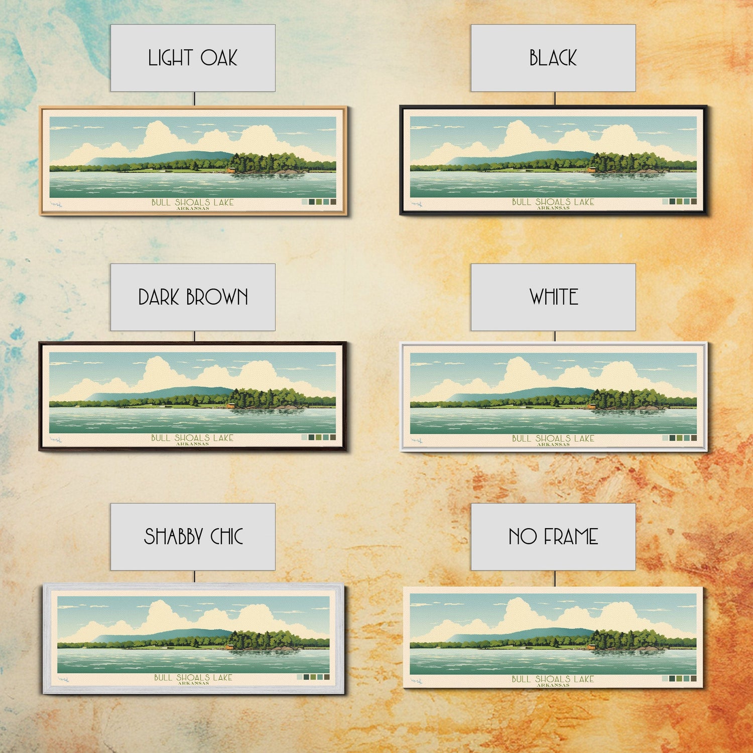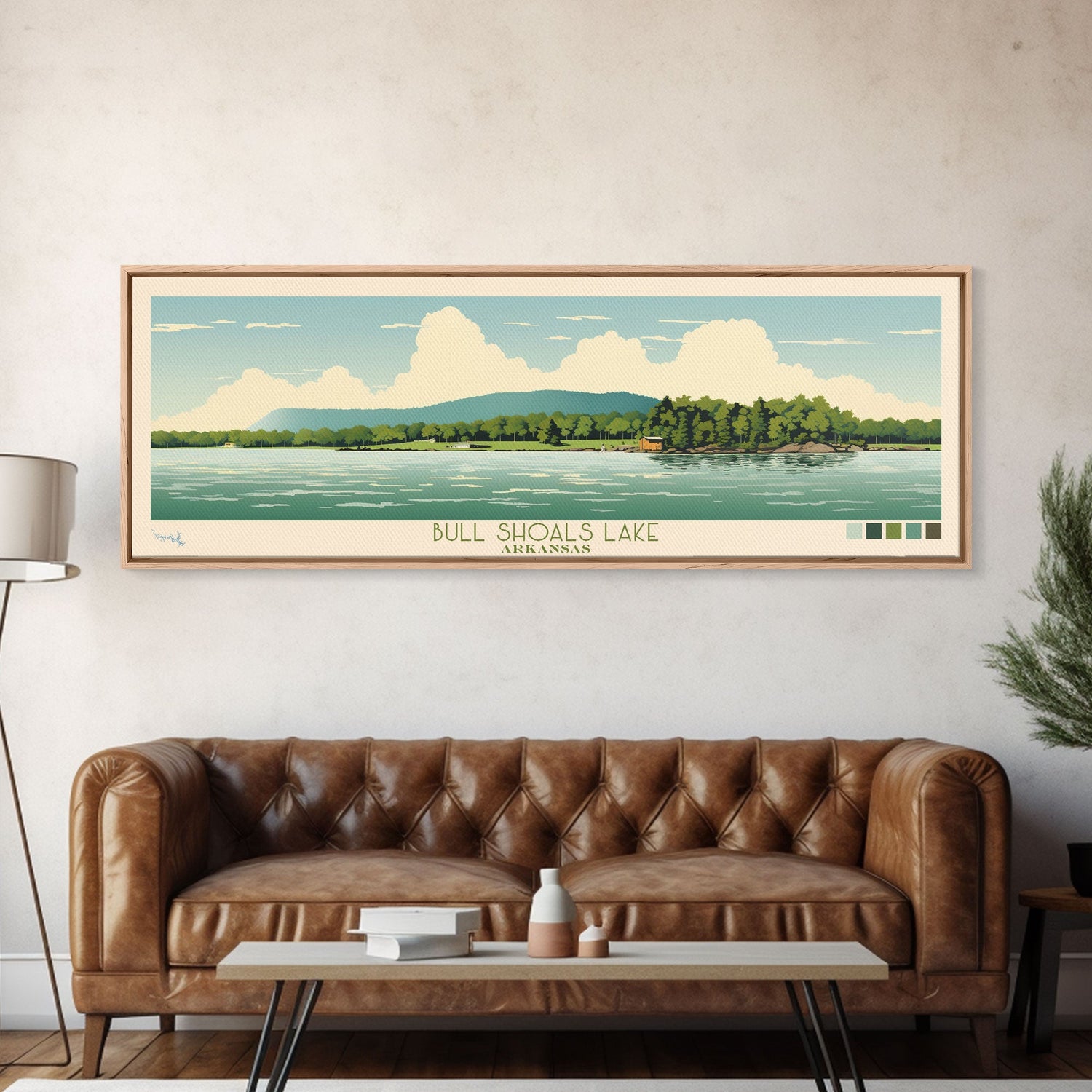 Lake Bull Shoals Framed Canvas Print, Panoramic Wall Art, Midcentury Modern, Pop Art, Bedroom Decor, Travel Poster, Living Room Art