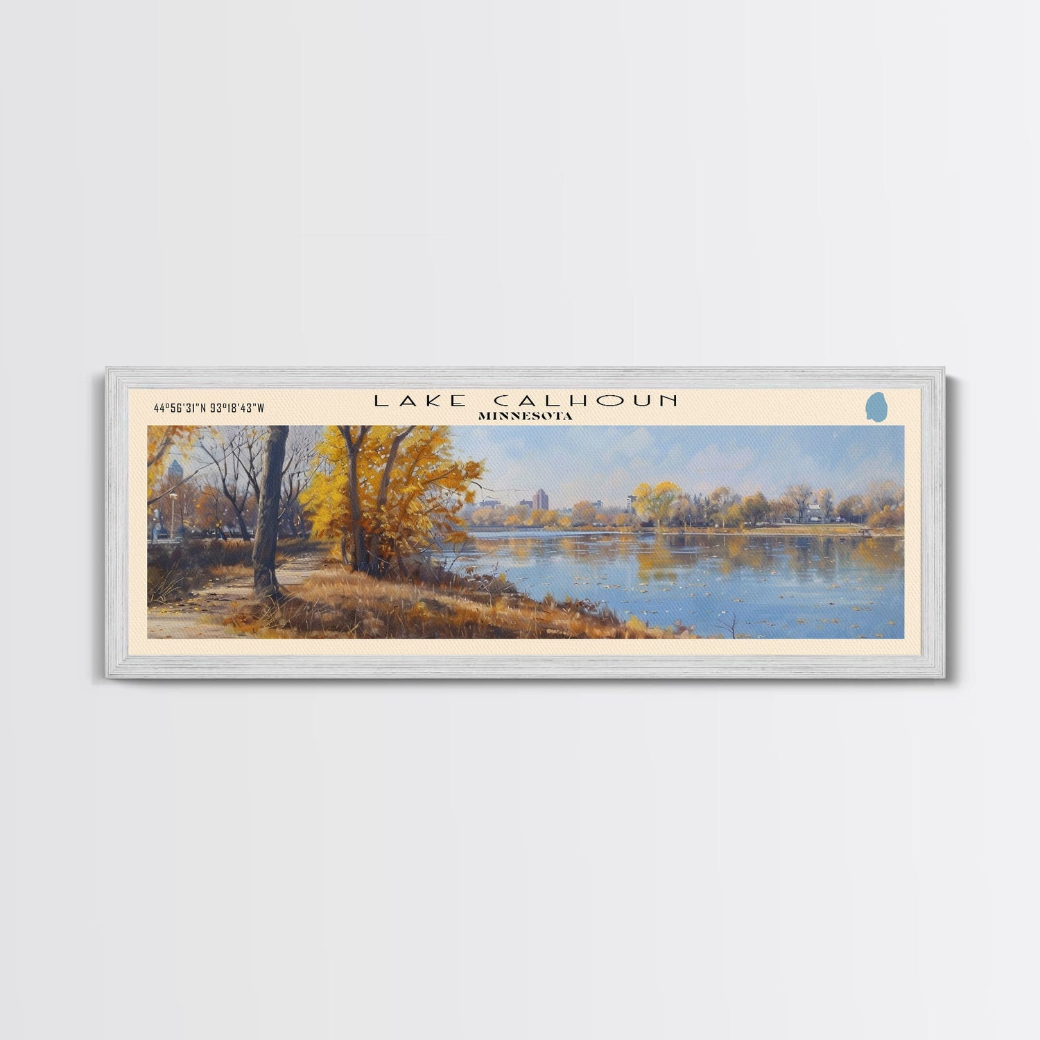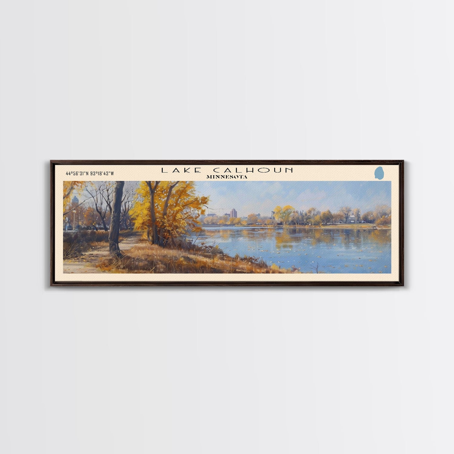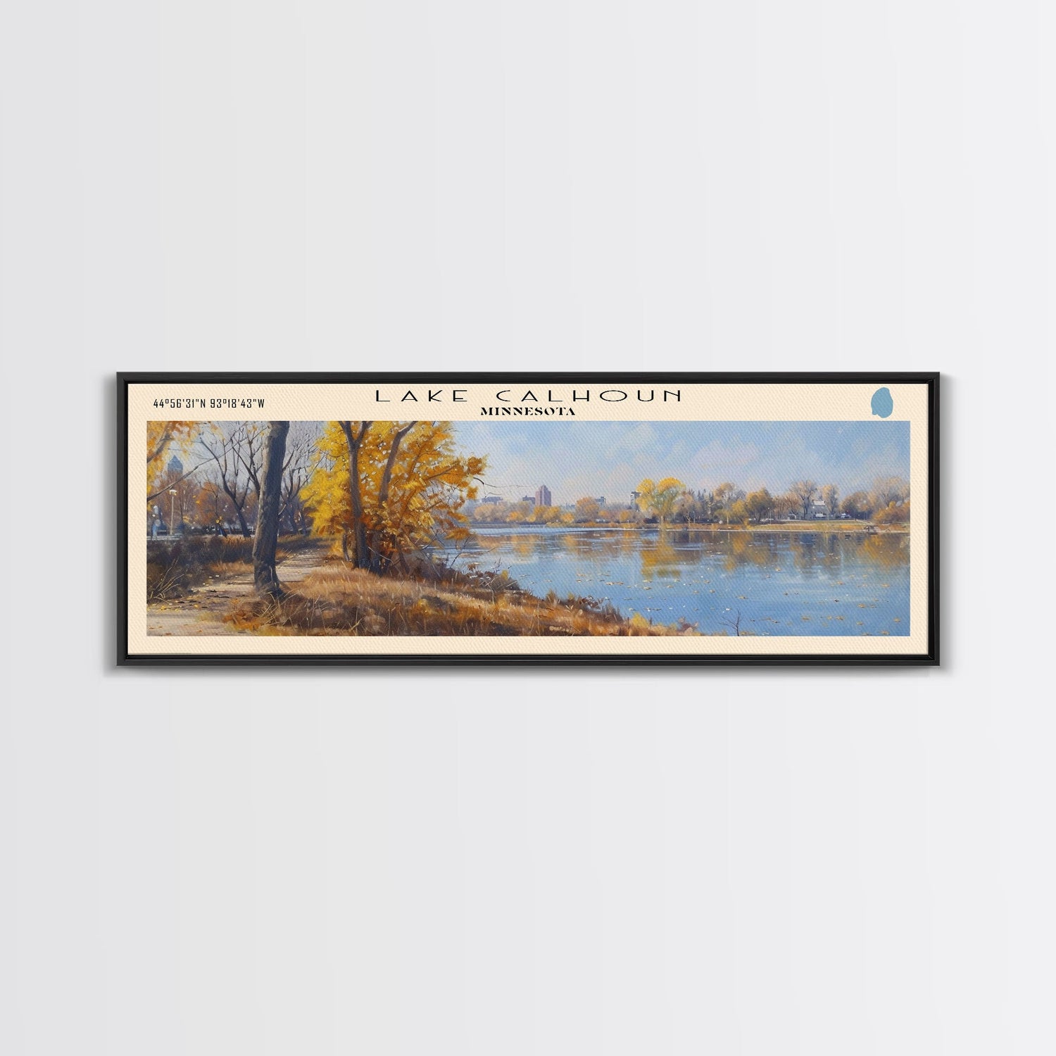 Lake Calhoun Minnesota Framed Canvas Print, Panoramic Lake House Decor, Wall Art, Travel Poster, Serene Lake Painting, Nature Art