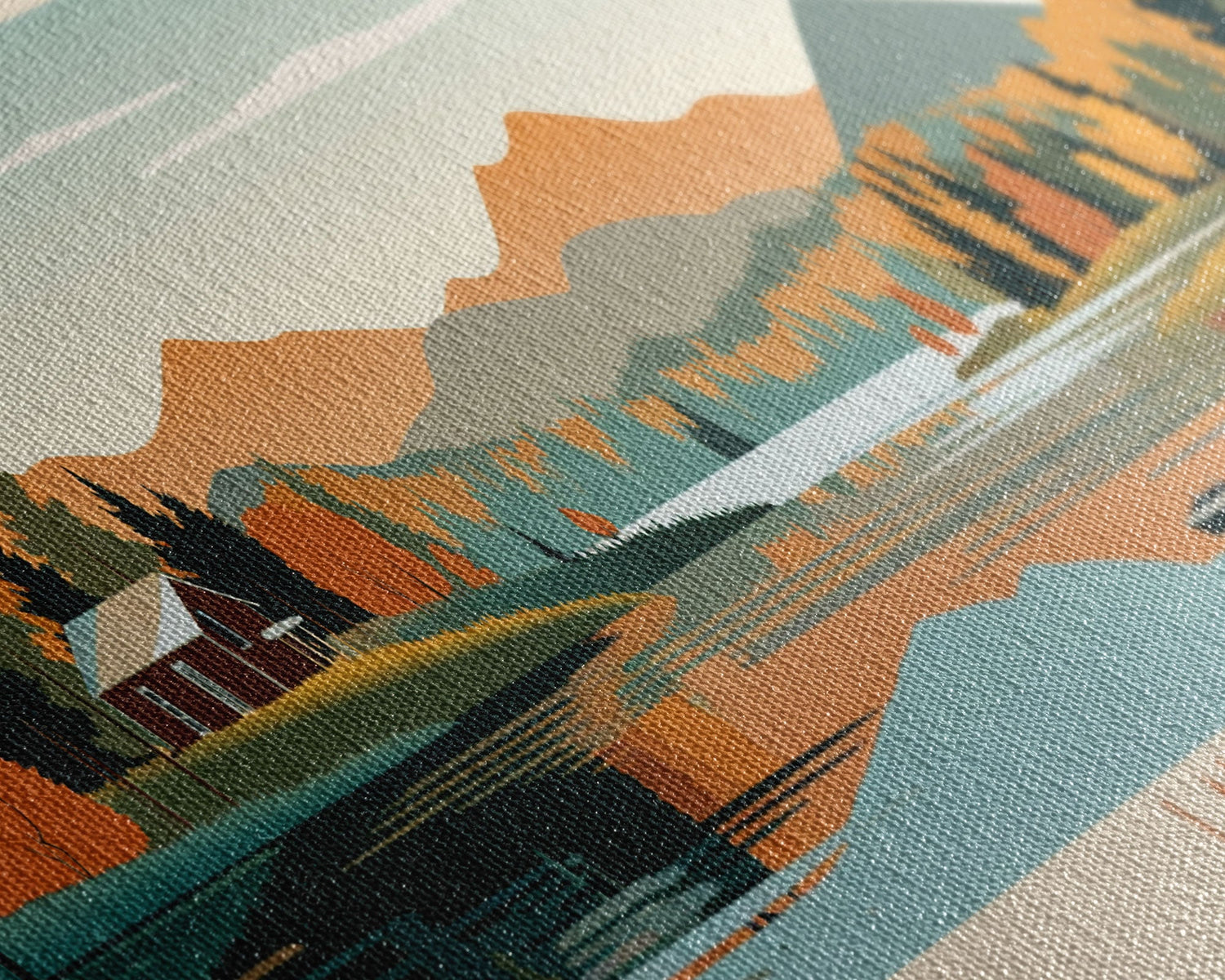 Lake Carmi Vermont Framed Canvas Print, Panoramic Art, Midcentury Modern, Pop Art, Living Room Wall Art, Travel Poster, Lake House Decor