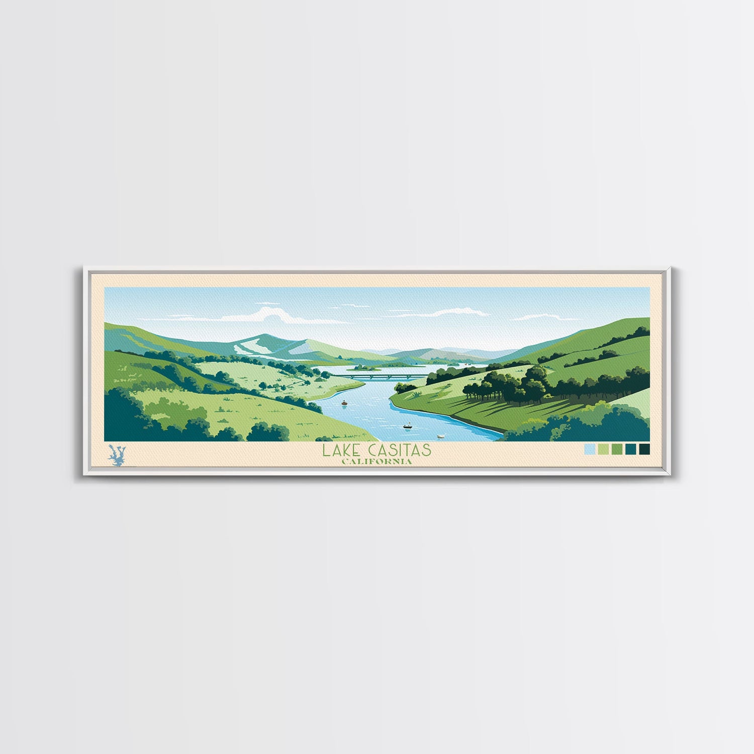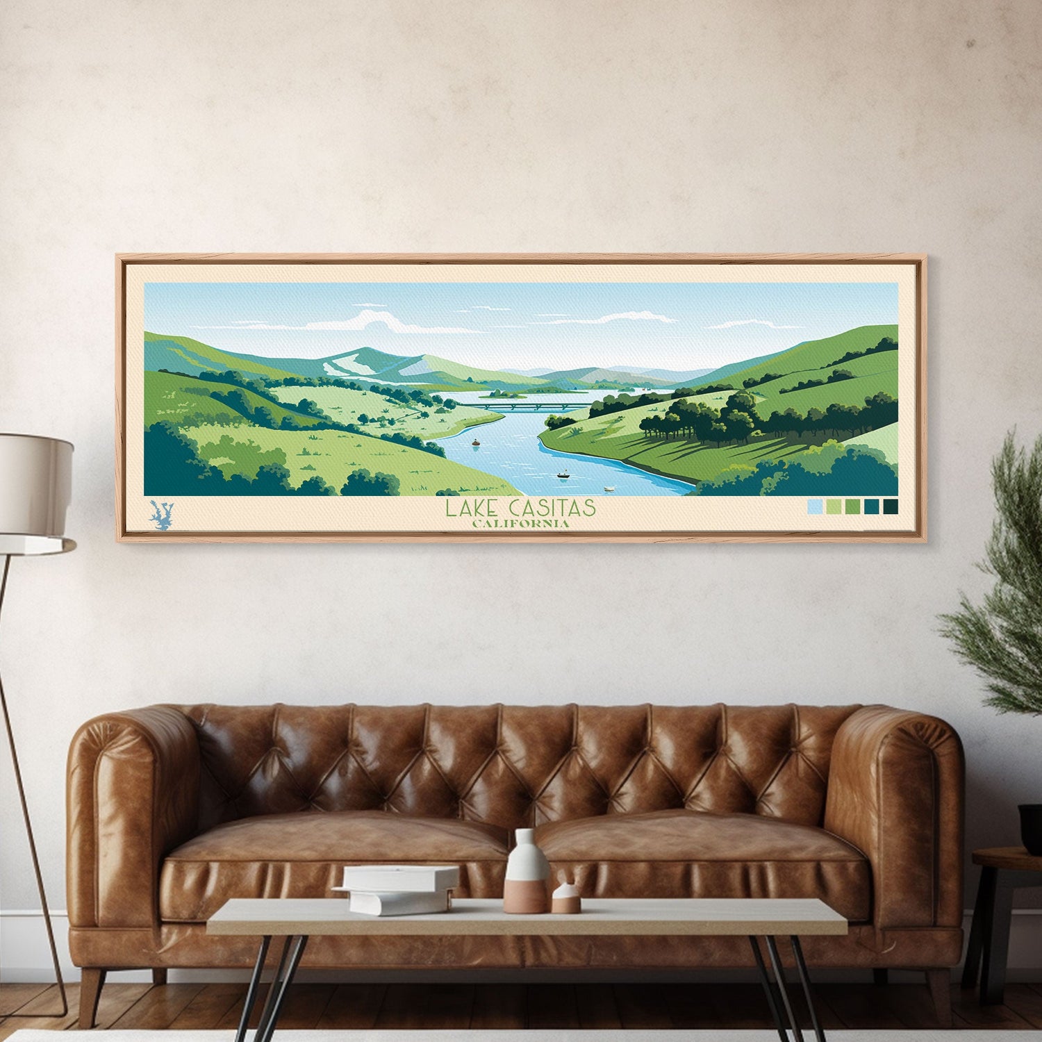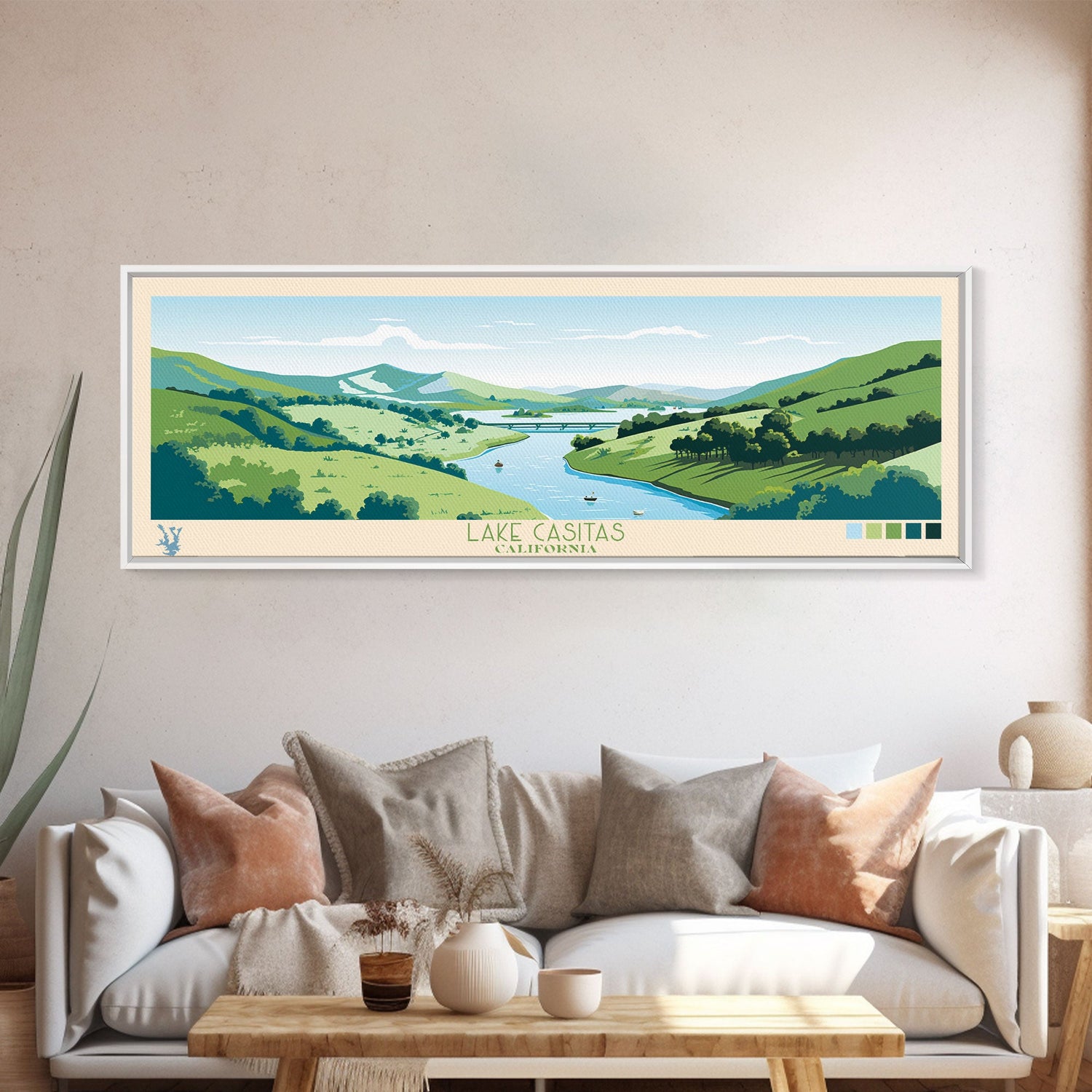 Lake Casitas California Framed Canvas Print, Panoramic Wall Art, Midcentury Modern, Pop Art, Bedroom Decor, Travel Poster, Living Room Art