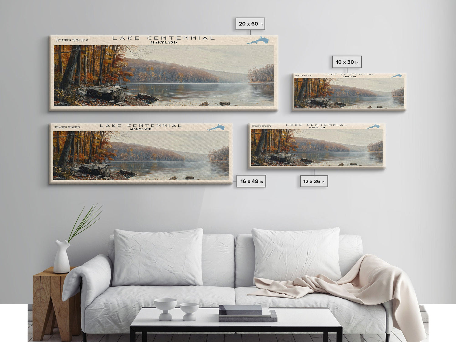 Lake Centennial Maryland Framed Canvas Print, Panoramic Lake House Decor, Wall Art, Travel Poster, Serene Lake Painting, Nature Art