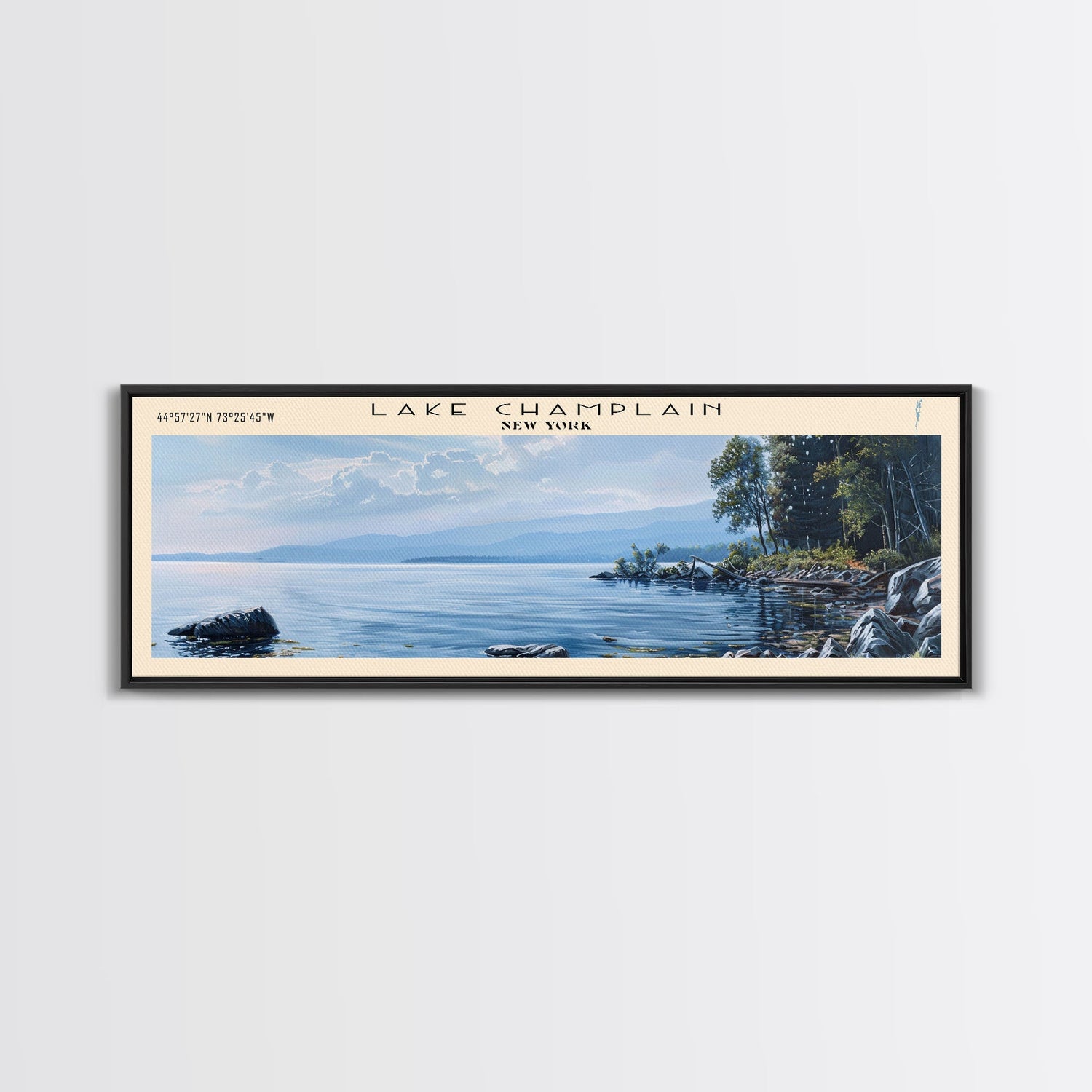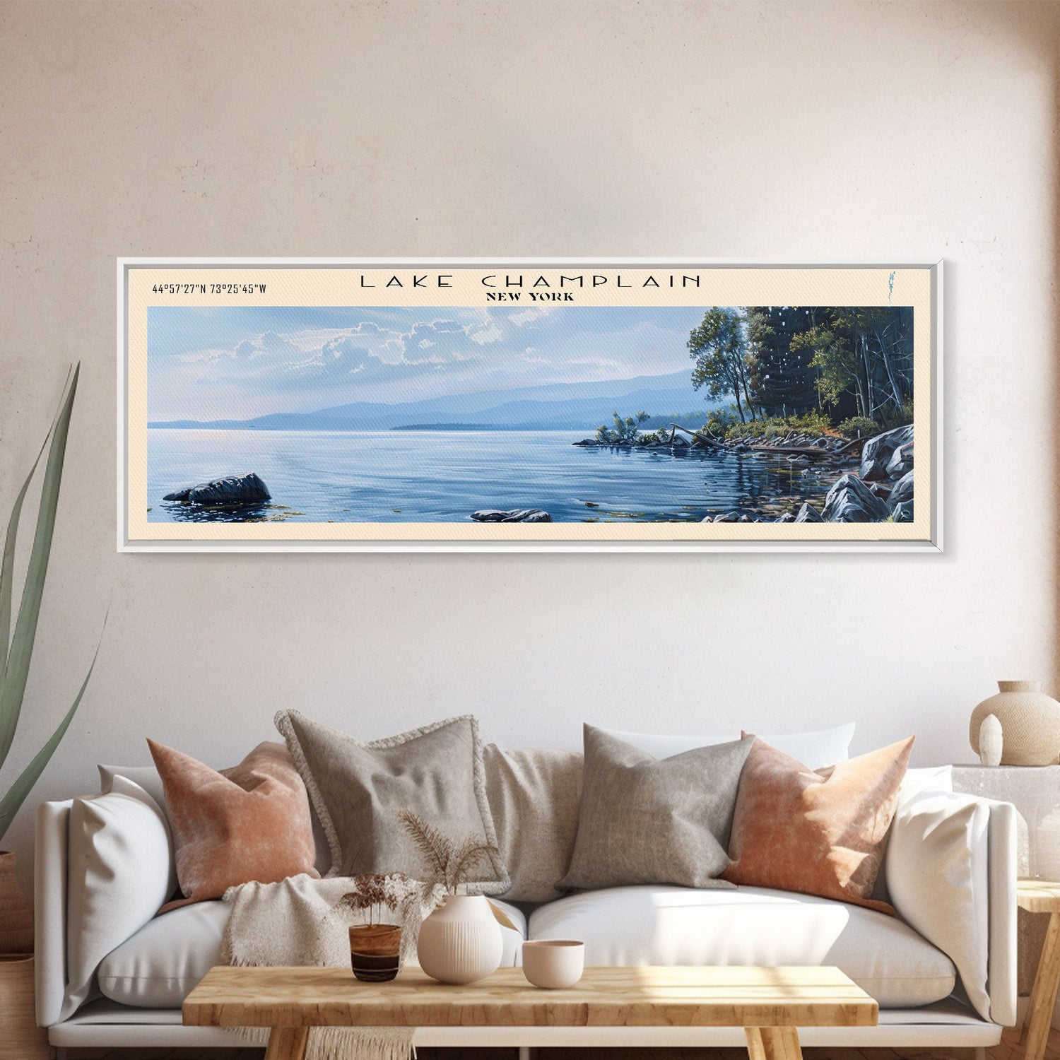 Lake Champlain Framed Canvas Print, Lake House Art, Panoramic Wall Art, Travel Poster, Captivating Lake Painting, Home Decor