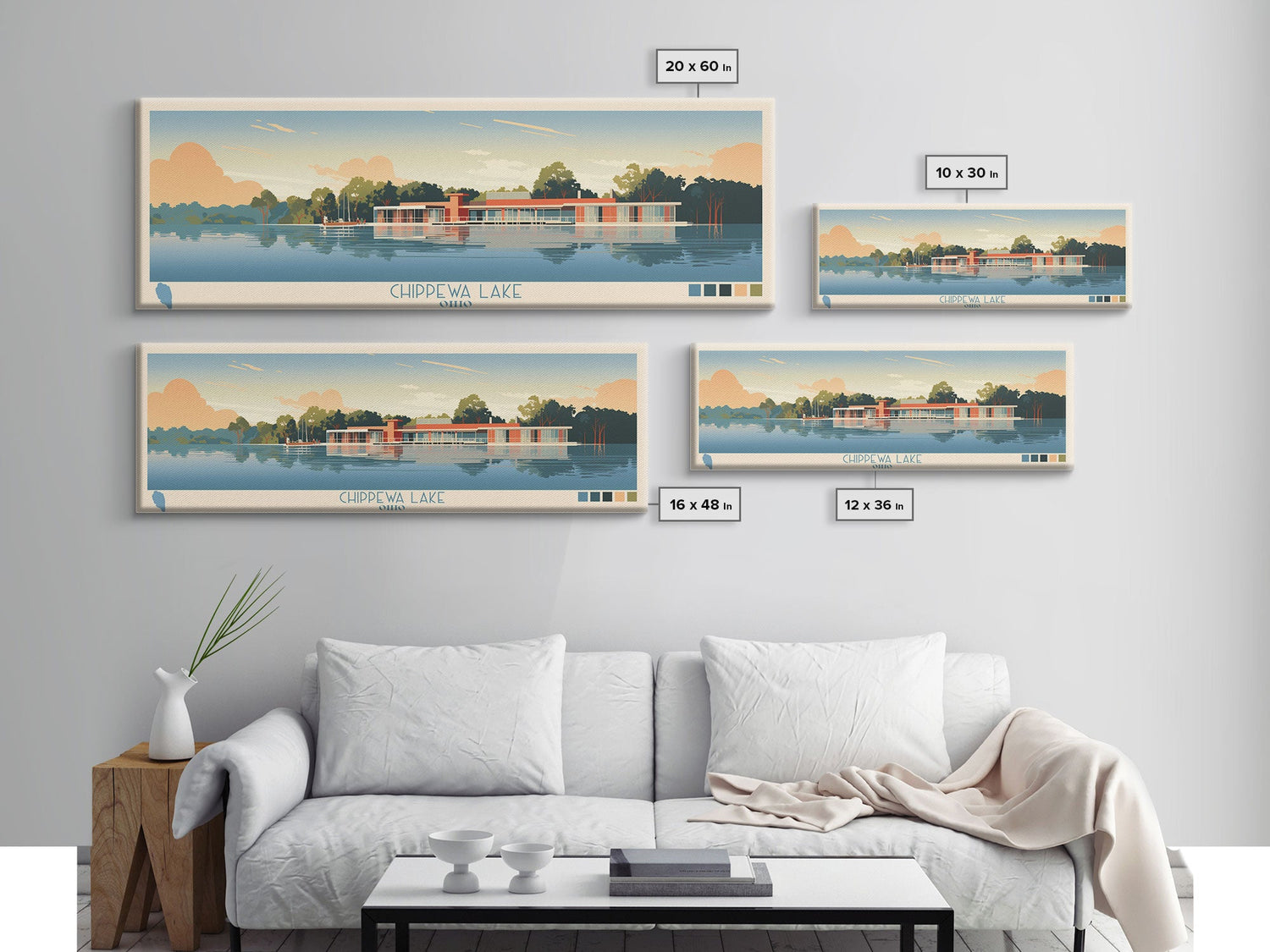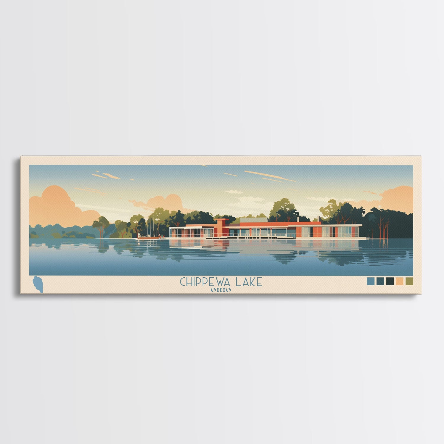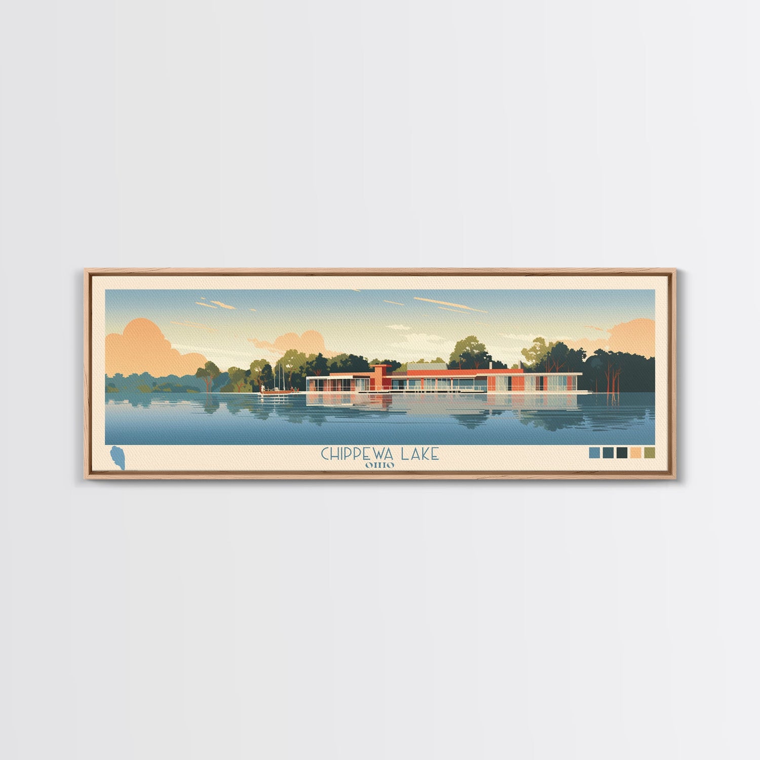Lake Chippewa Framed Canvas Print, Panoramic Wall Art, Midcentury Modern, Pop Art, Bedroom Decor, Travel Poster, Living Room Art