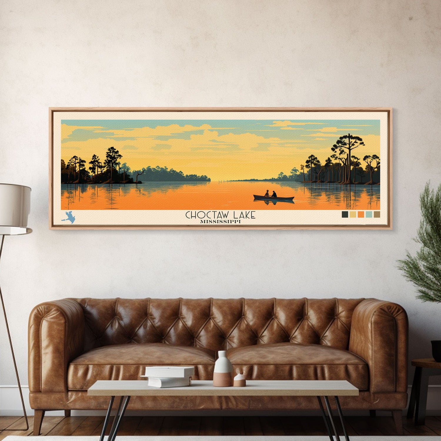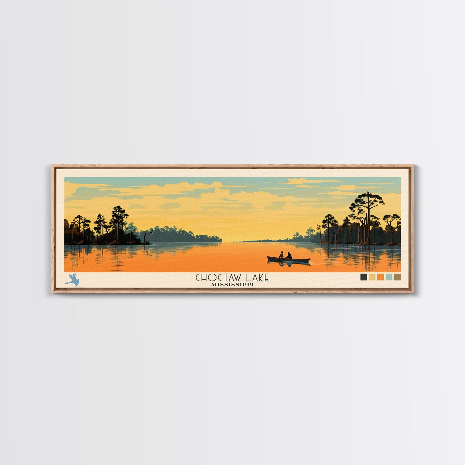 Lake Choctaw Framed Canvas Print, Panoramic Art, Midcentury Modern, Pop Art, Living Room Wall Art, Travel Poster, Lake House Decor