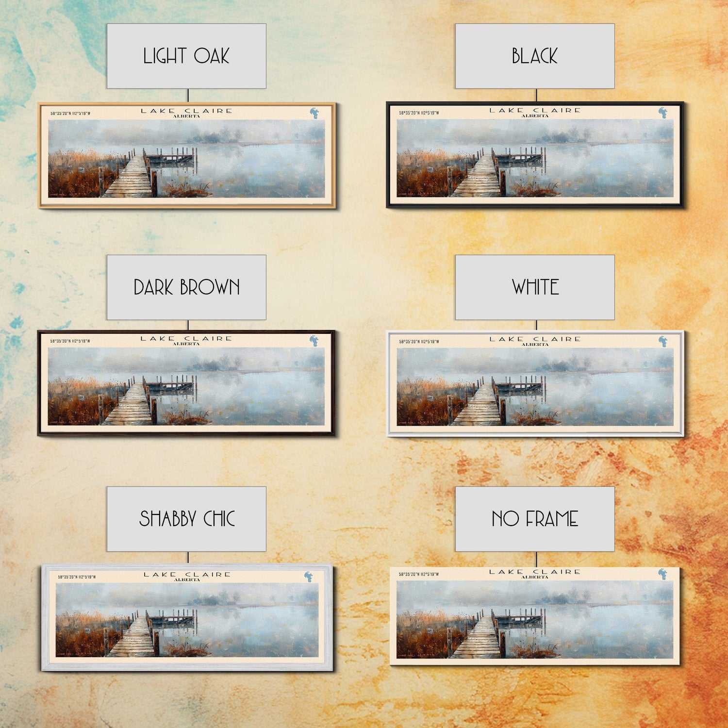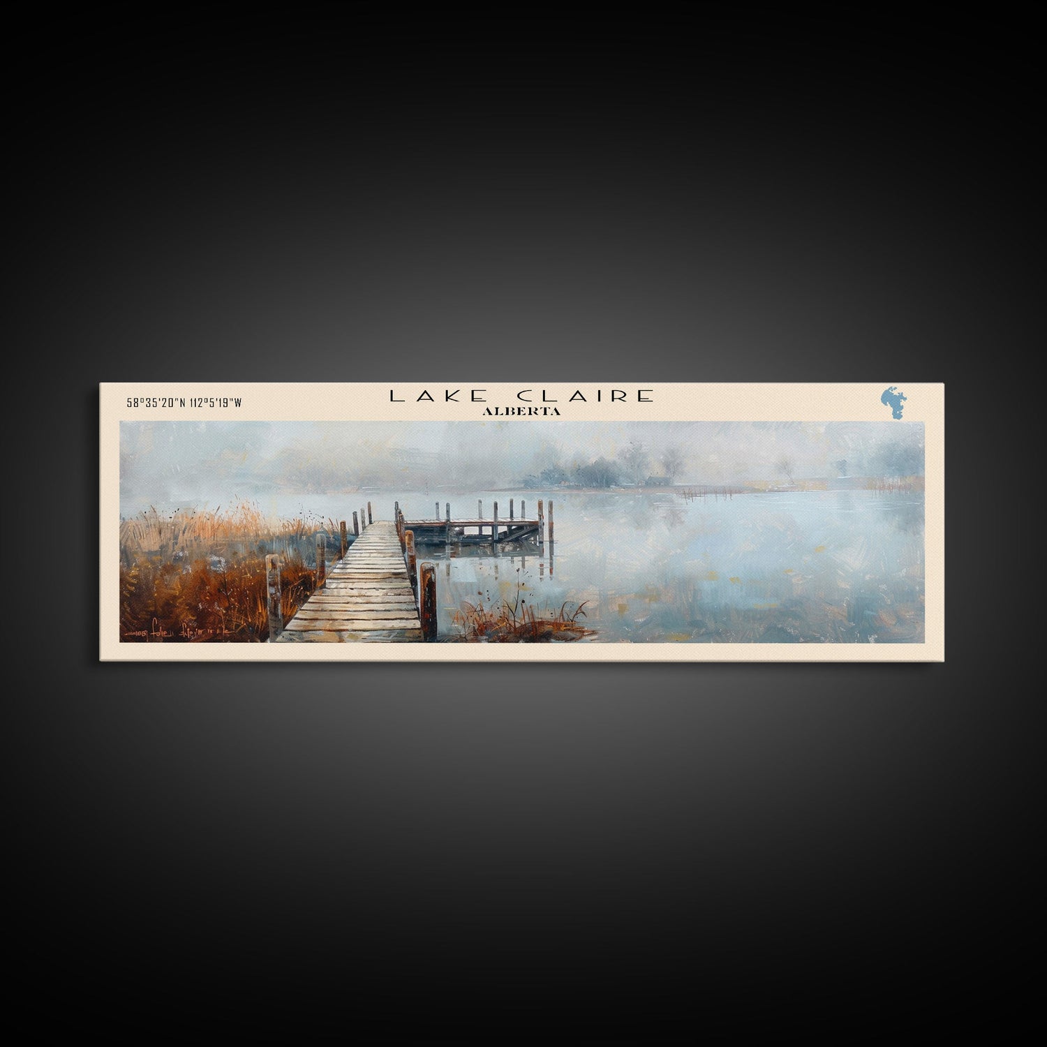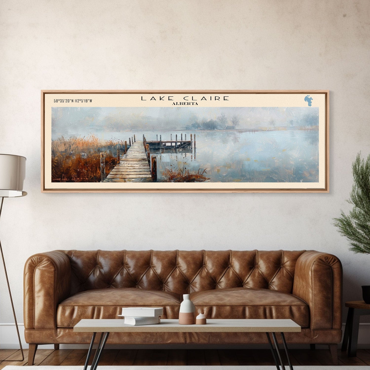 Lake Claire Framed Canvas Print, Lake House Decor, Panoramic Wall Art, Travel Poster, Beautiful Lake Painting, Home Art